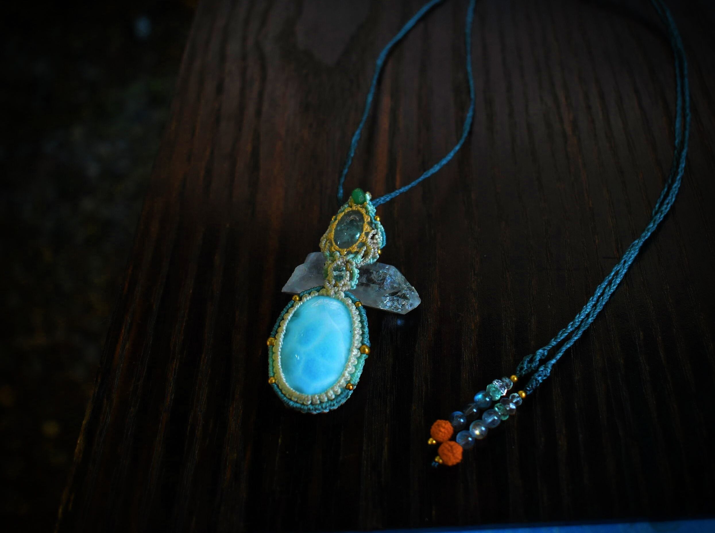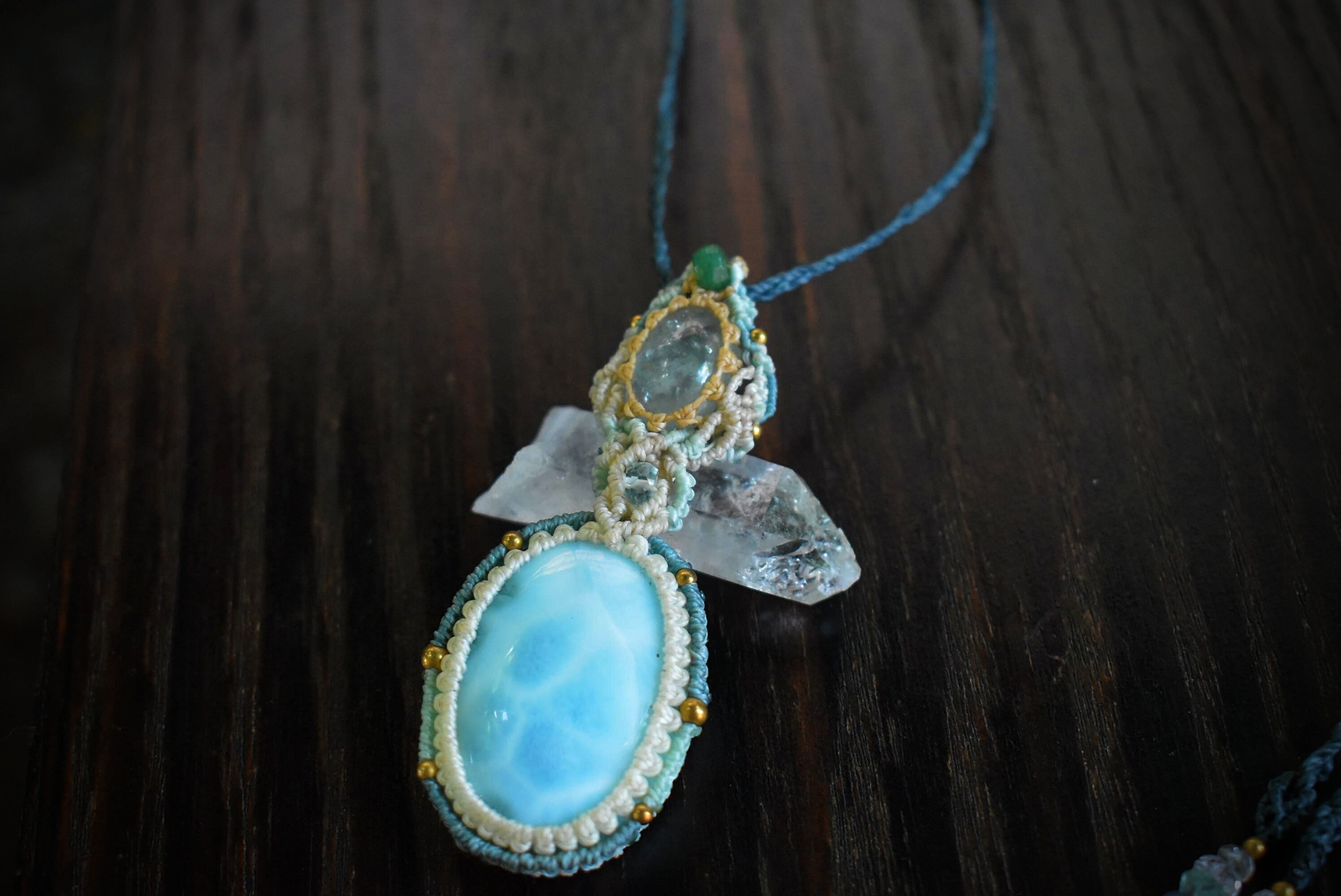 虹入り★爽やかブルー★アクアマリンとラリマーマクラメペンダント