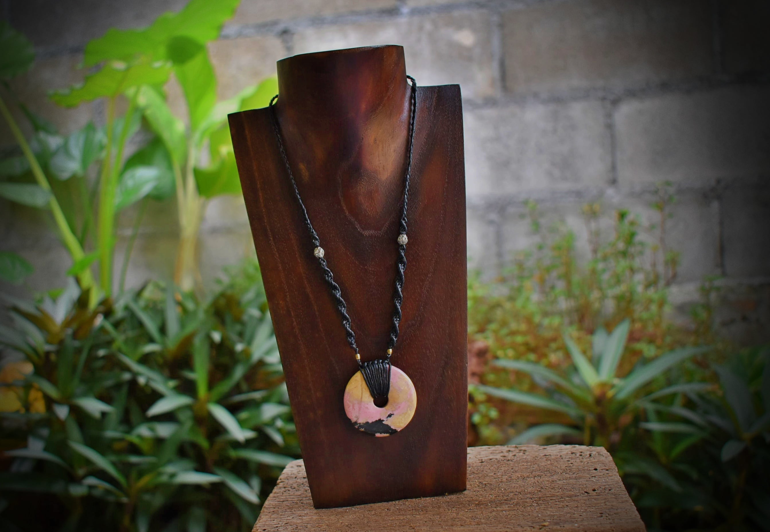 ドーナツ★ピンクゼブラジャスパー★マクラメペンダントネックレスdo003