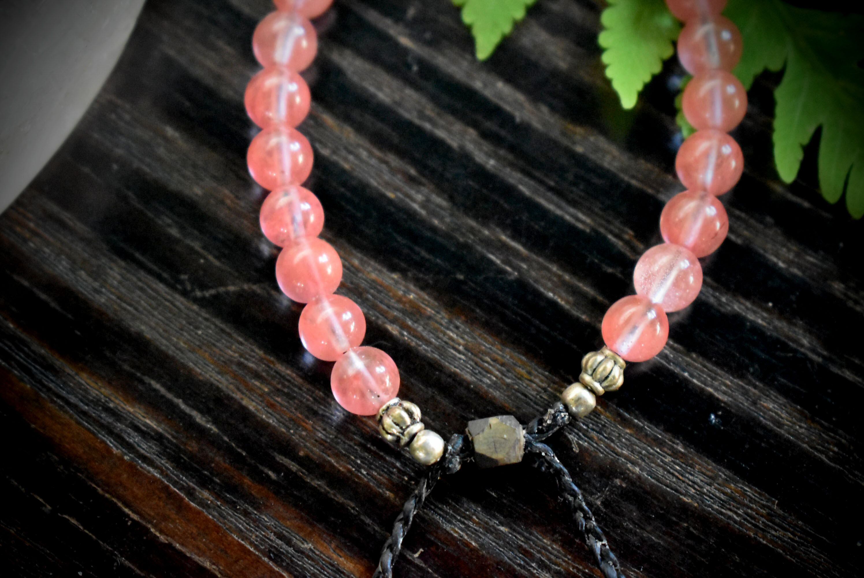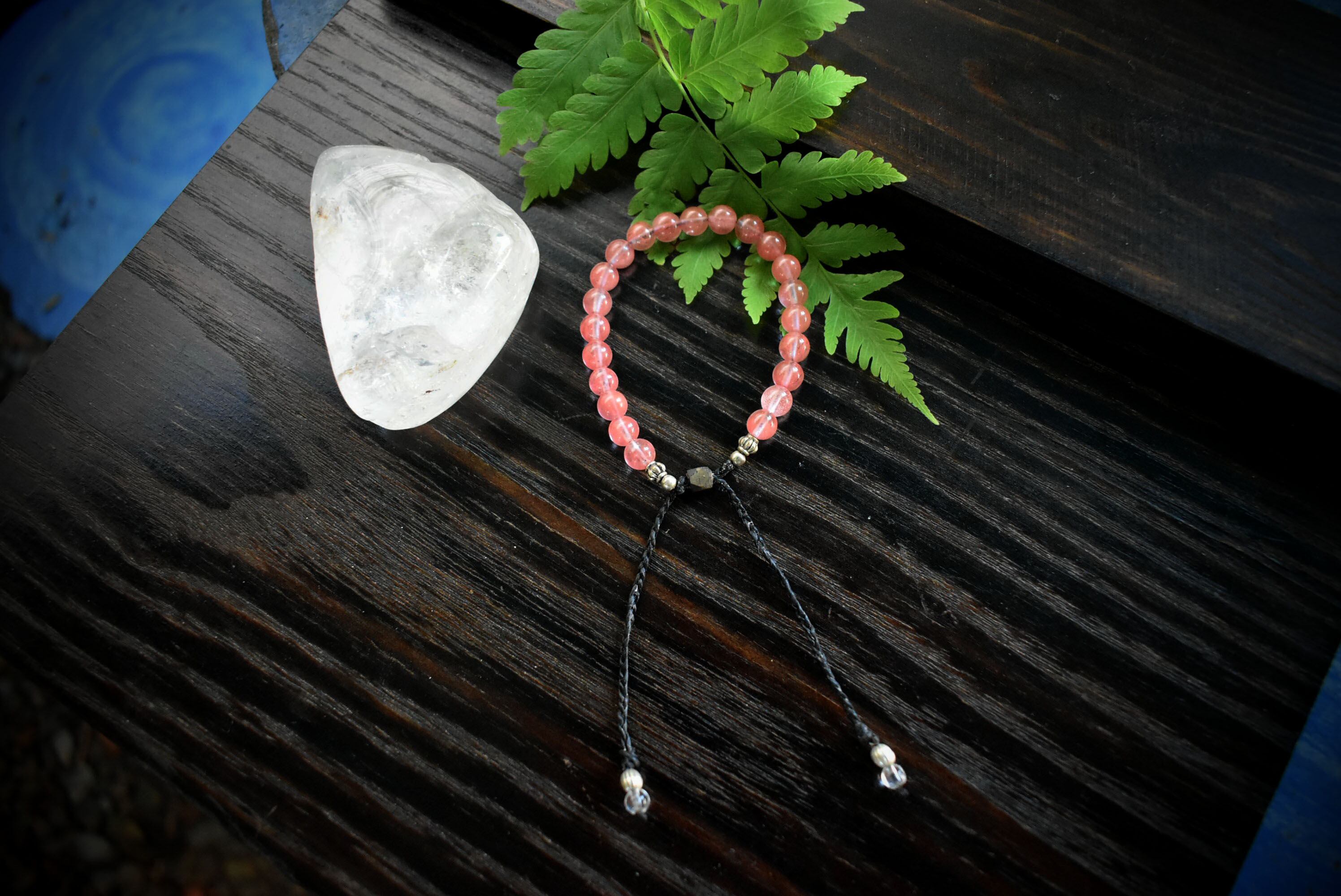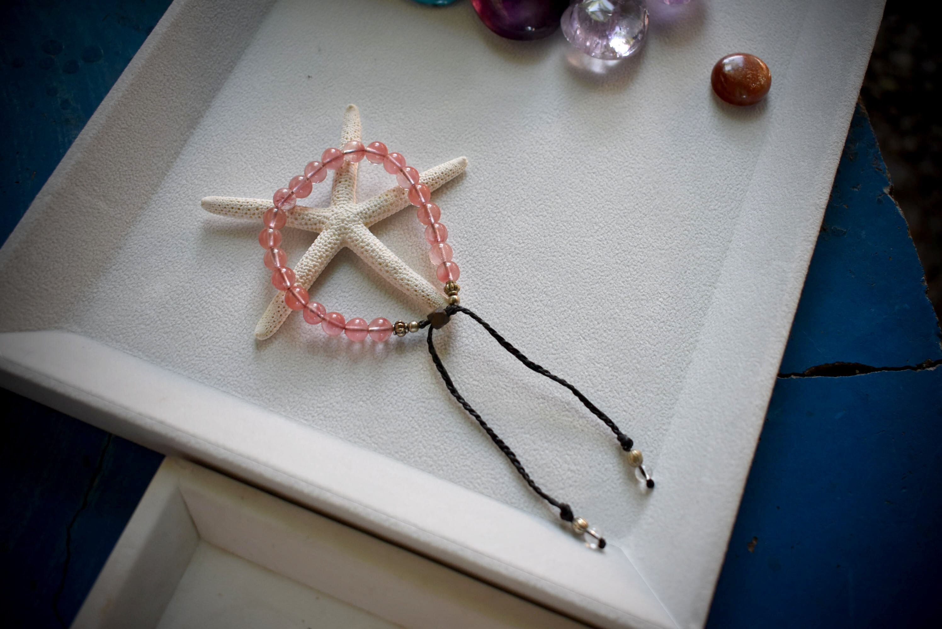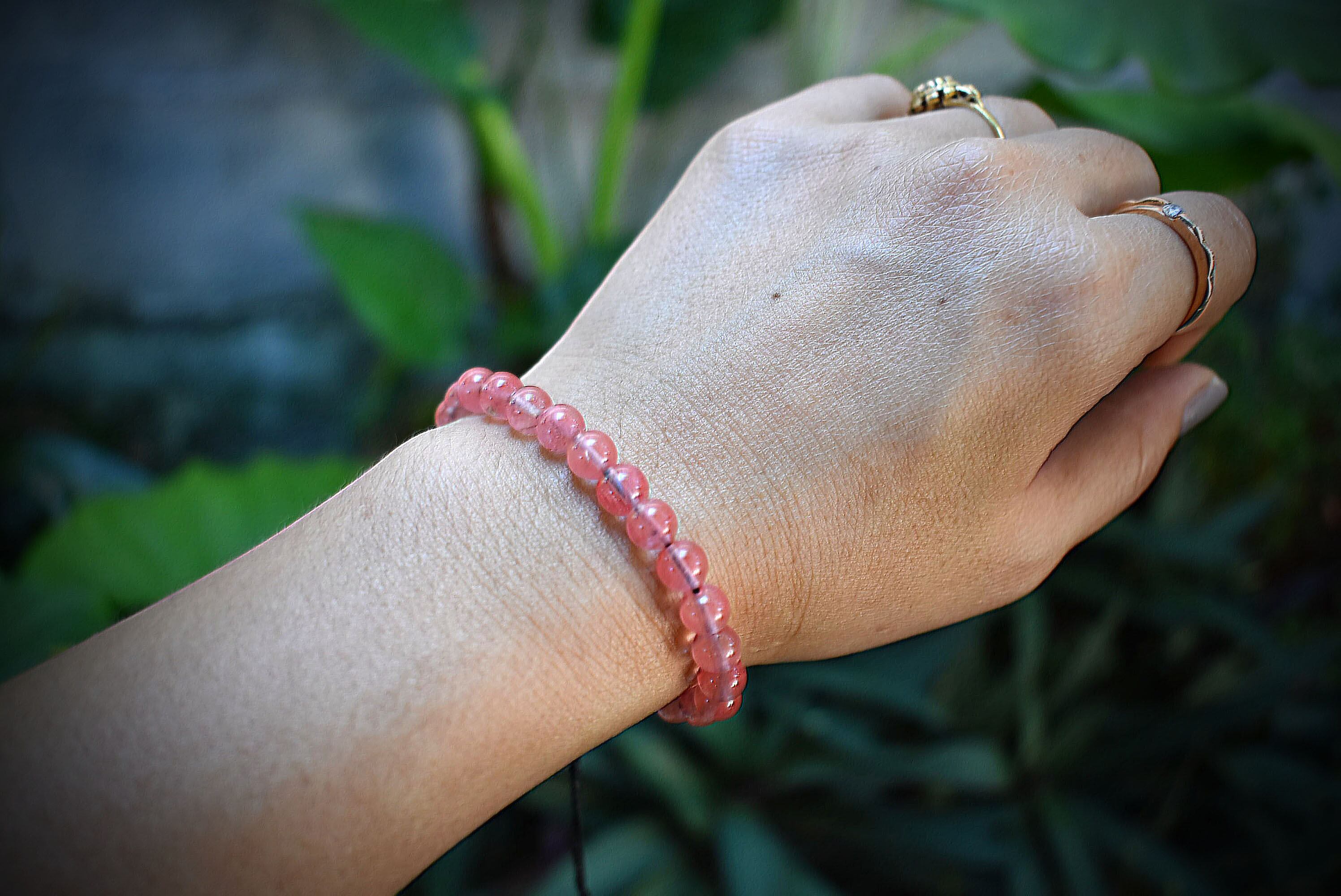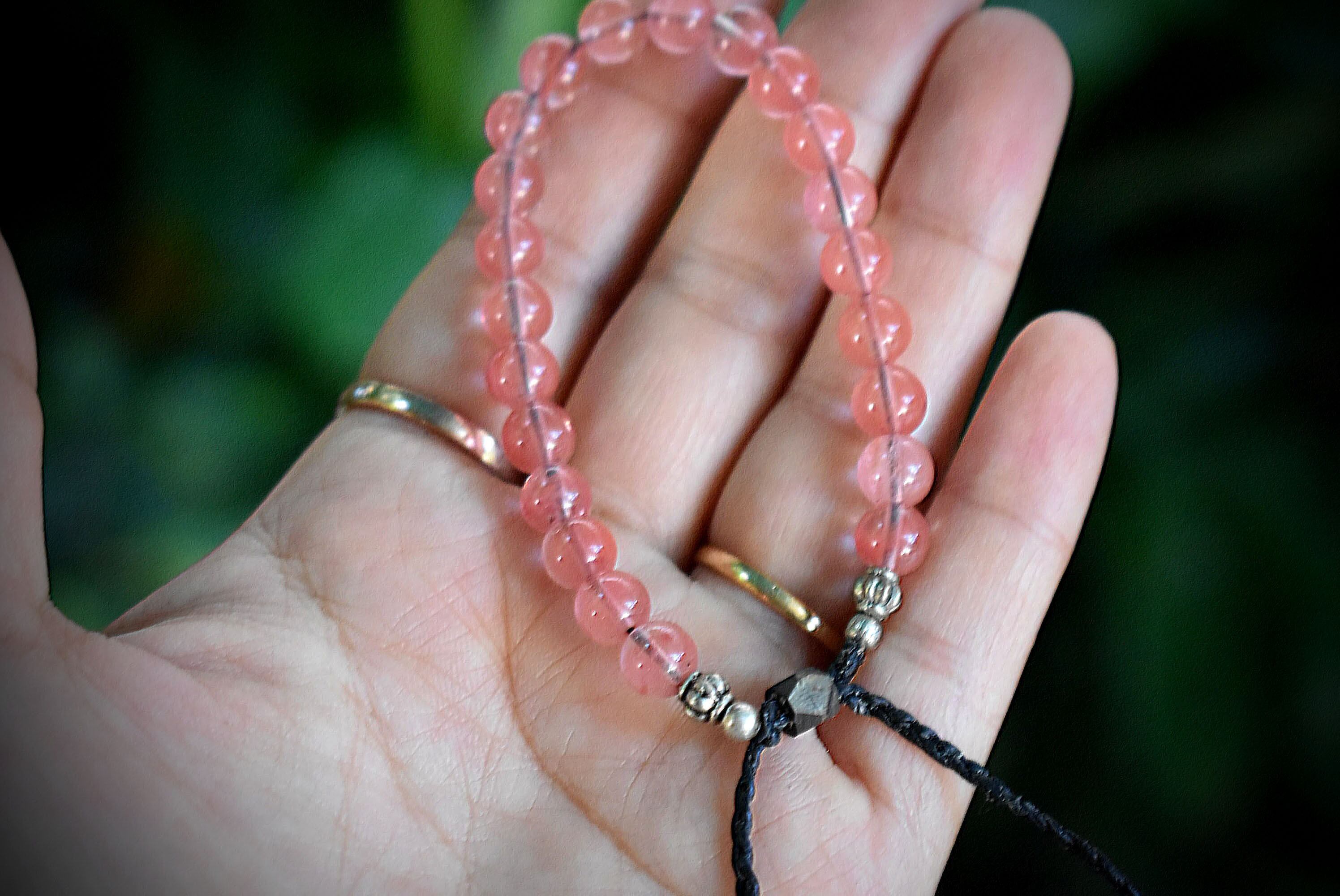 ピンク色が愛らしいピンク水晶を使用したビーズブレスレット。