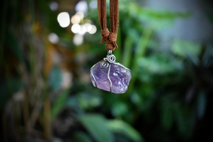 天然石アメジスト原石を使用し、ワイヤーワークを施してペンダントトップに仕上げました。石の周りをぐるっとワイヤーで囲んであります。