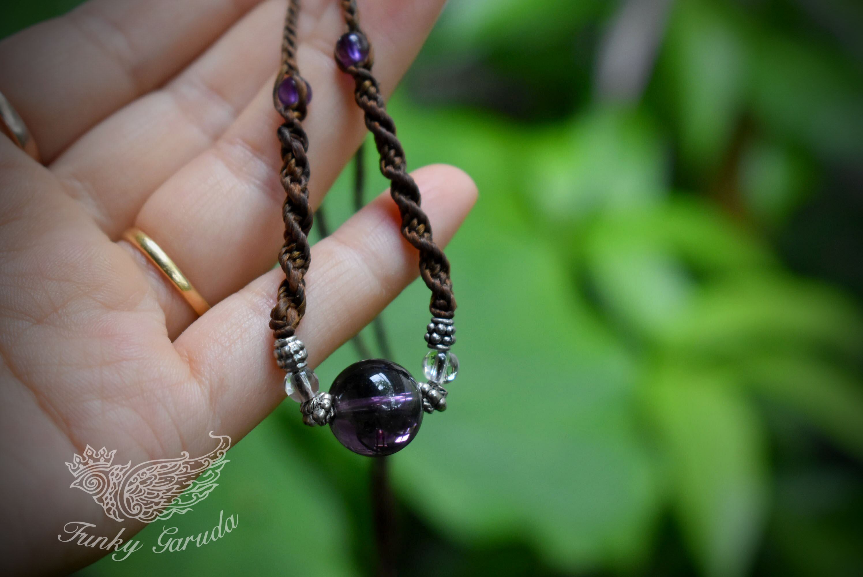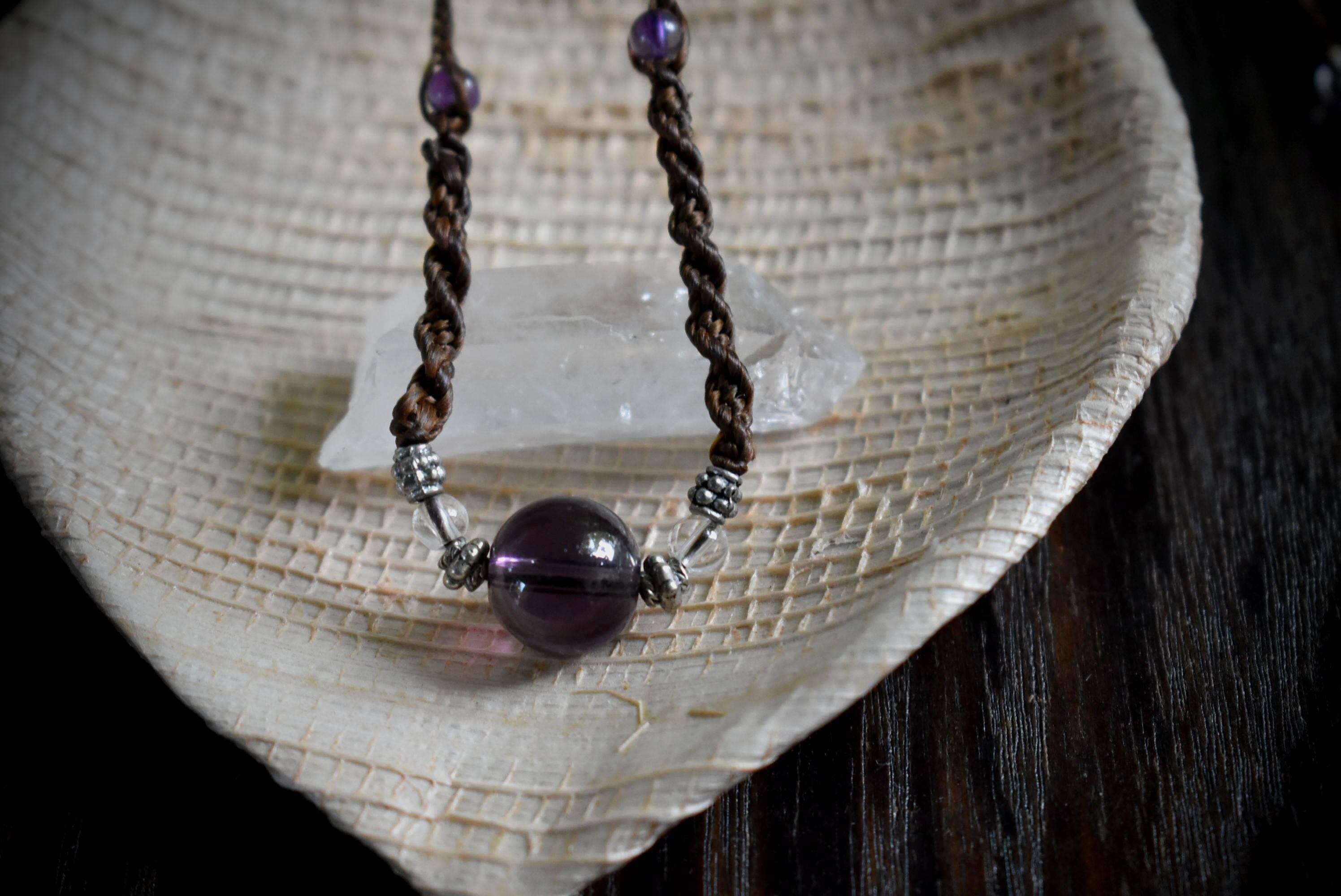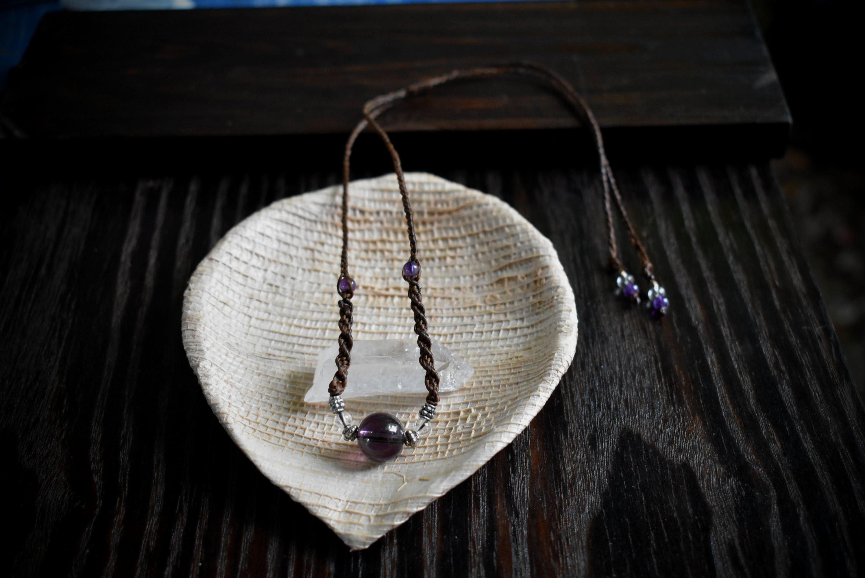 アメジストカラー★アンティークガラス シンプルマクラメネックレスame001