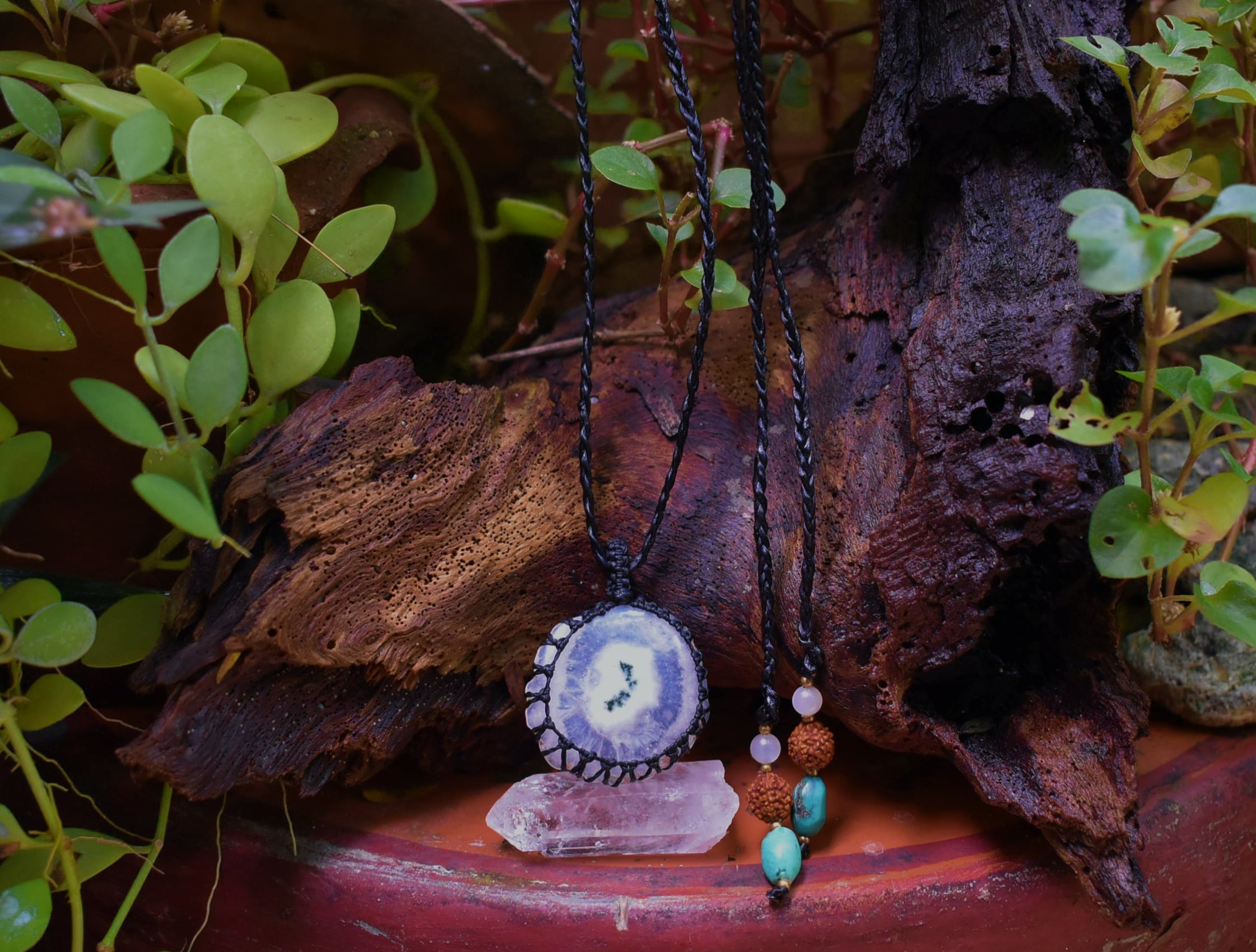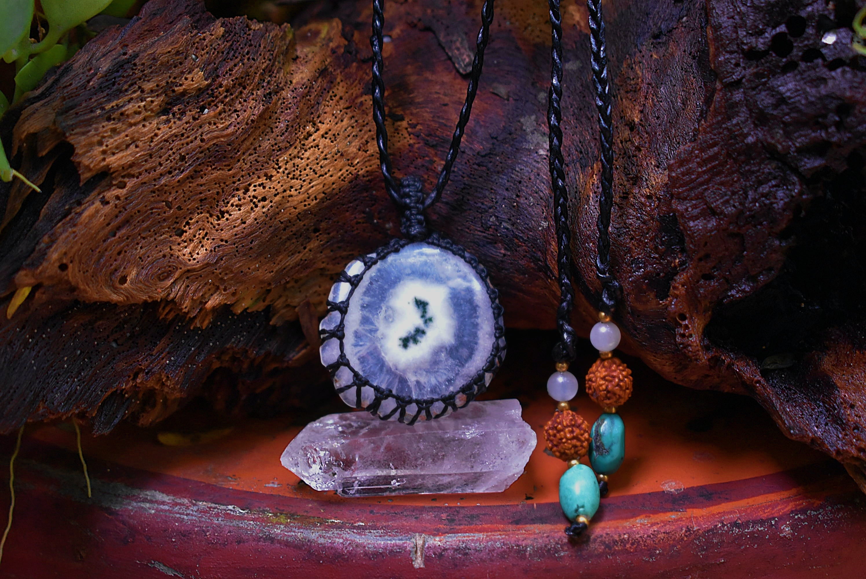 白い切り株と星★ソーラークォーツマクラメペンダントso001
