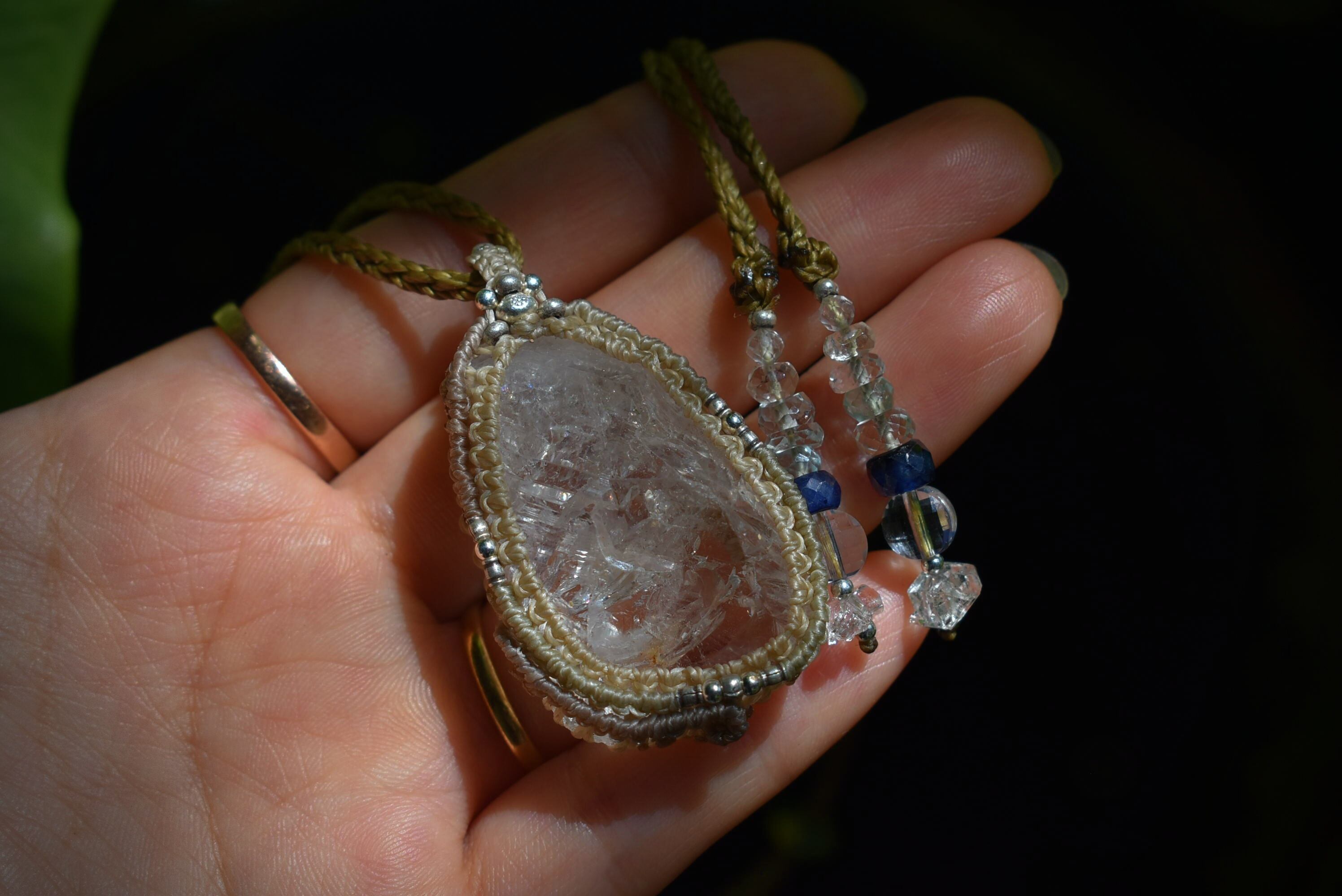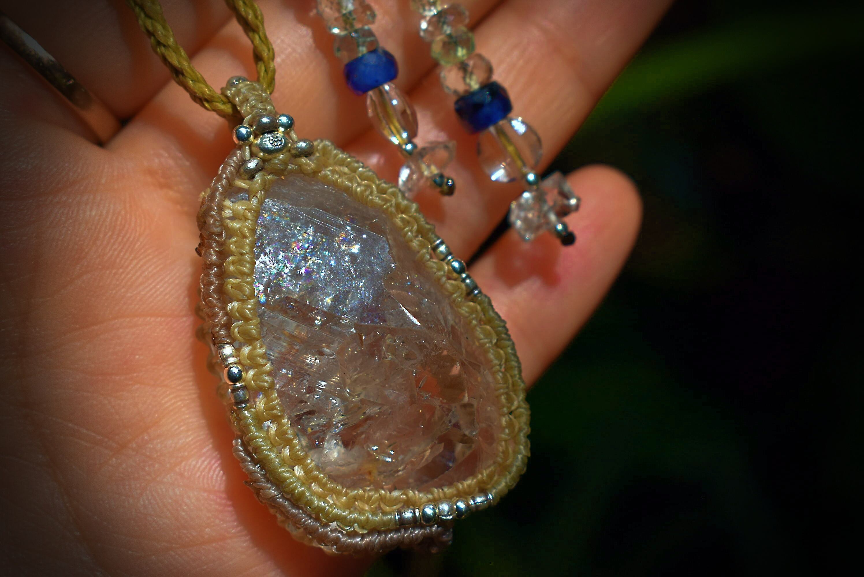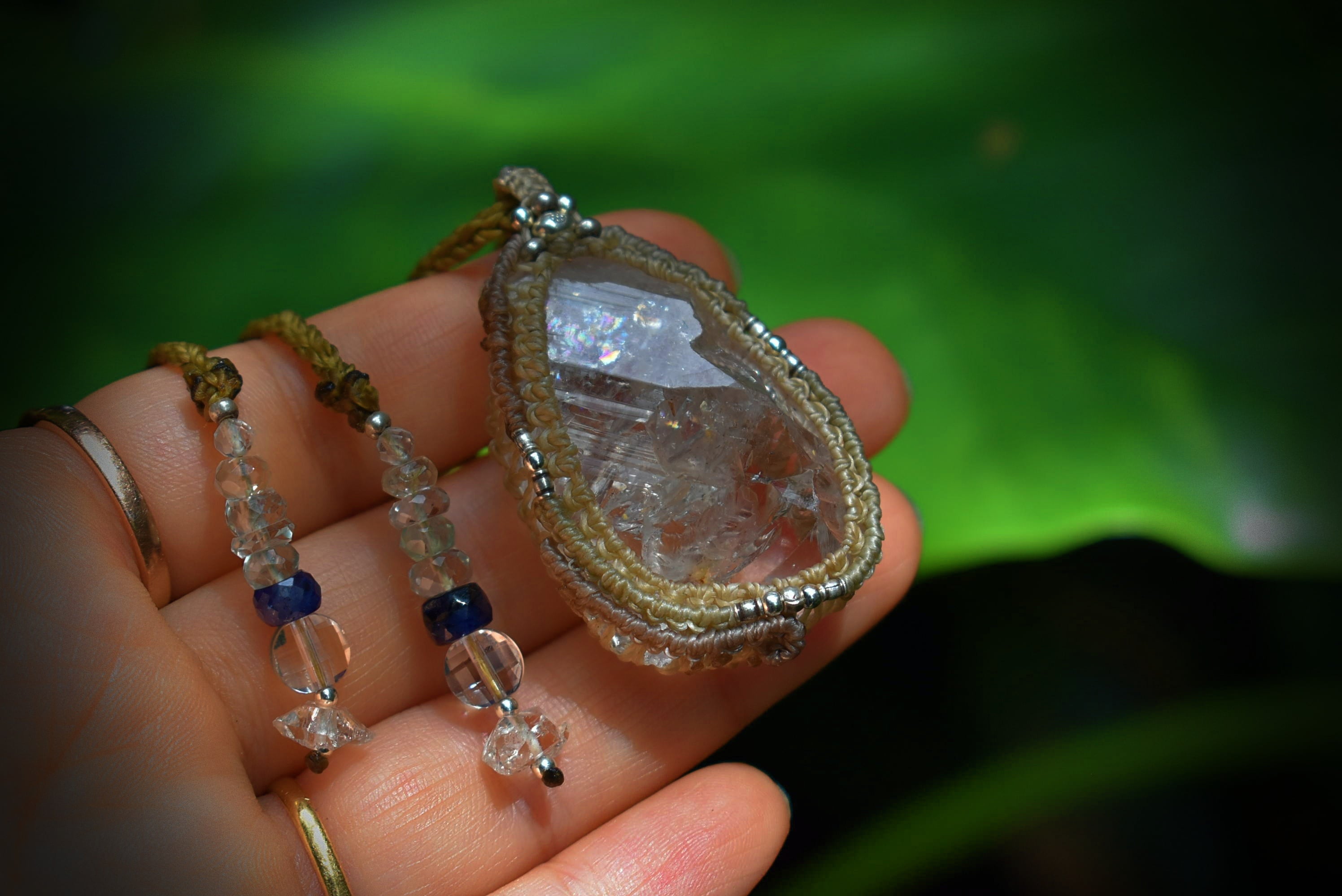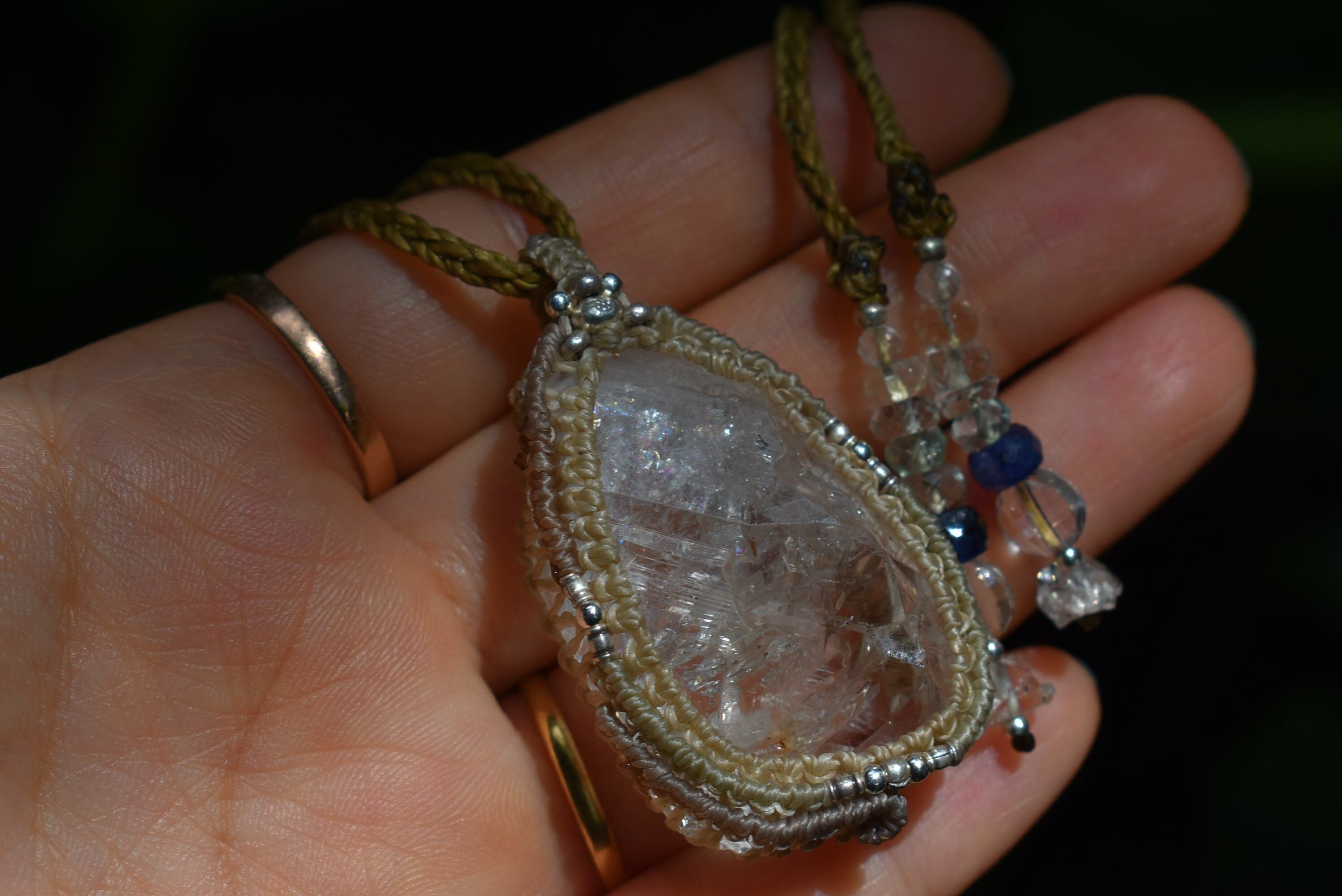 スーパーレインボー★ハーキマー水晶 シンプル マクラメペンダント