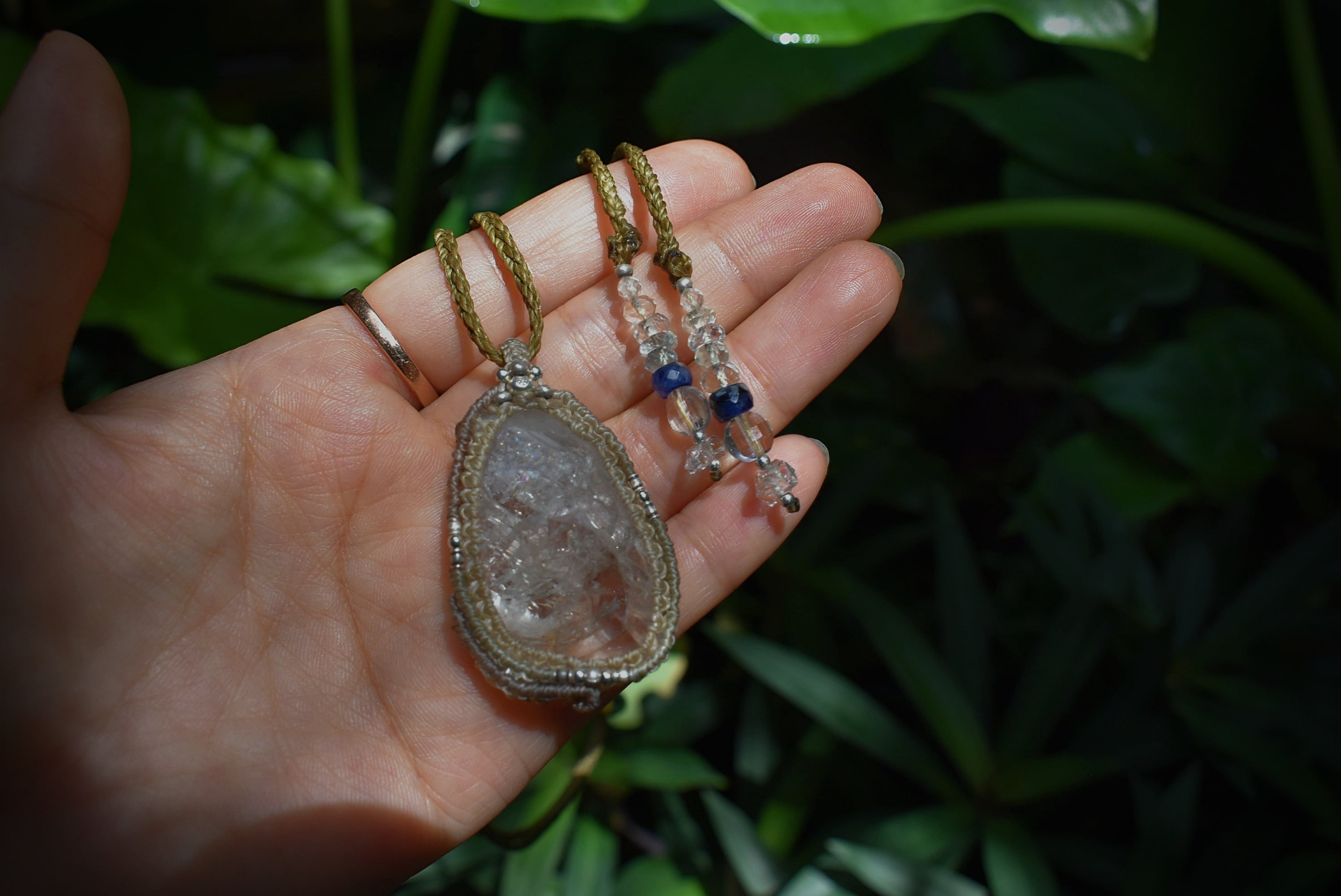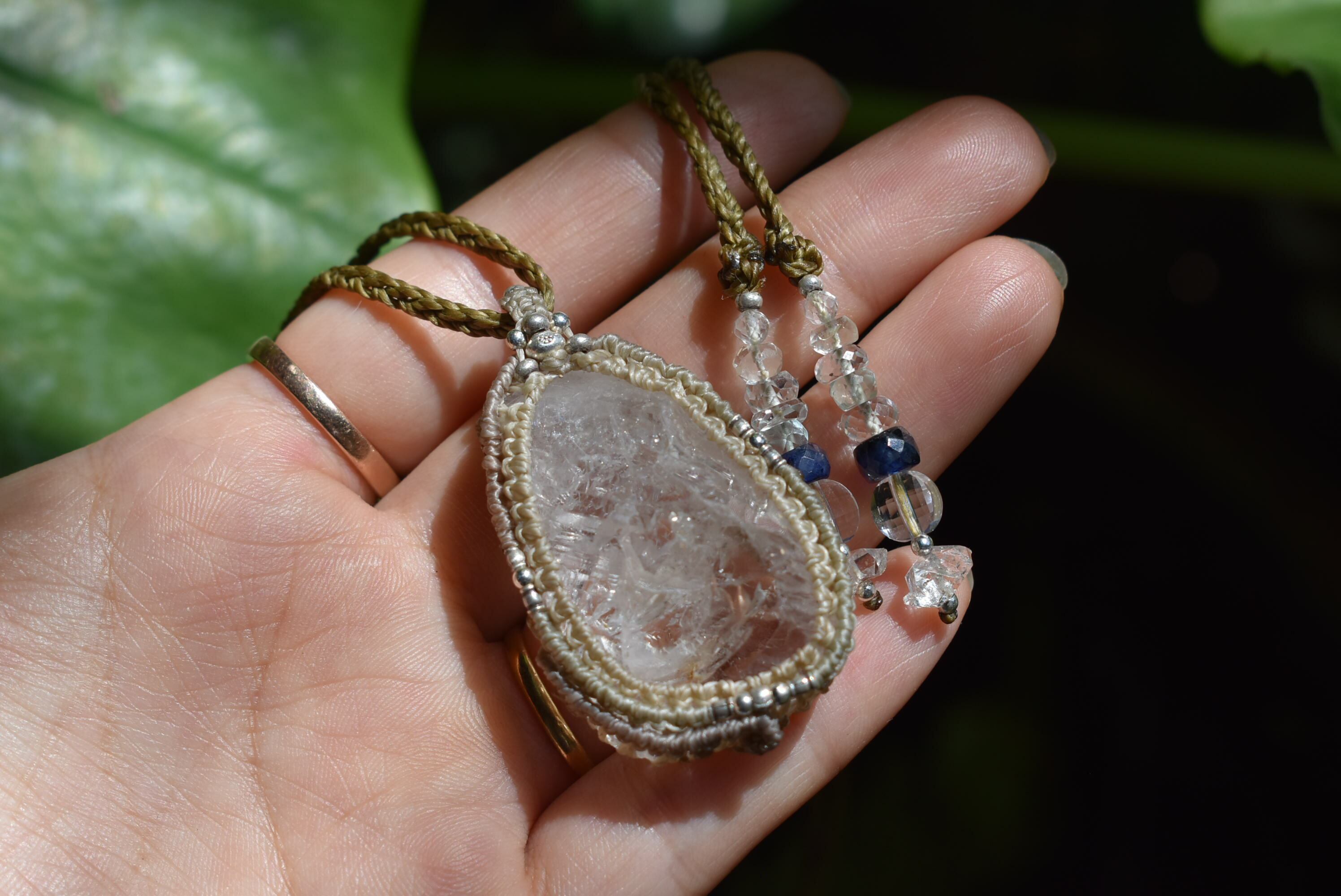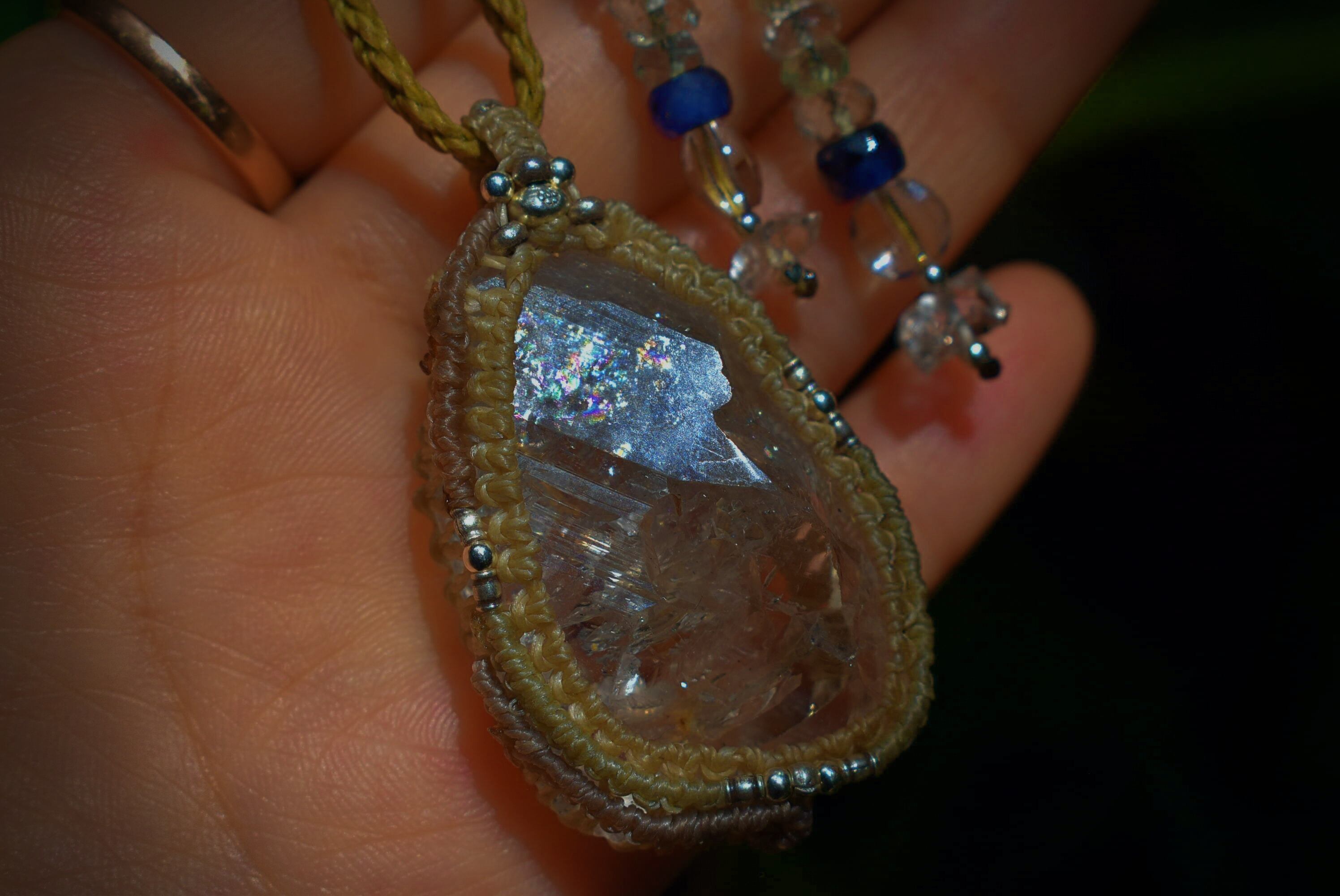 スーパーレインボー★ハーキマー水晶 シンプル マクラメペンダント