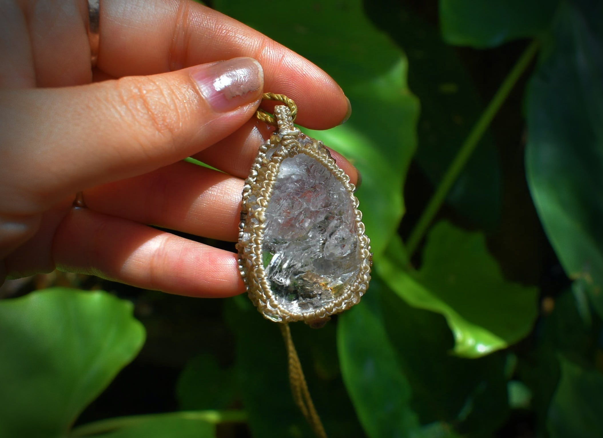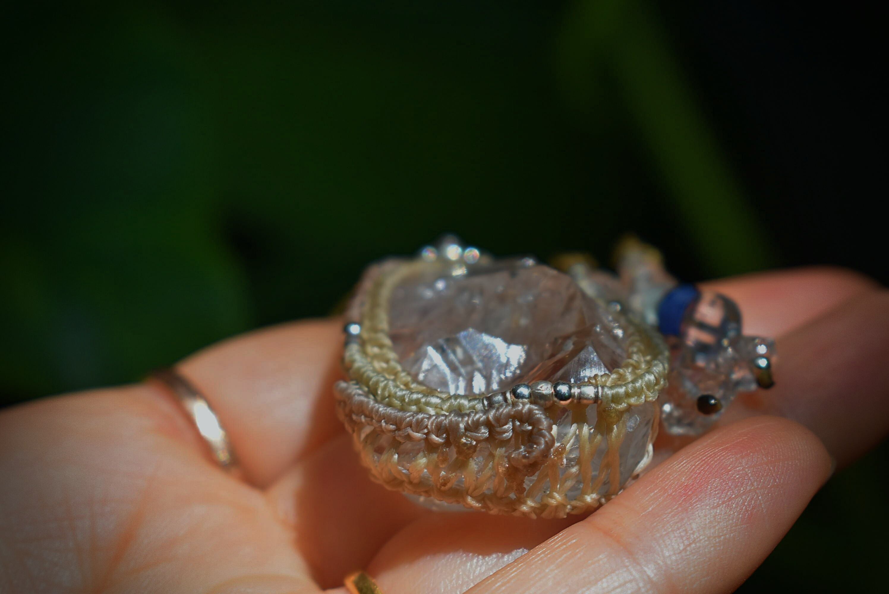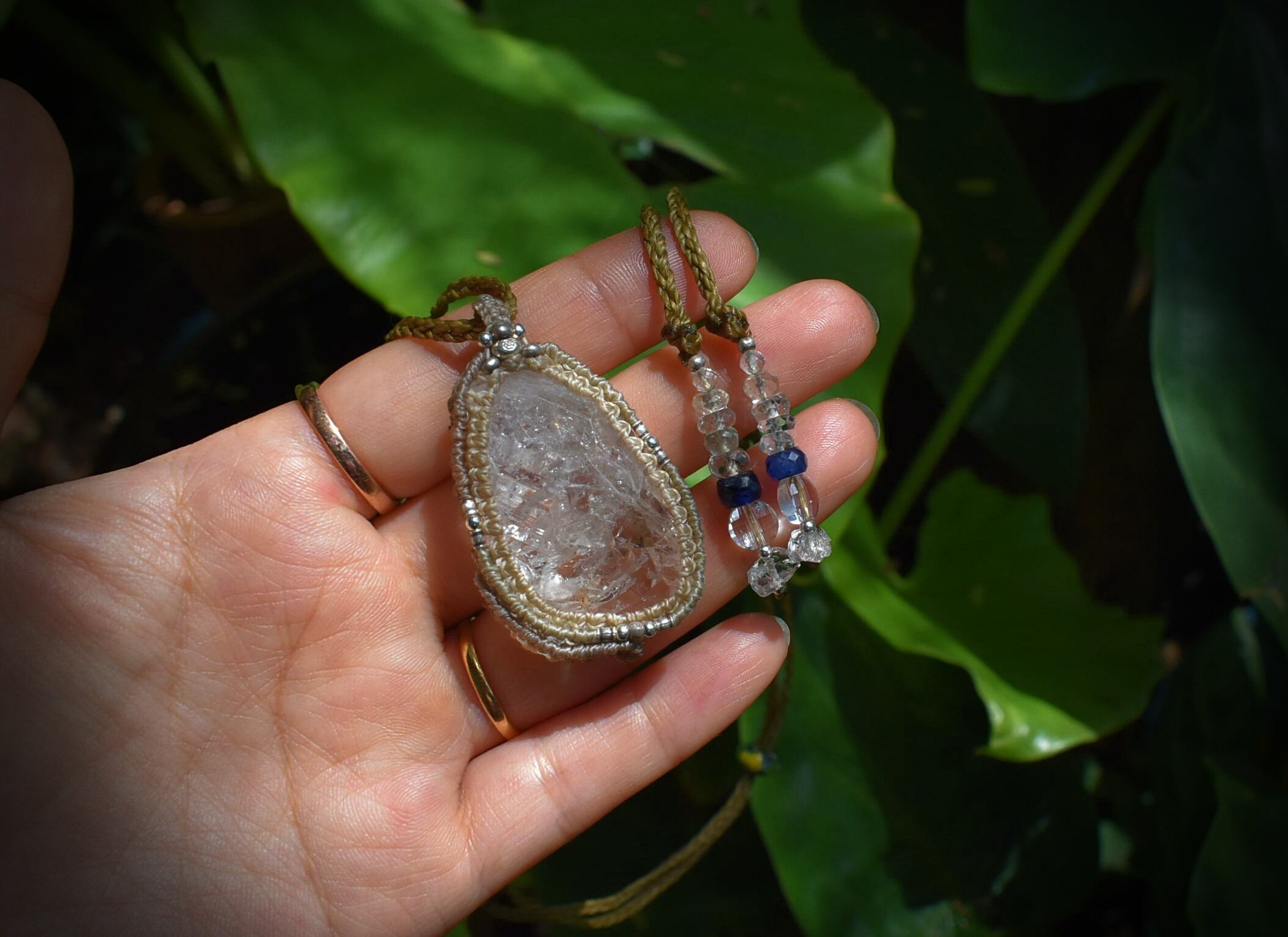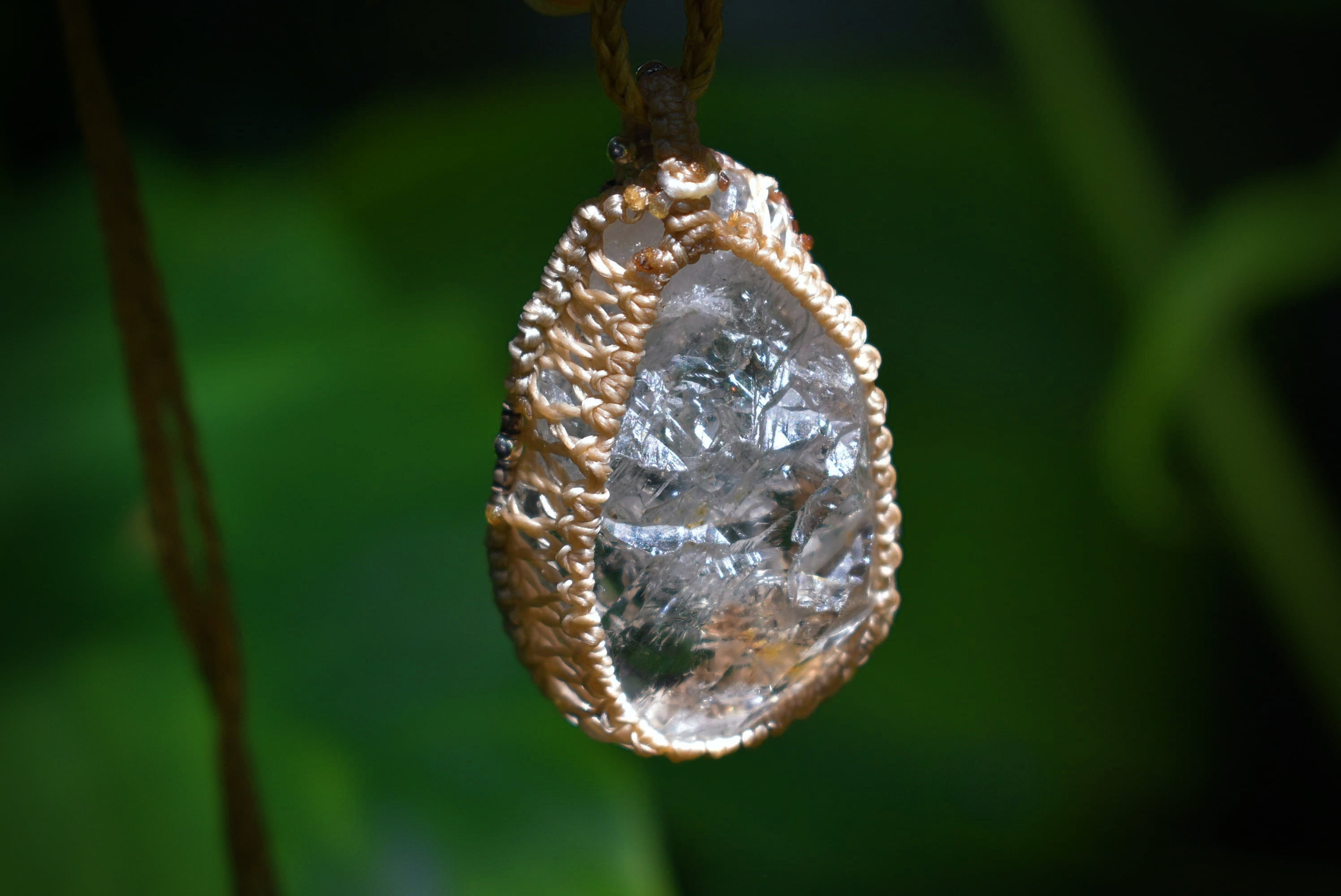 スーパーレインボー★ハーキマー水晶 シンプル マクラメペンダント