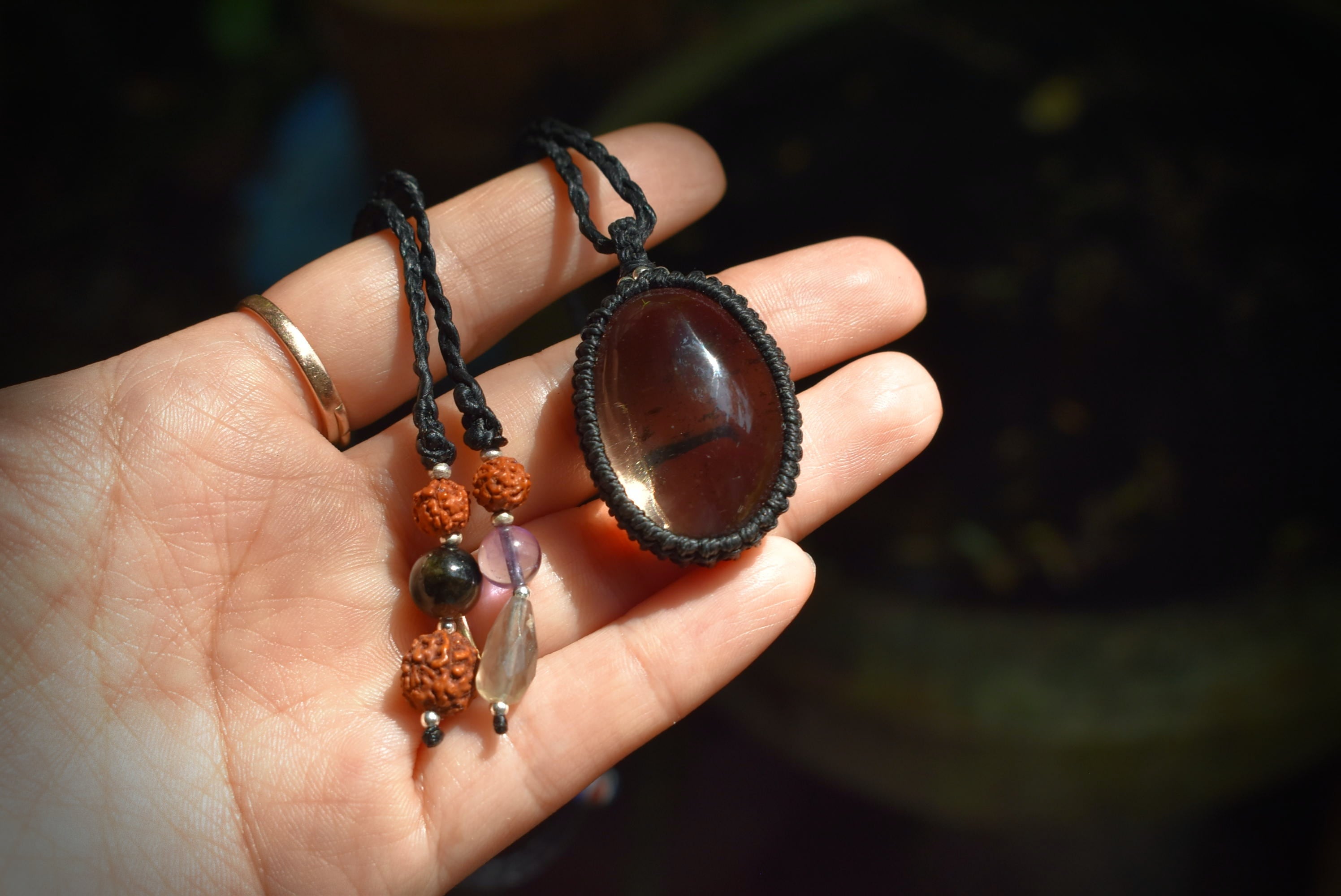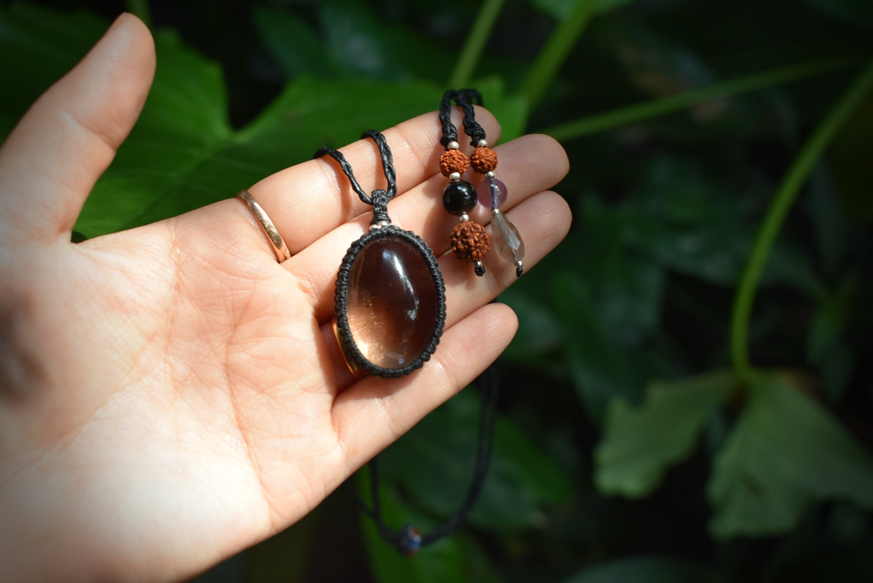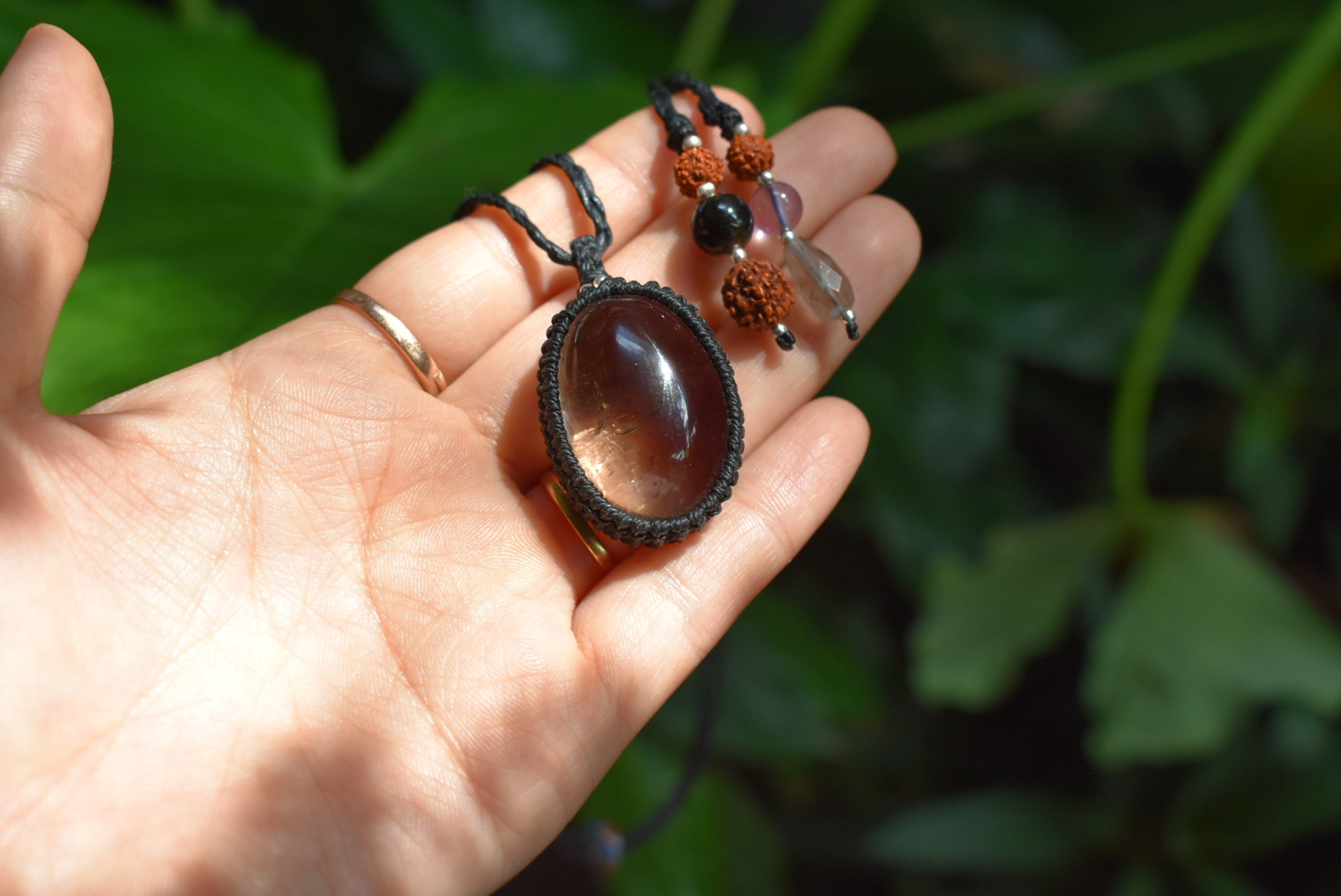 ぷっくりシルエット★スモーキークォーツ マクラメペンダントsmo001