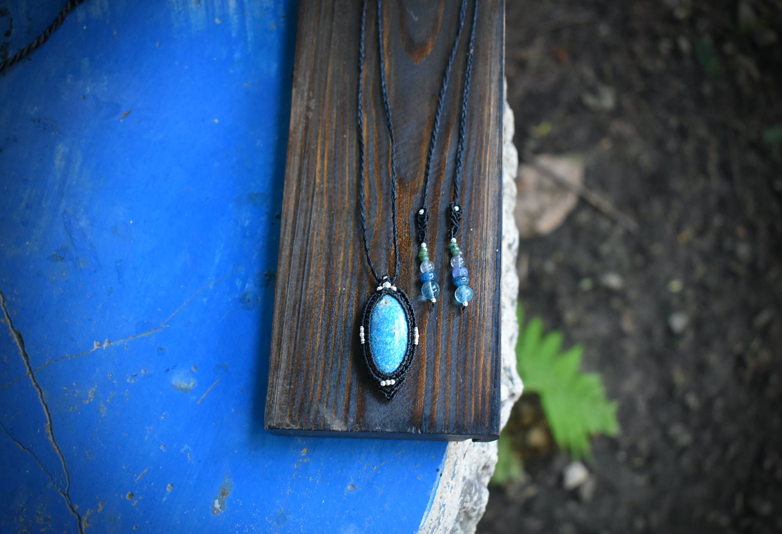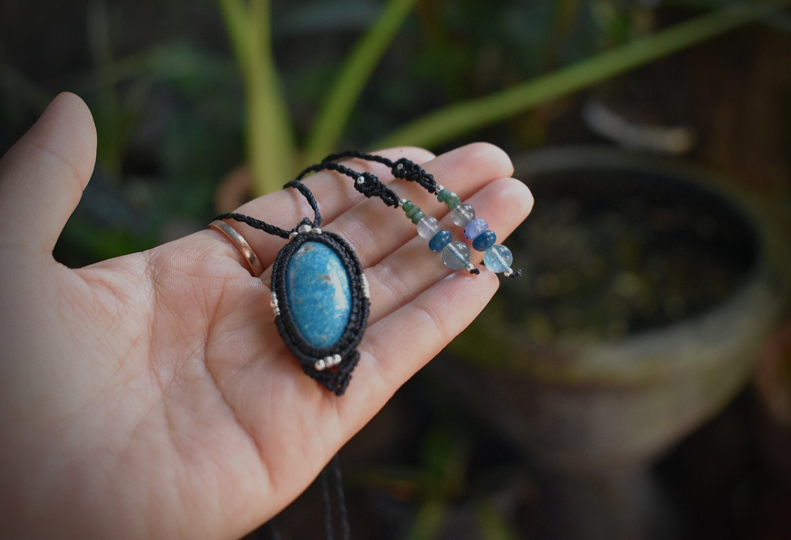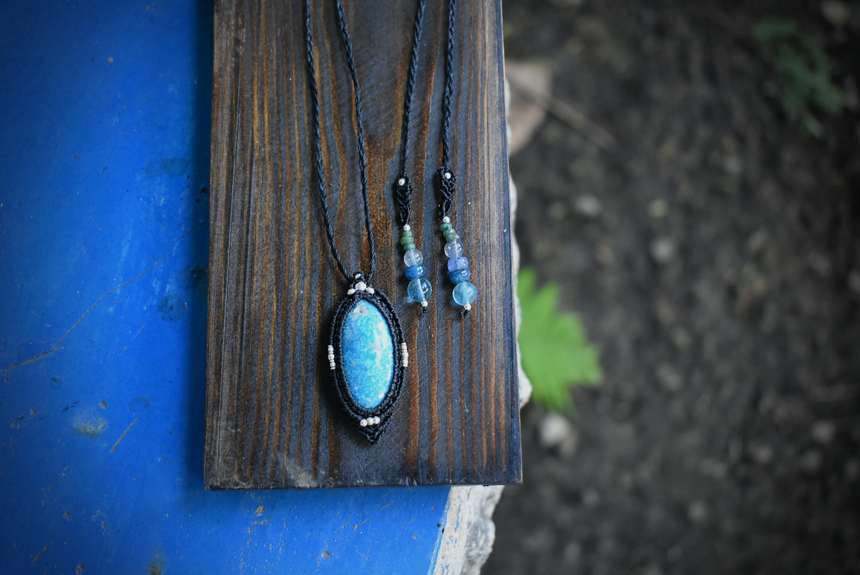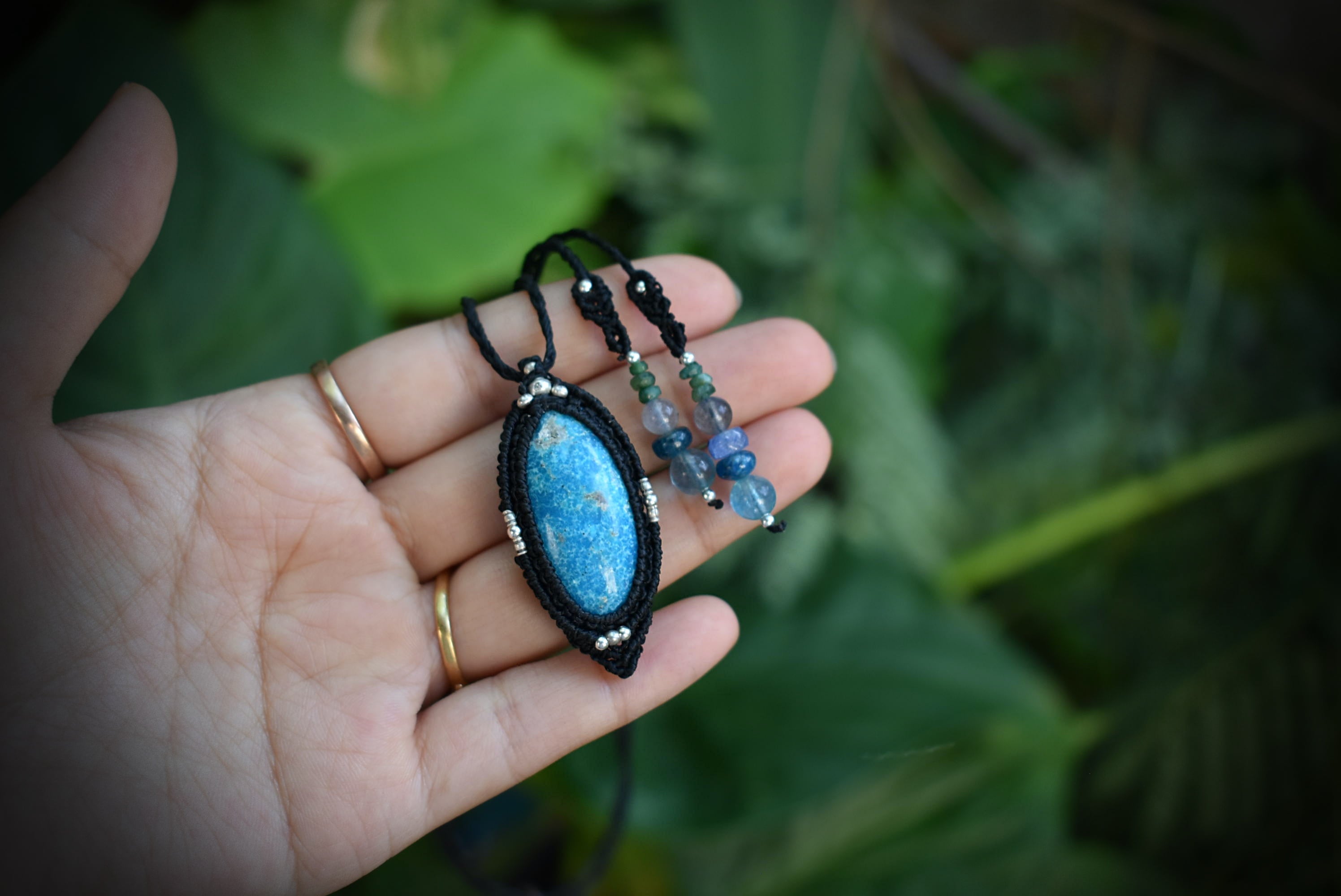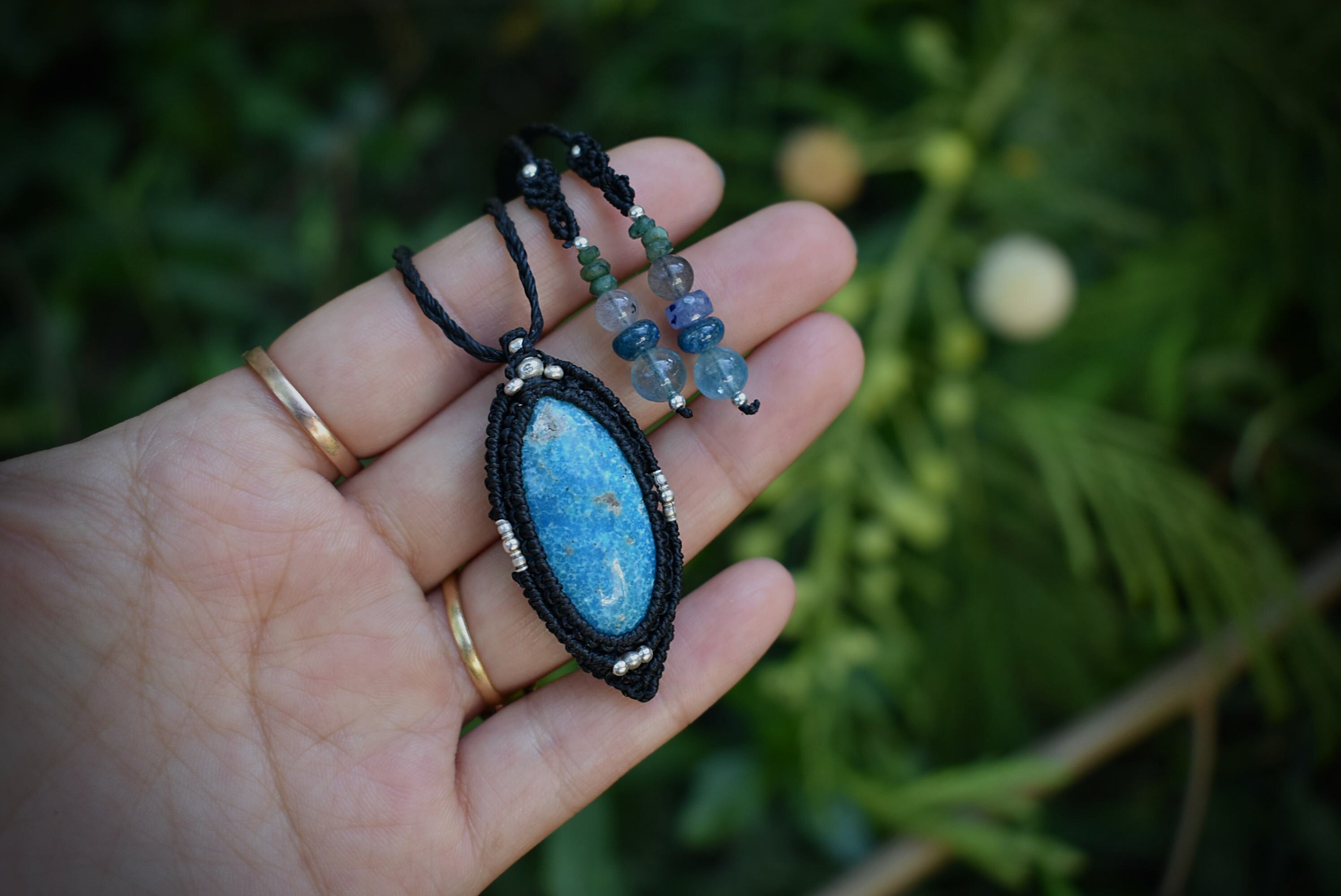 幻地球の宝物★スリーピングビューティー★ターコイズマクラメペンダント