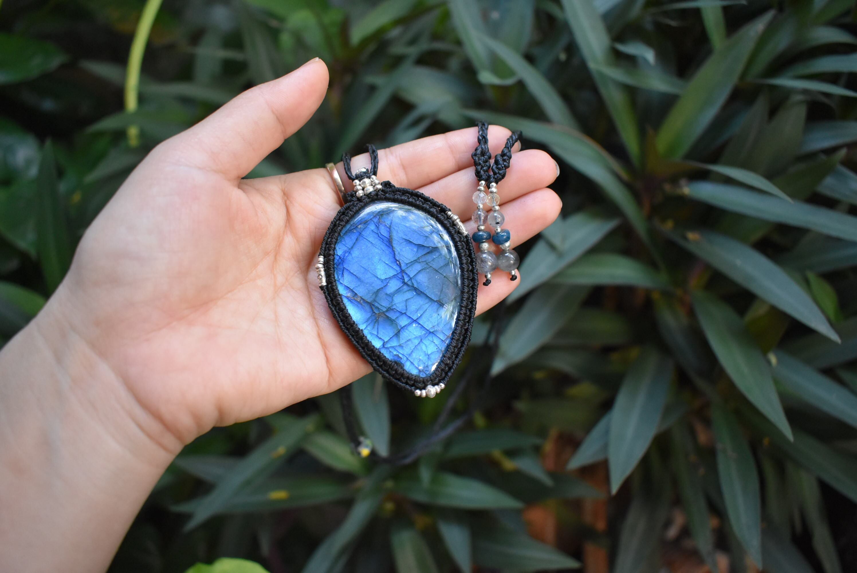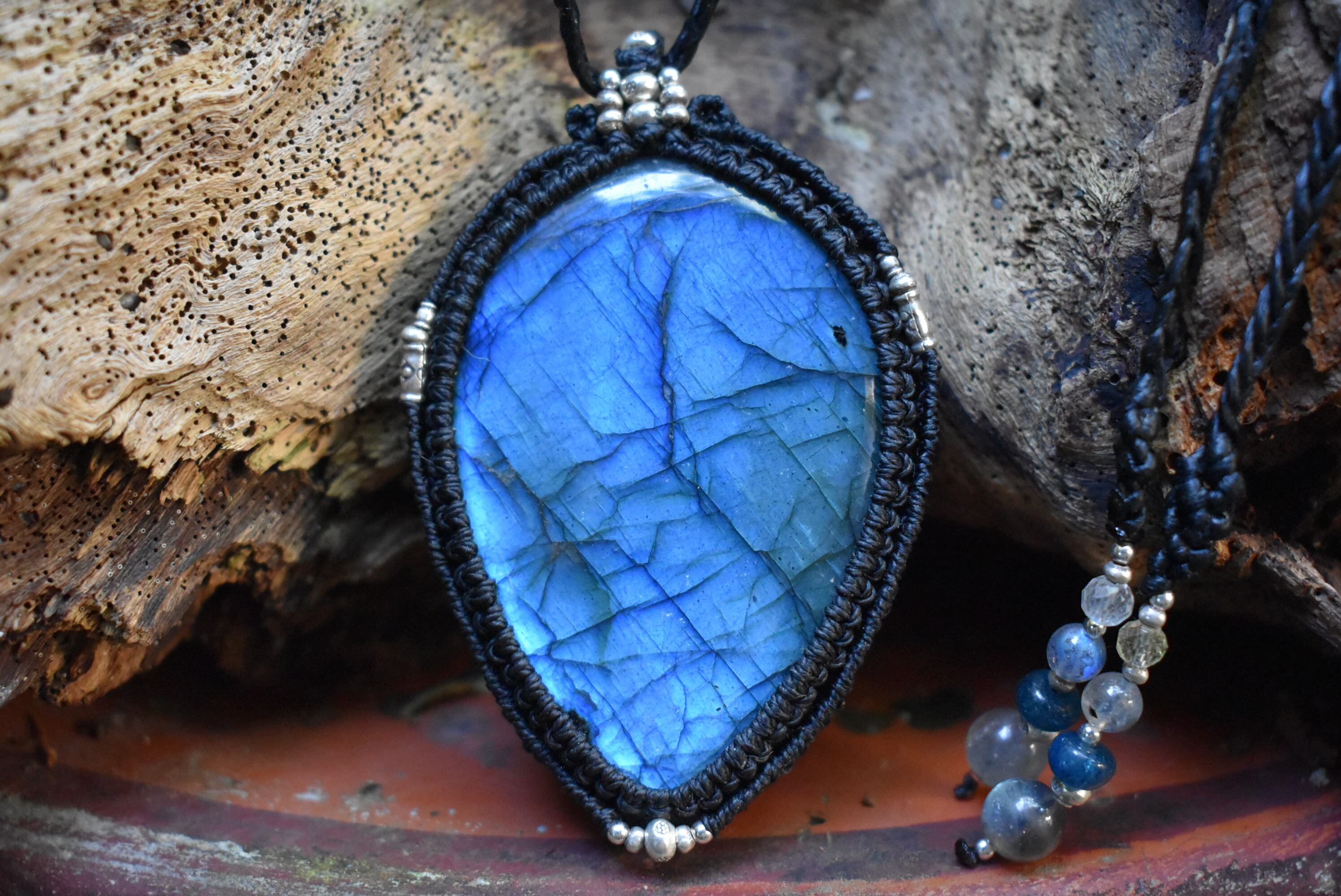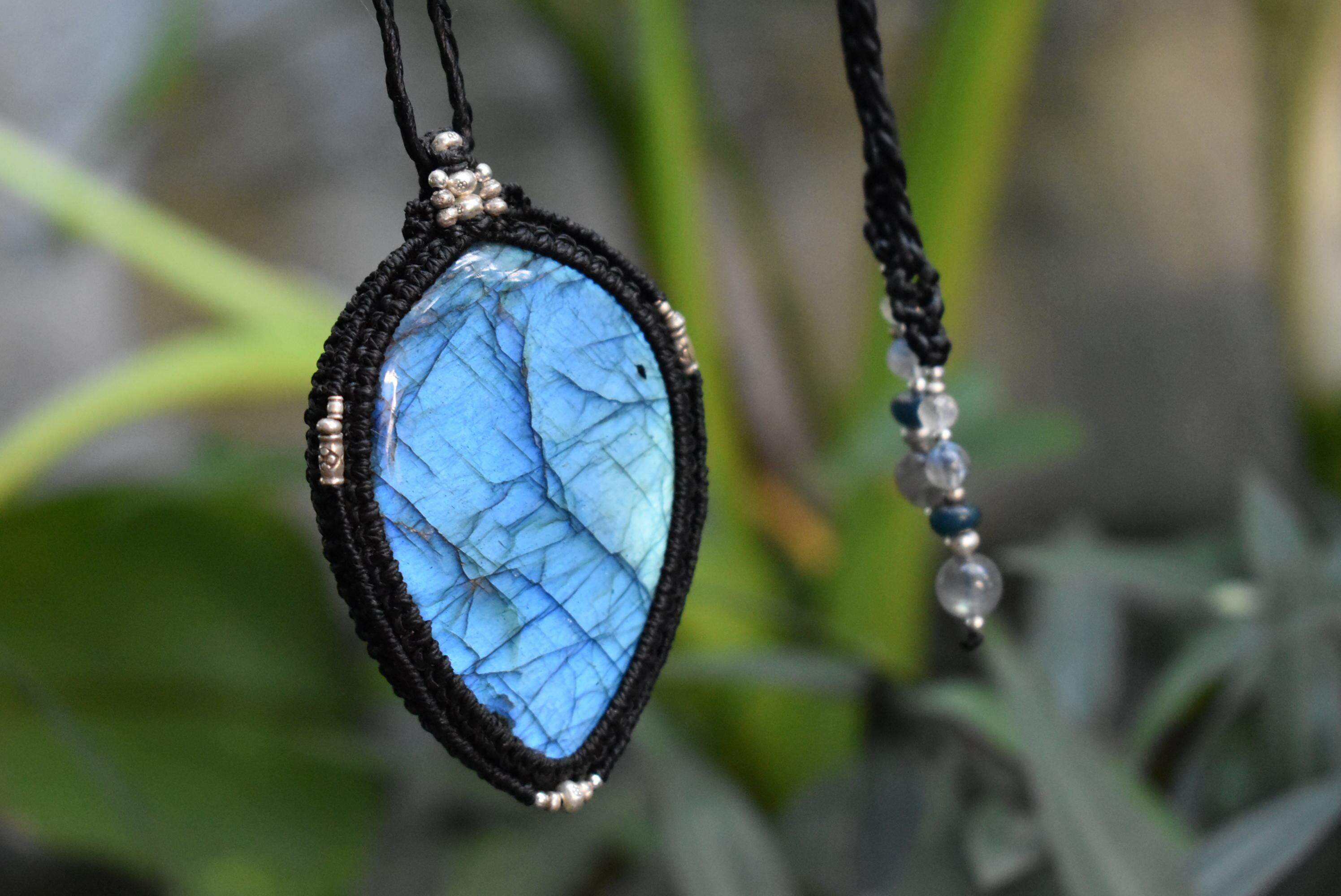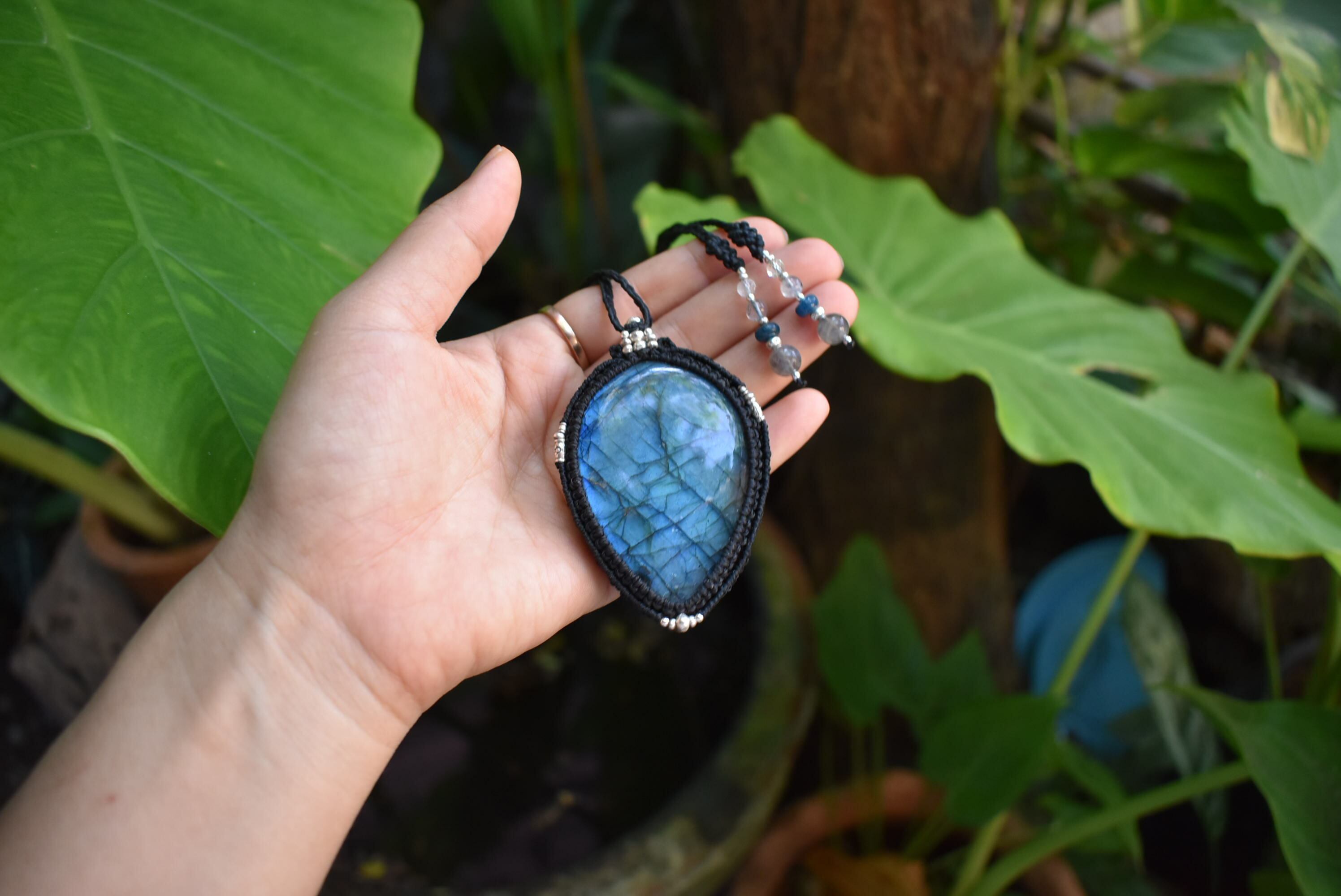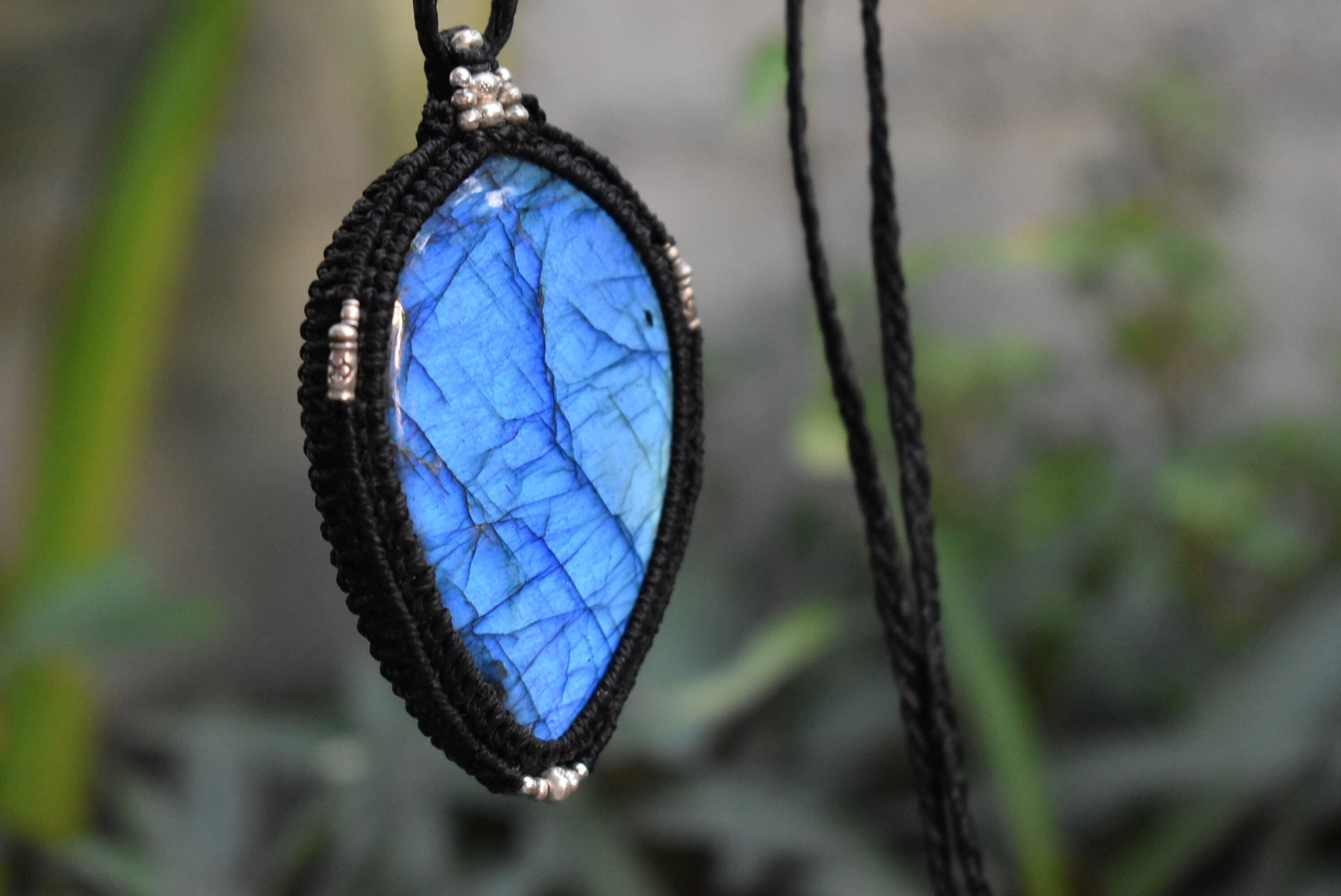 徳大大粒★大宇宙ブルー★ラブラドライトマクラメペンダント