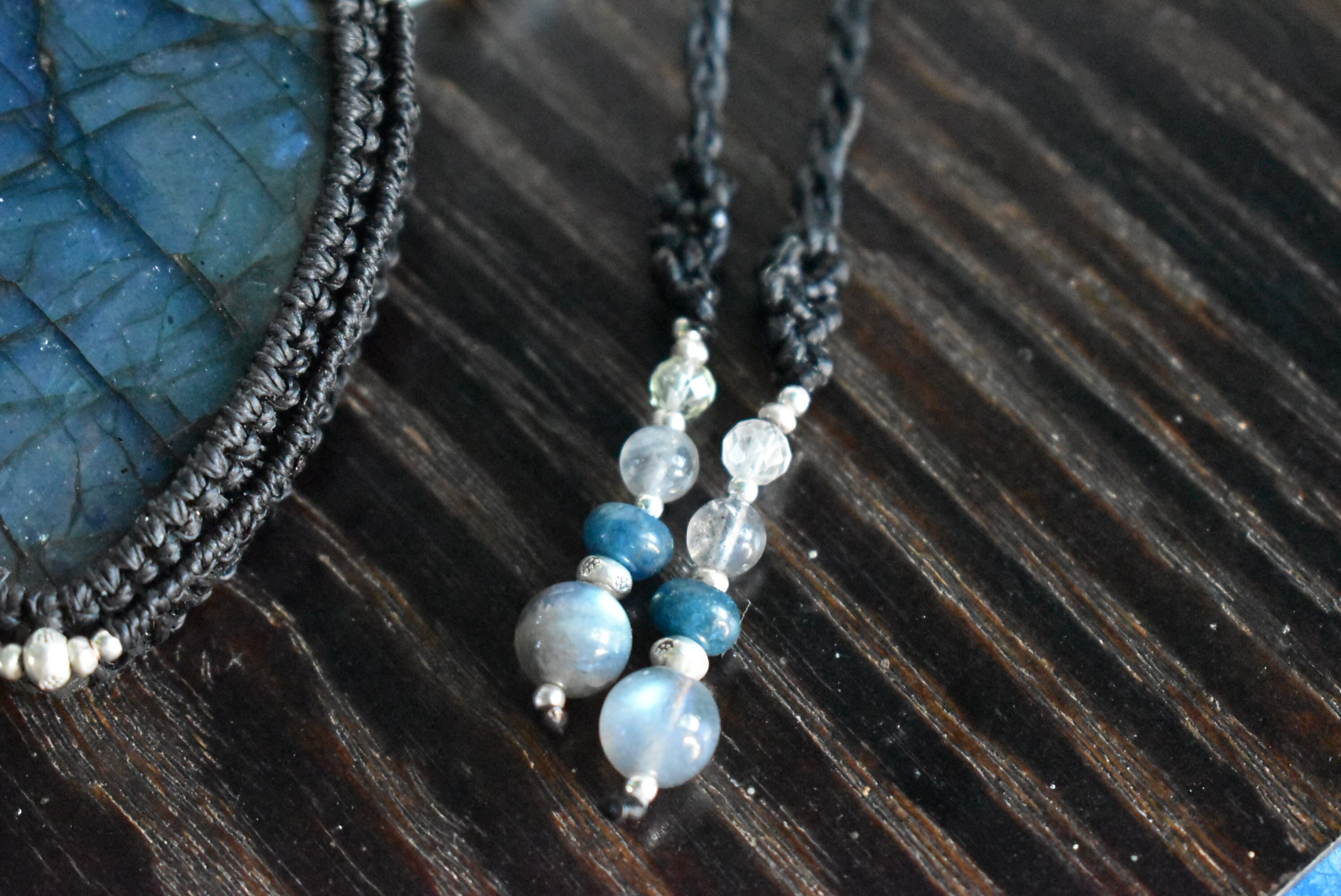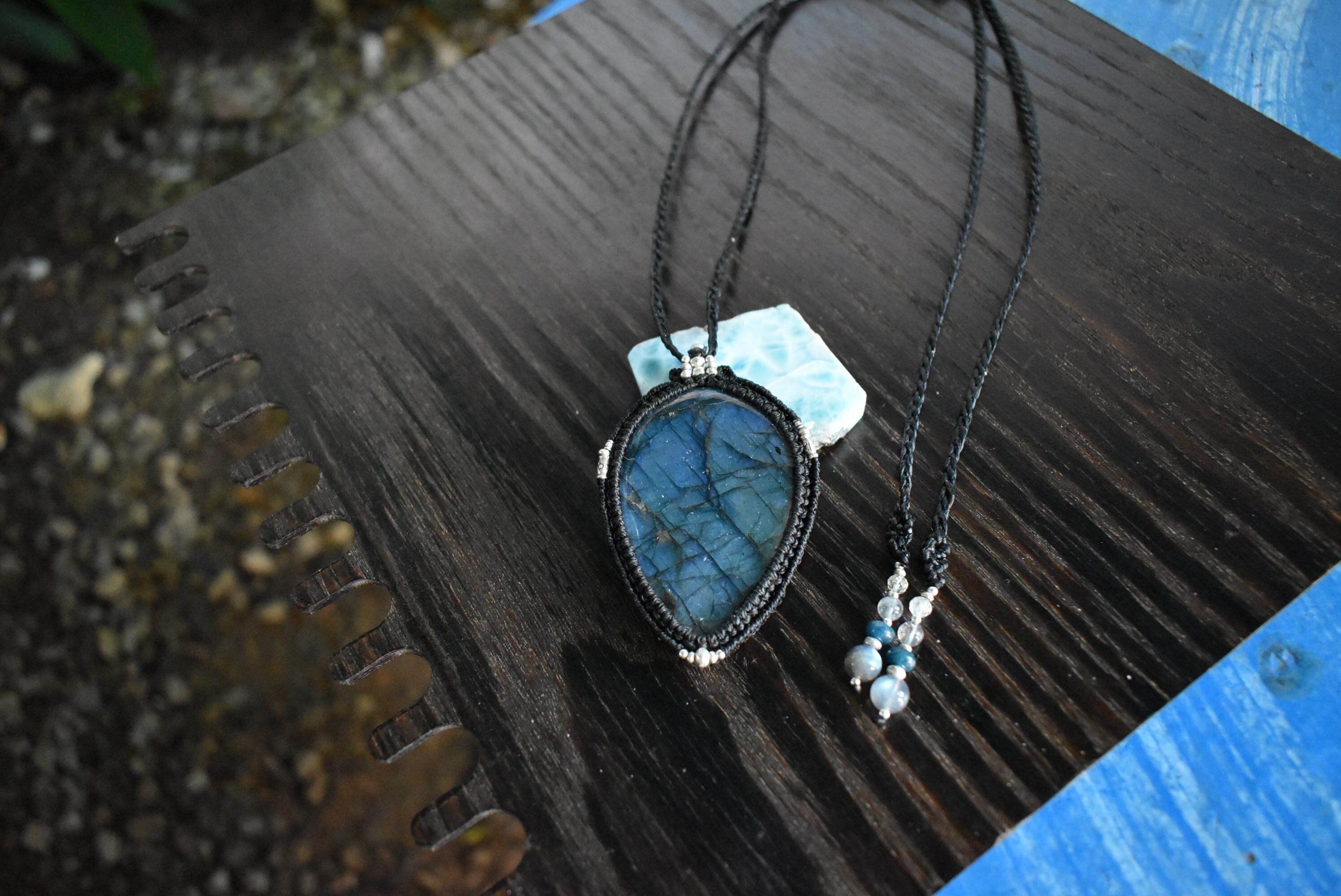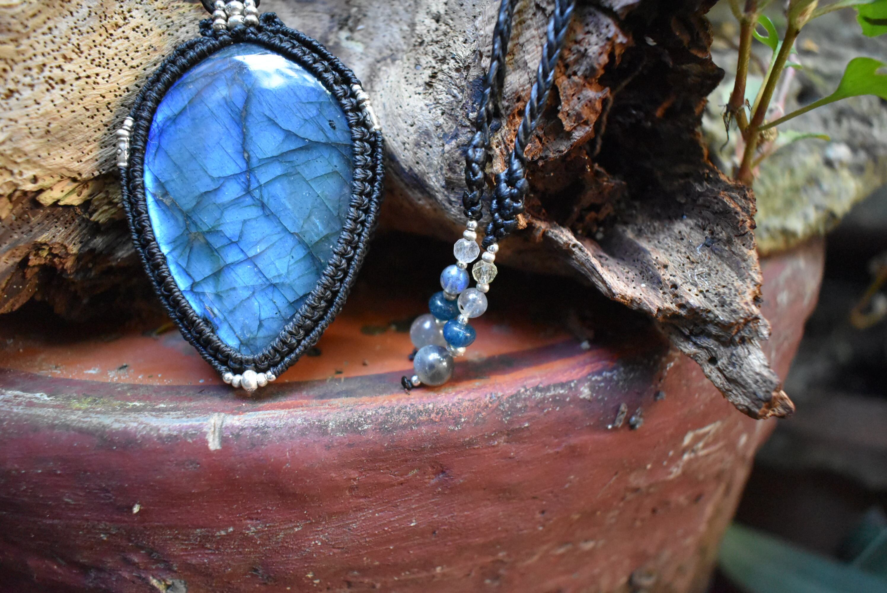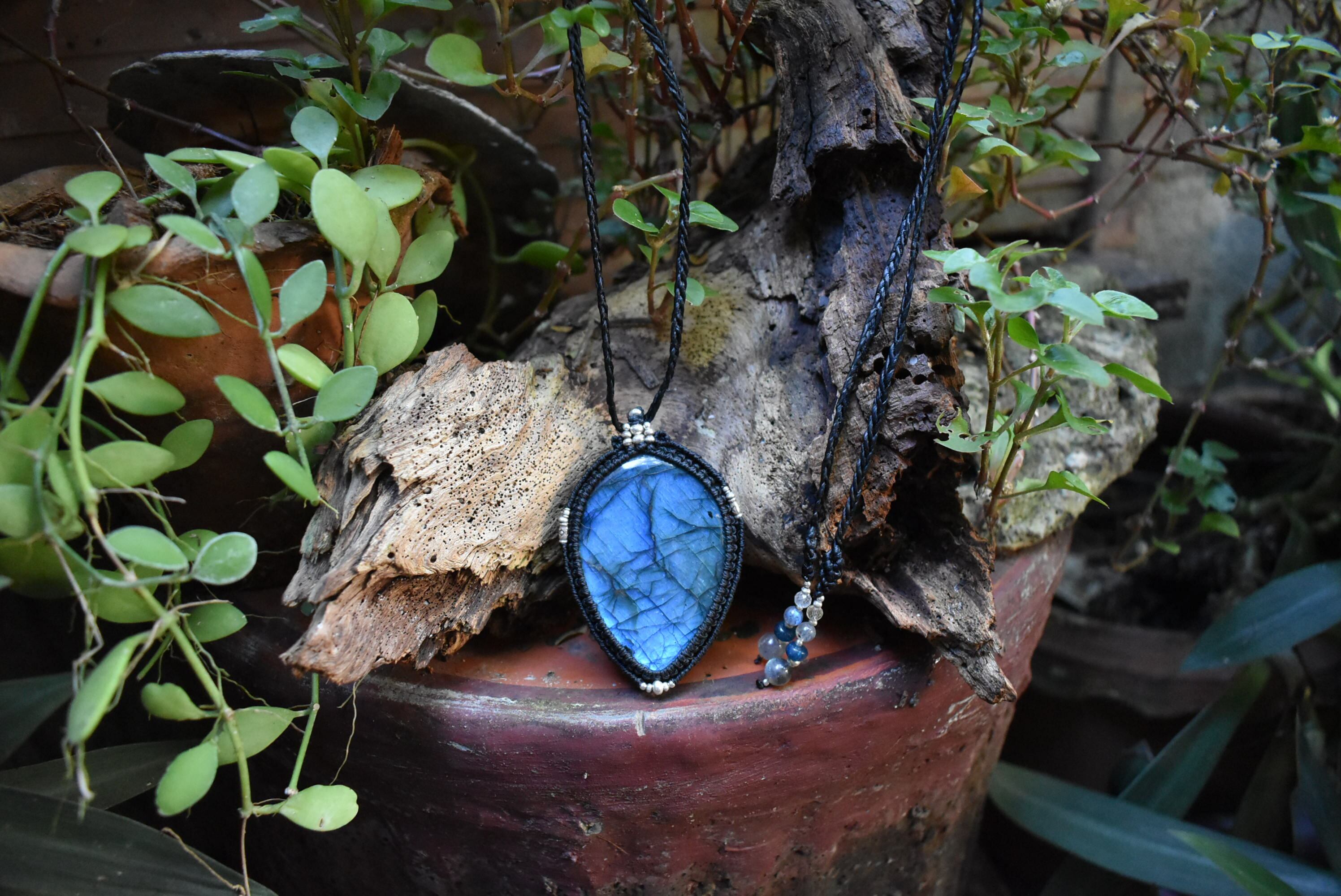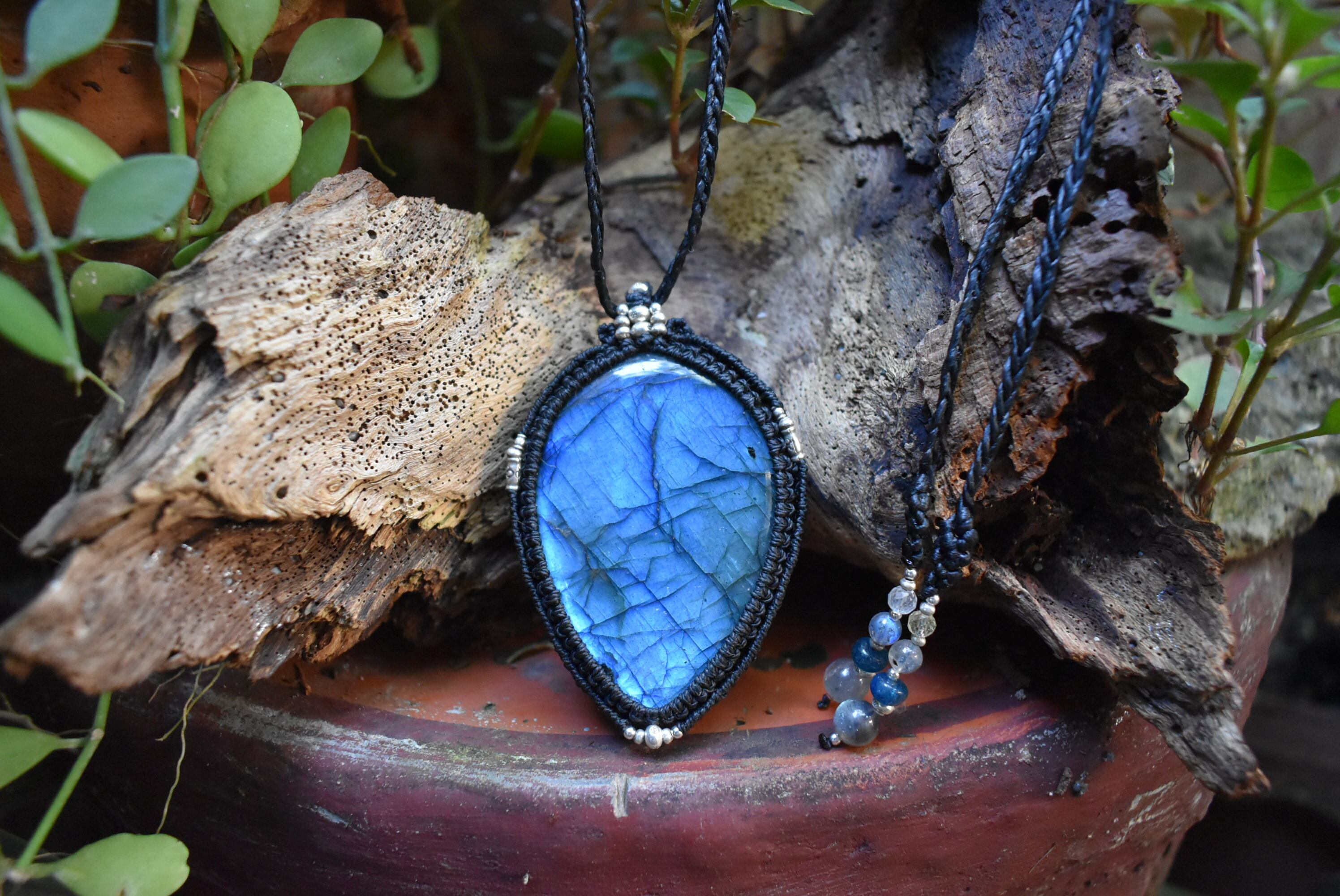 徳大大粒★大宇宙ブルー★ラブラドライトマクラメペンダント