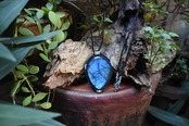 ラブラドライトの持つブルーカラーシラーは壮大に蒼く宇宙をイメージしてしまう大振りなもの。画像には写っておりませんが暗い部分にはキラキラと星のように光るシラーが更なる魅力を放っています。