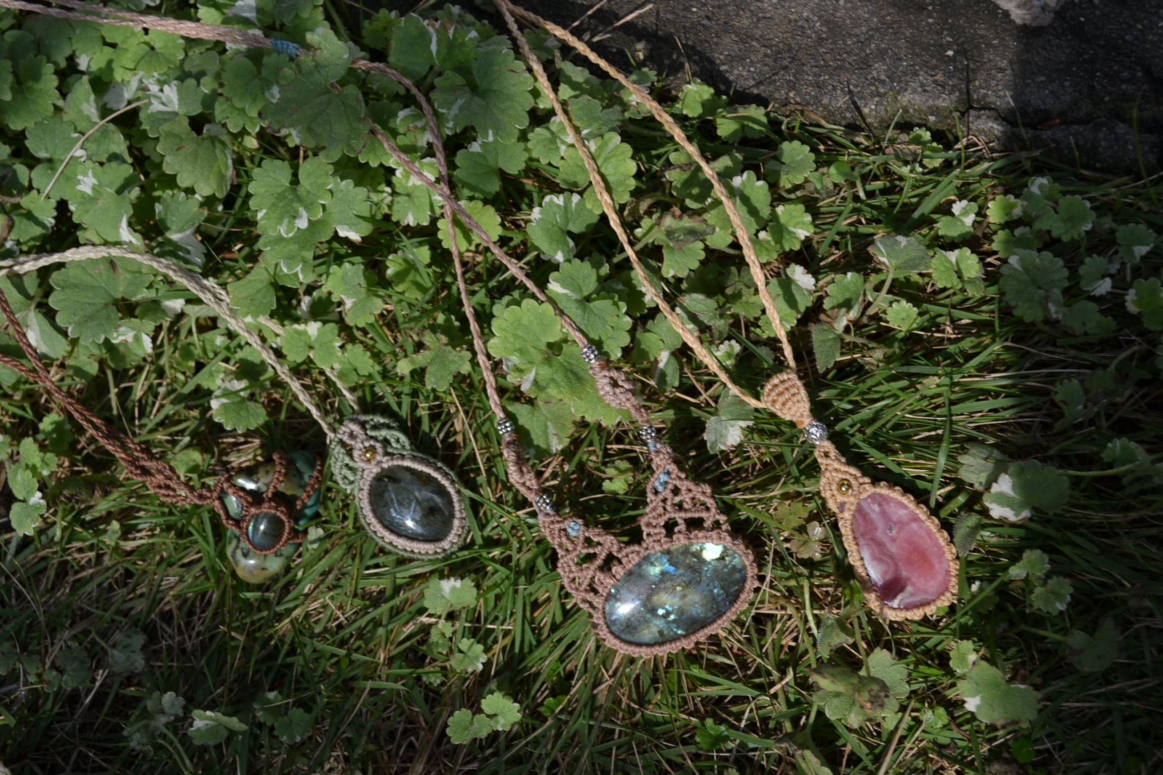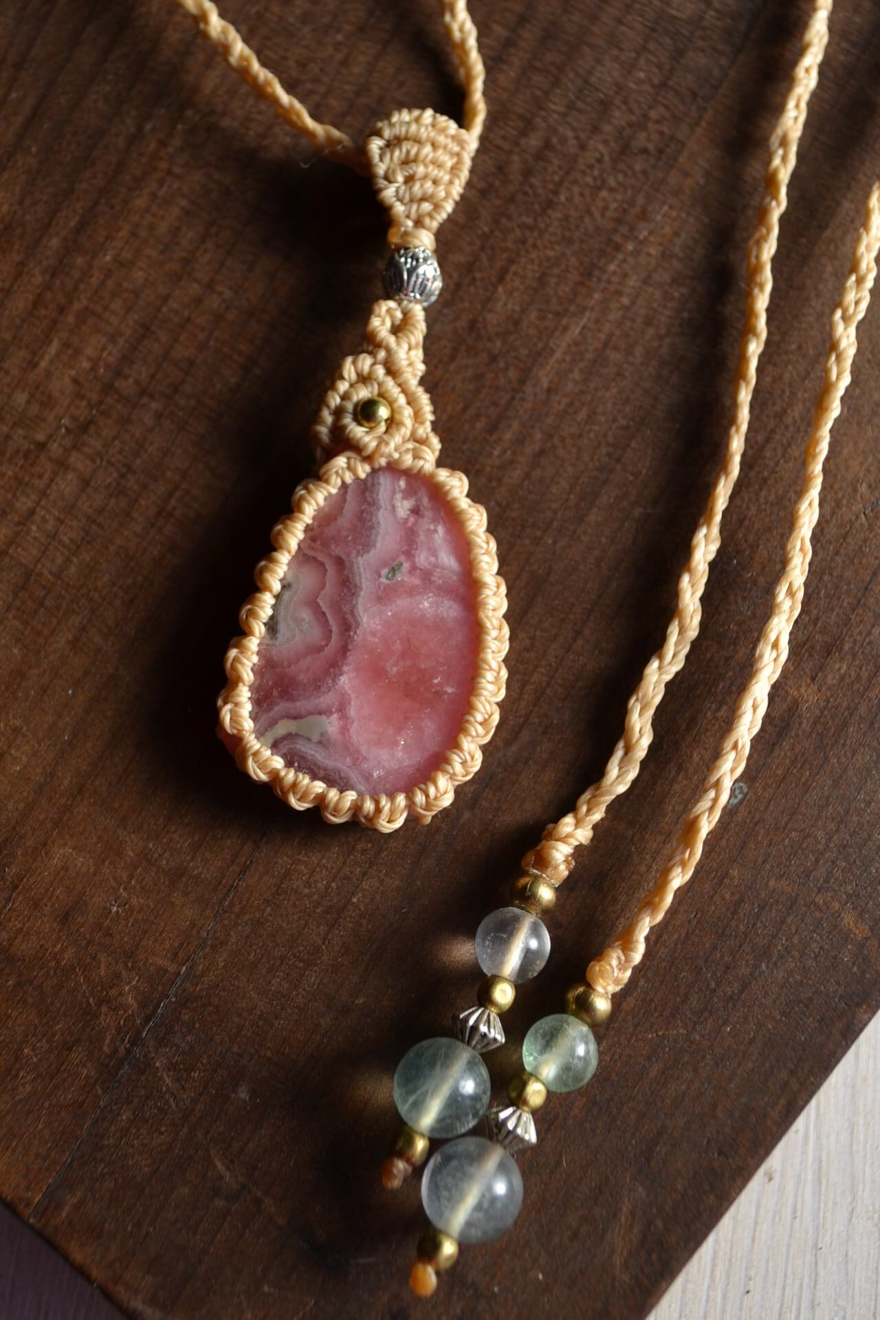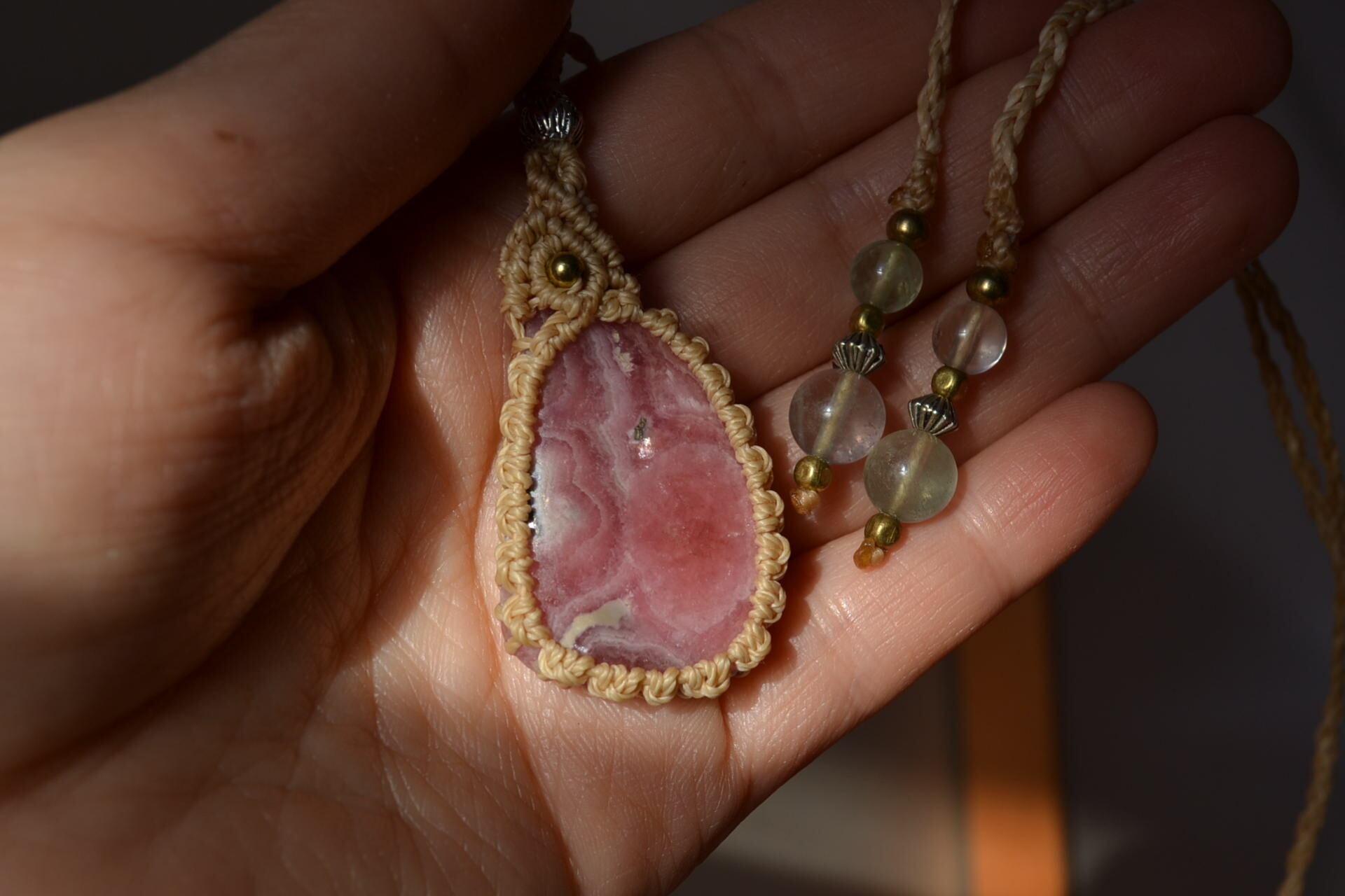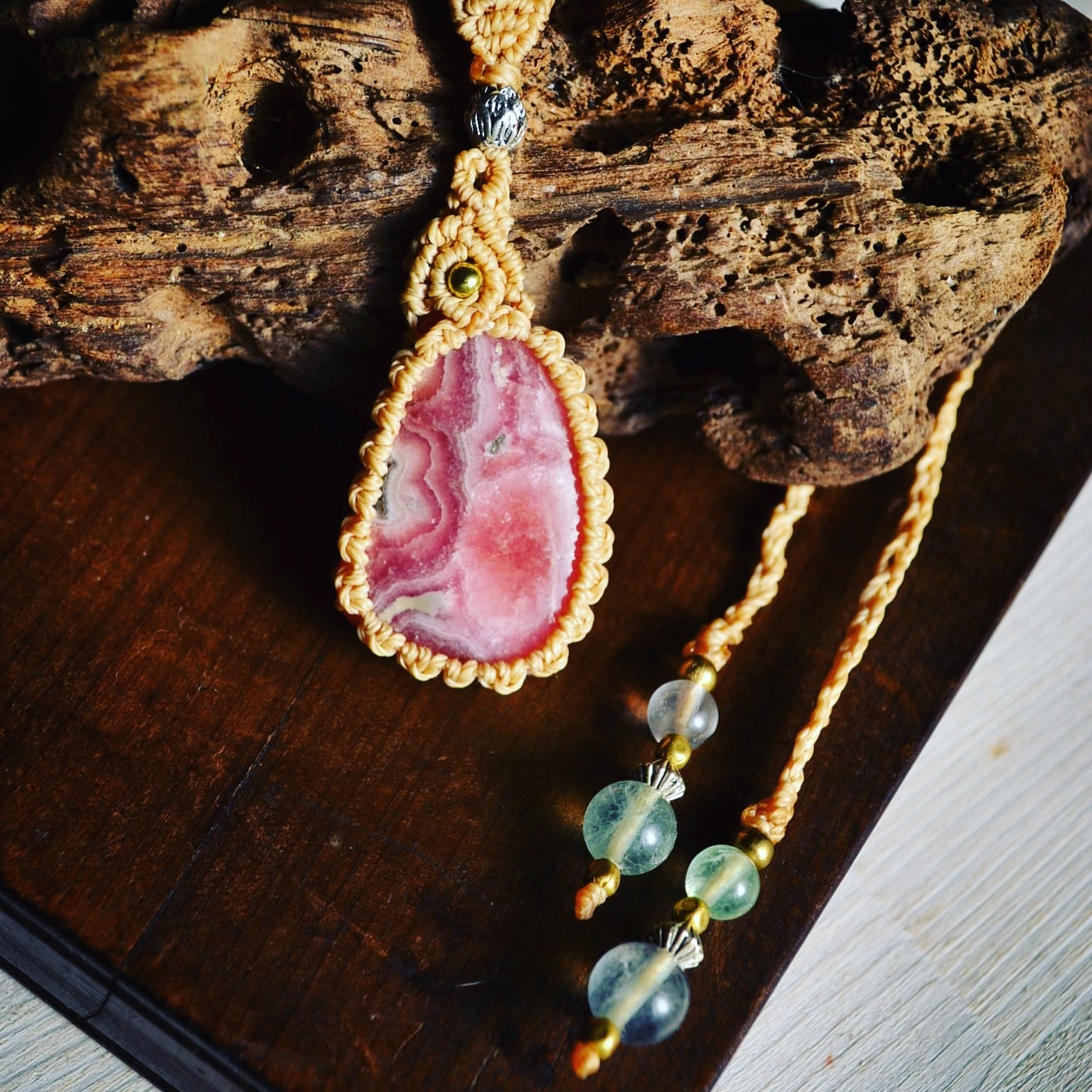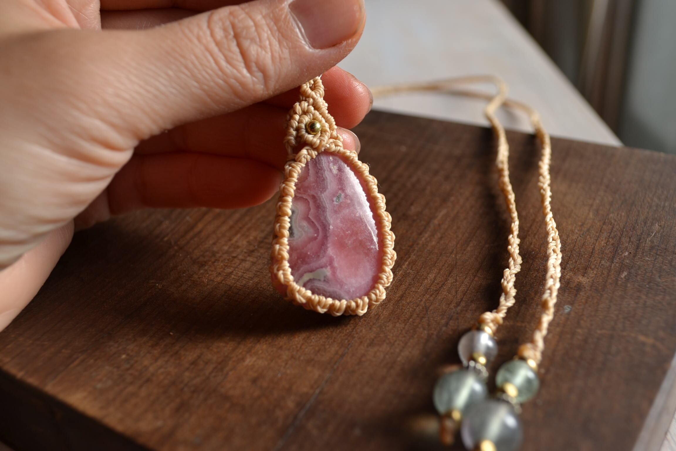 インカローズ( ロードクロサイト)マクラメペンダントネックレス