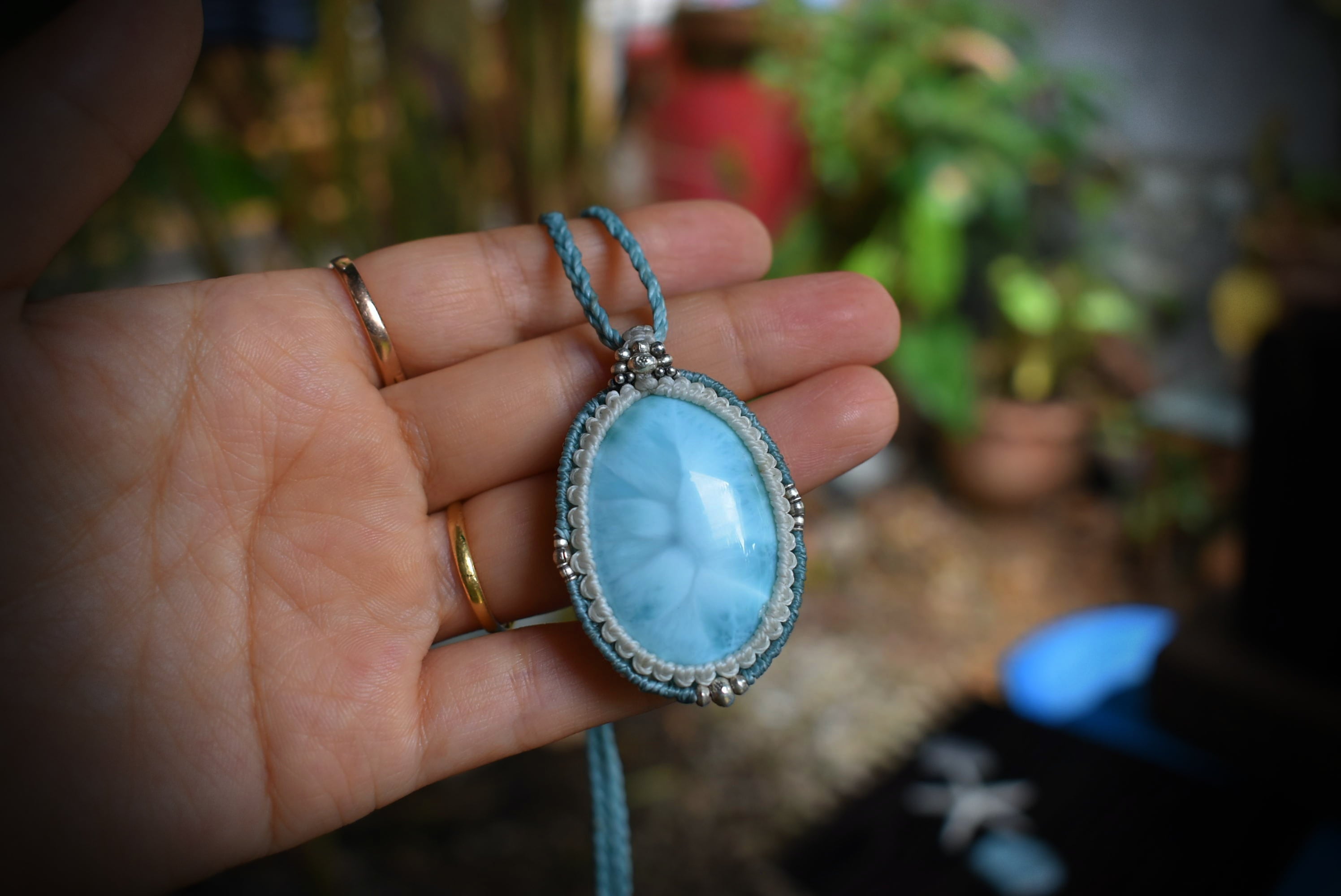 太陽のように美しいシャトヤンシーがルースの中心に花咲いているかのようにも見える高品質なこのたびのラリマー。シンプルにカレンシルバービーズを大小と装飾しながらペンダントに仕上げました。手作りのカレンシルバービーズの凹凸とシンプルで大粒ルースのコントラストを楽しんでいただけると嬉しいです。厚みもありますが、体にぴったりと装着して身につけていただけるサイズ感。