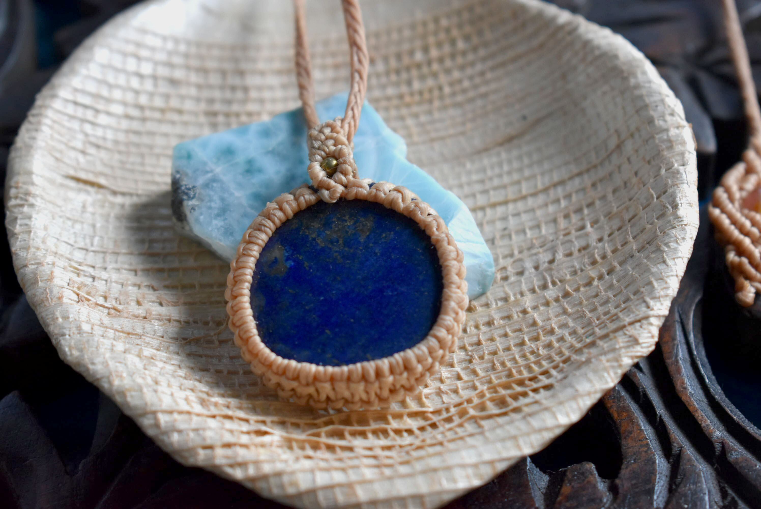 ラピスラズリタンブルをシンプルに巻き込んでペンダントに仕上げました。