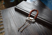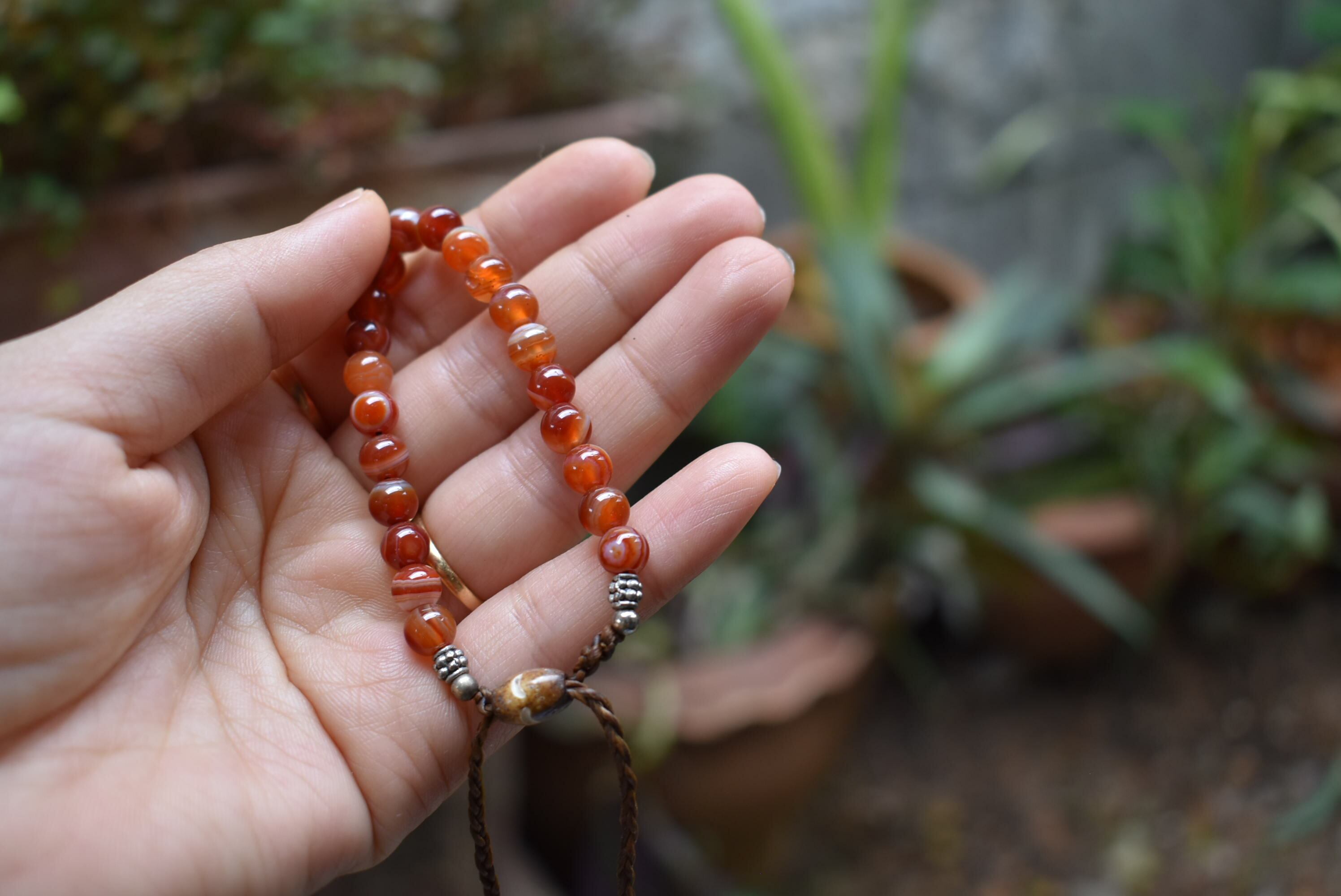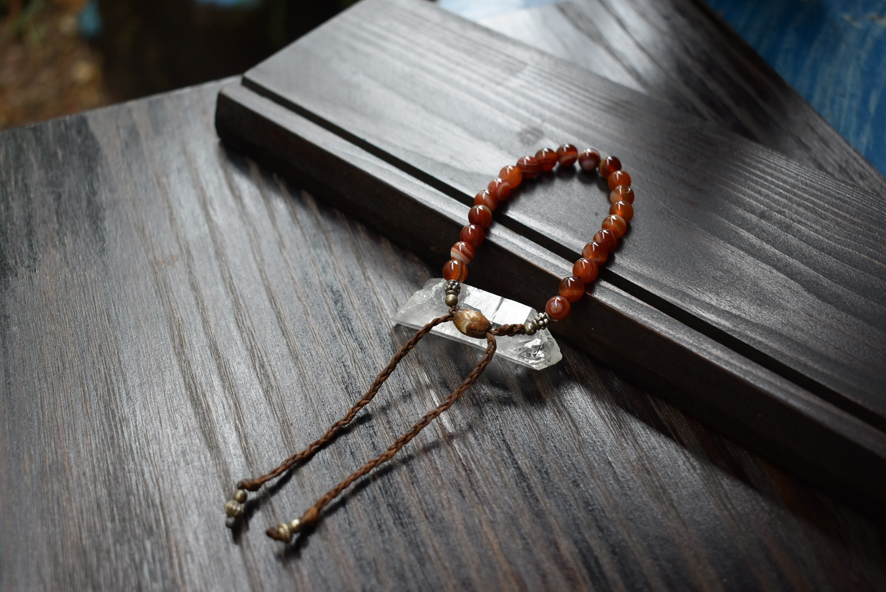 鮮やかな色味と模様が素晴らしいアゲートのひとつ。吸い込まれるような赤色はひと粒一粒しっかりと組んだピースを合わせたものです。