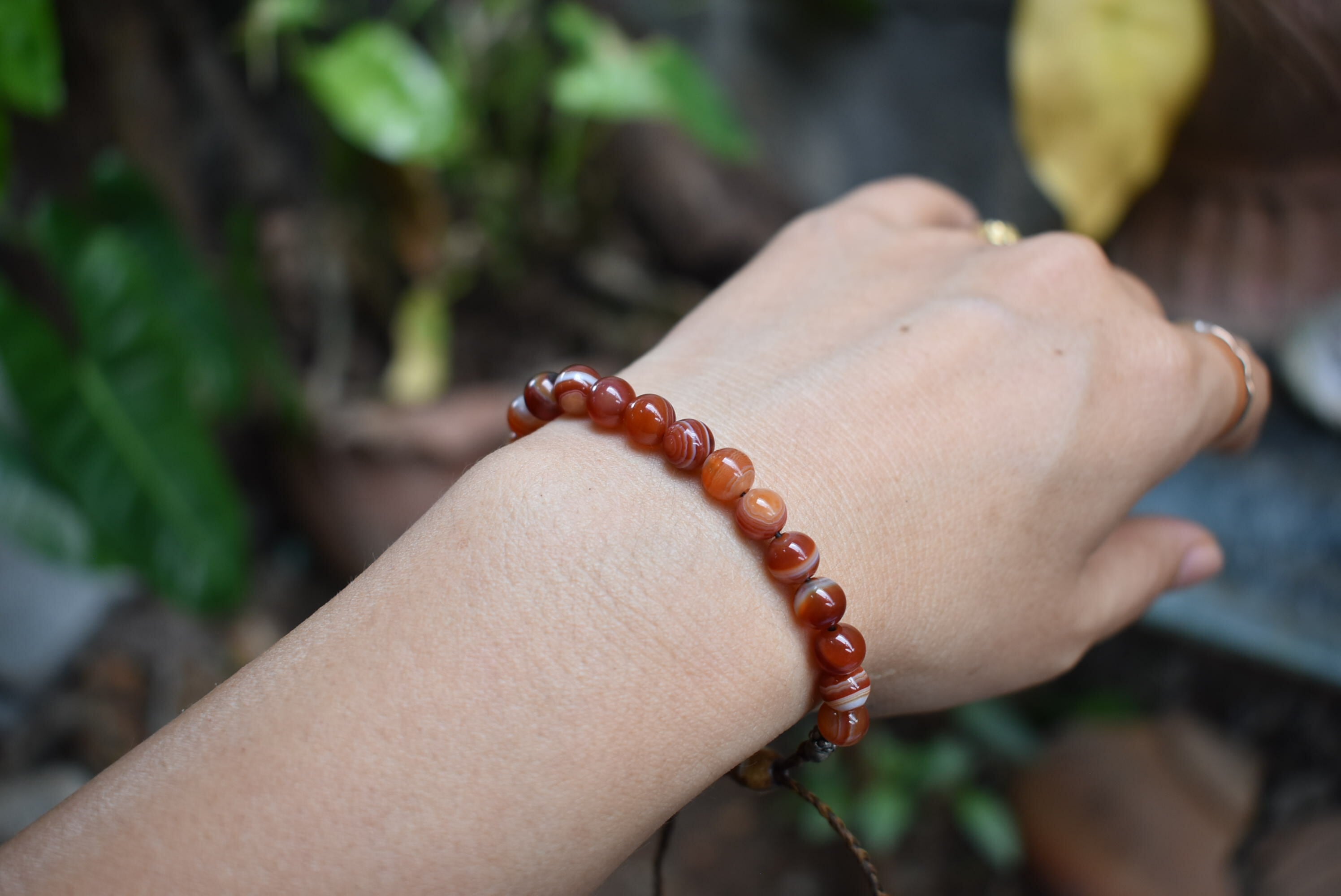 目の玉のようなボツワナアゲートビーズを使用してブレスレットに仕上げました。