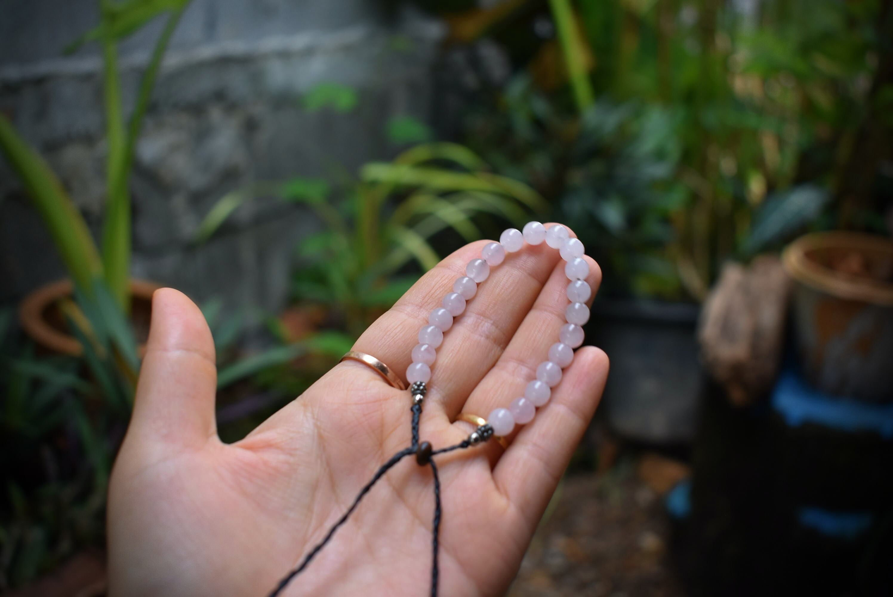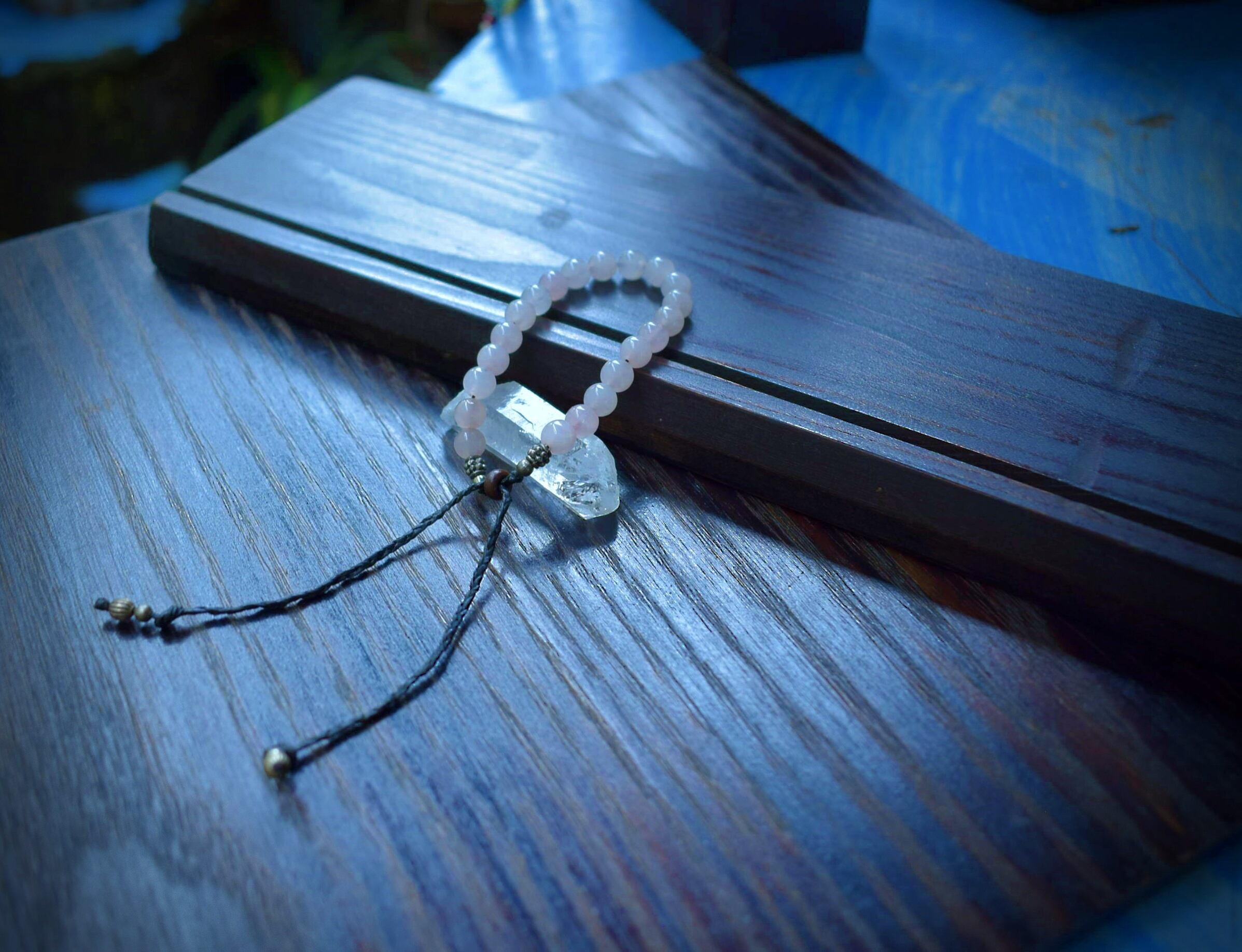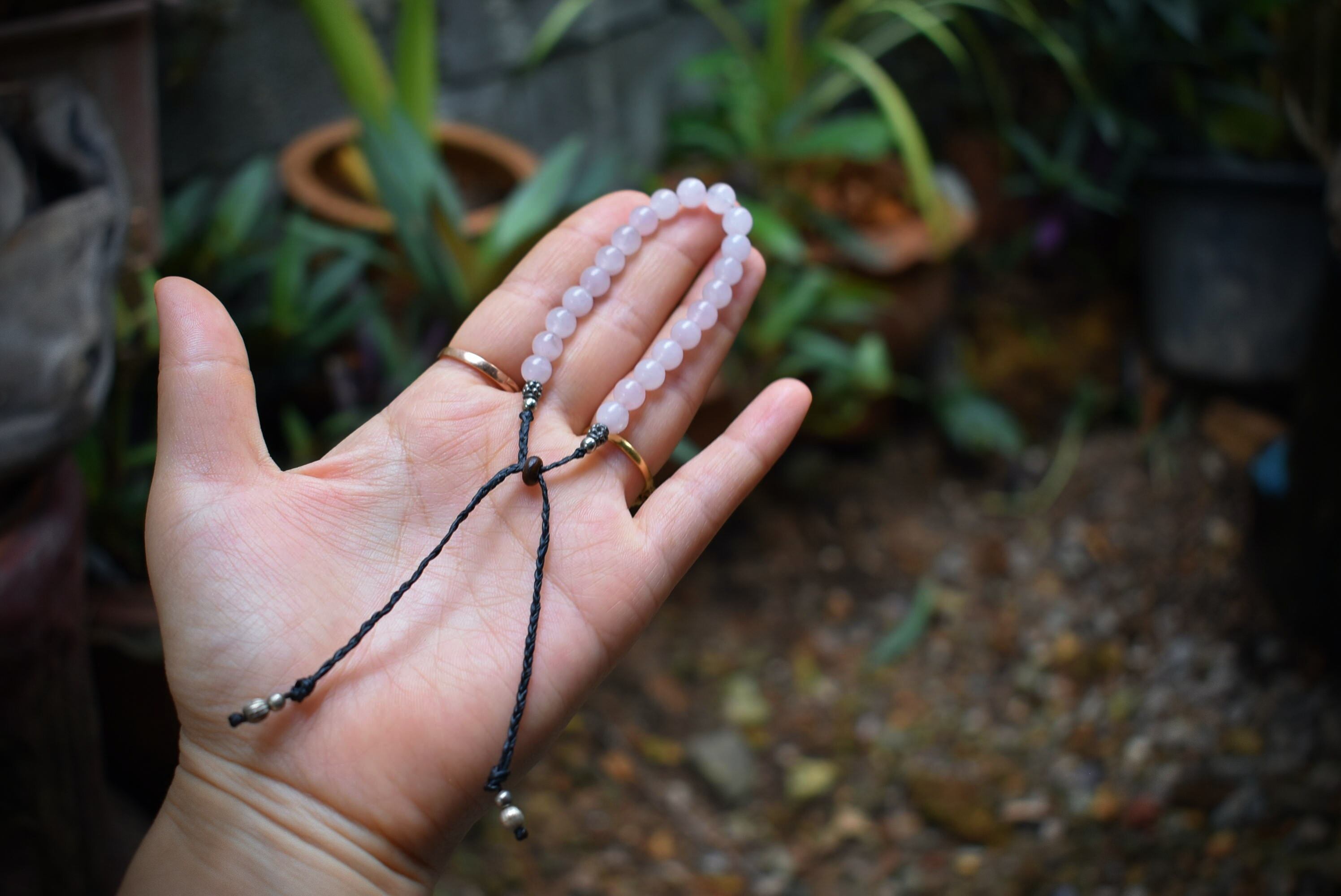 愛らしいピンク色の愛の石、ローズクォーツビーズを使用したビーズブレスレットを仕上げました。世界中の女性にいつも愛させれる天然石ビーズのひとつ。