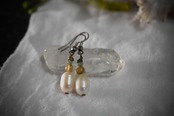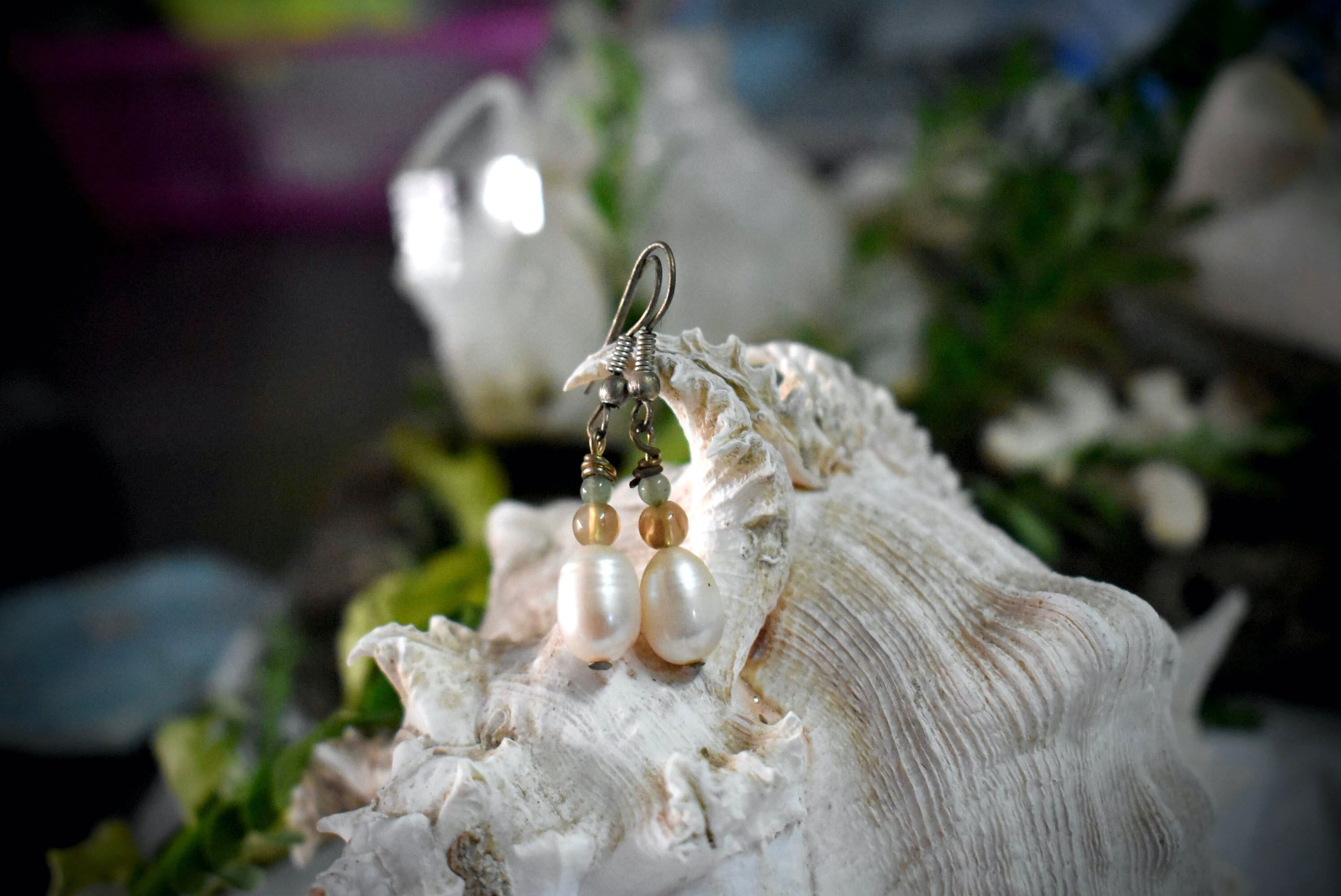 パールとグリーンアベンチュリン、そしてホワイト瑠璃を合わせたピアス。