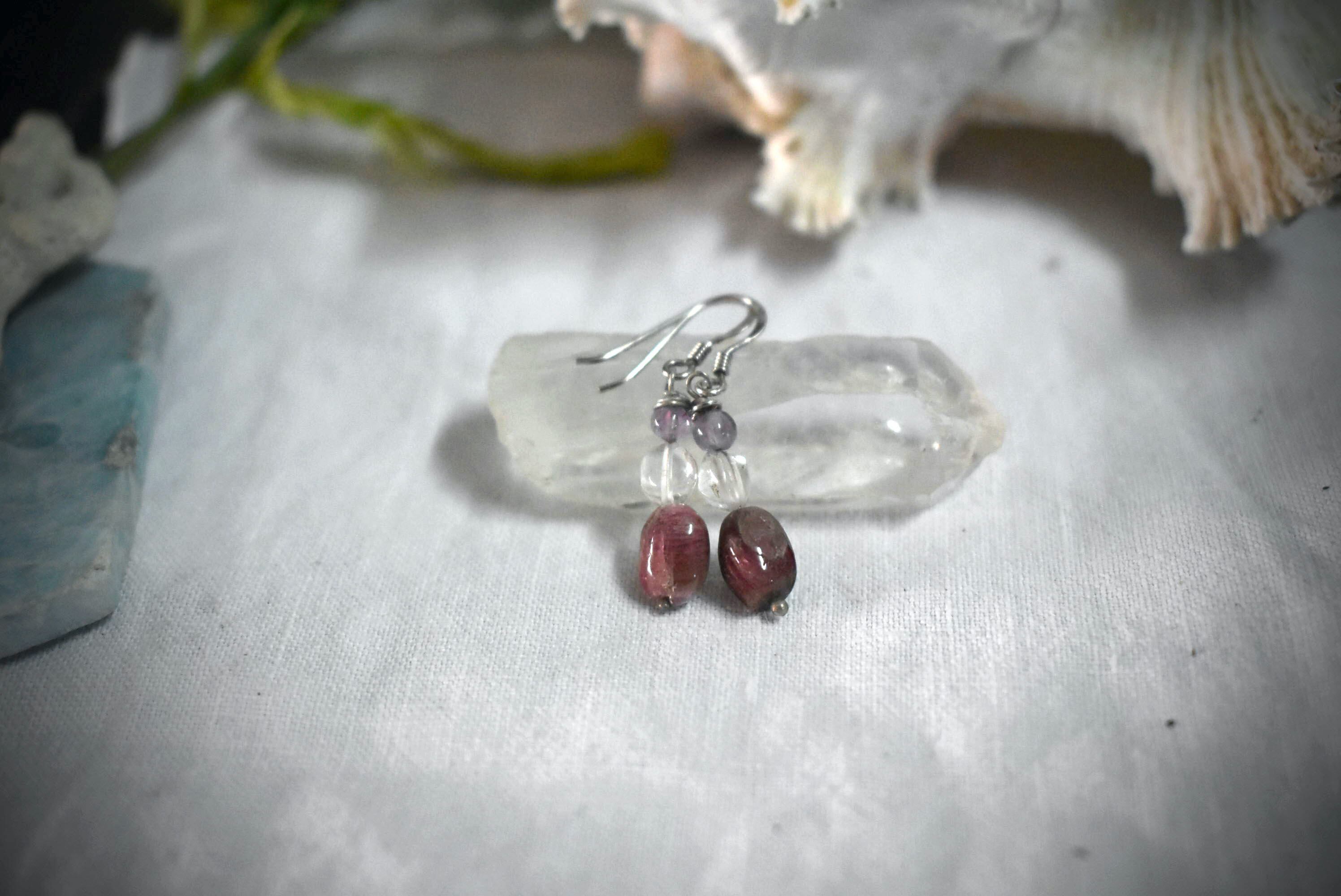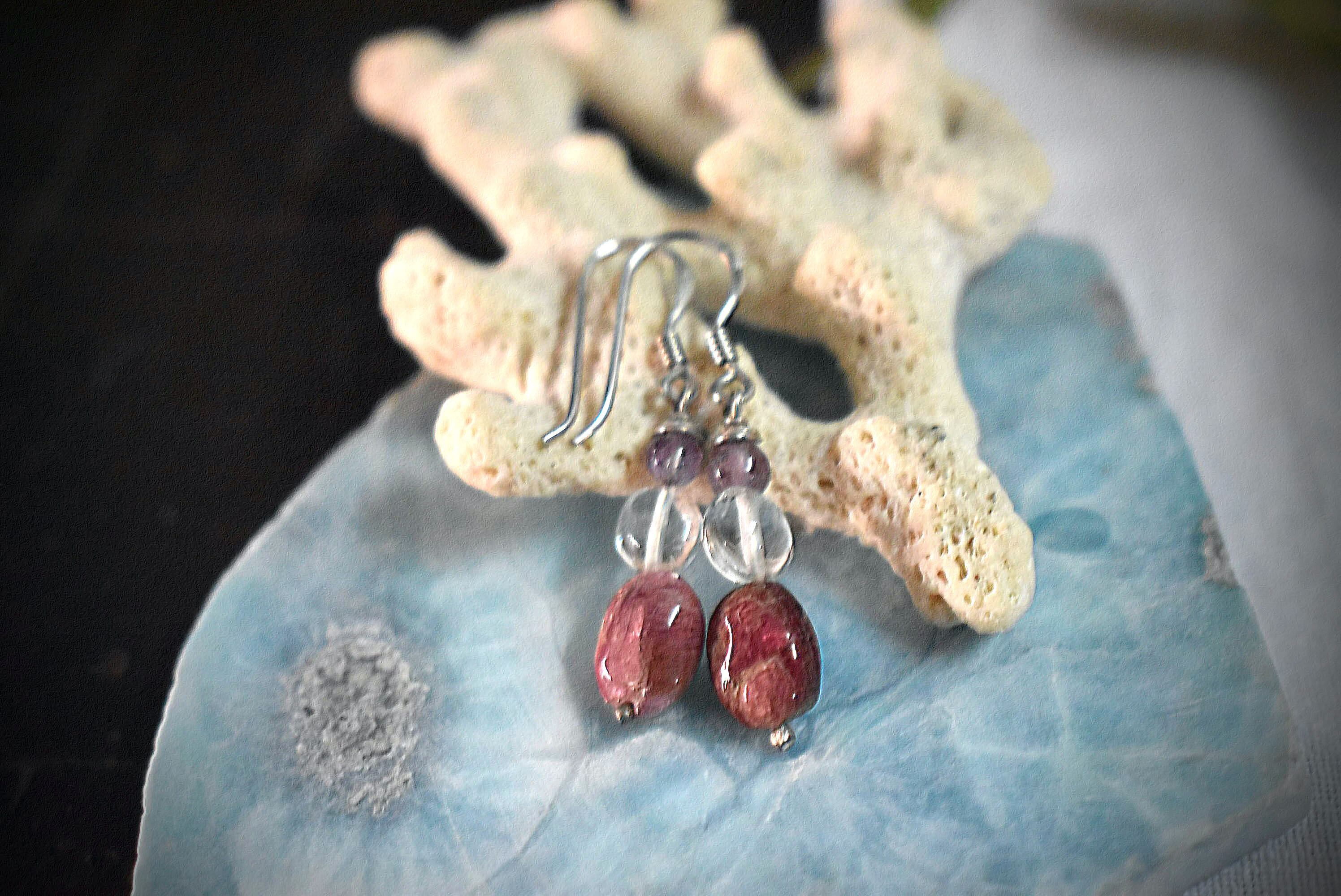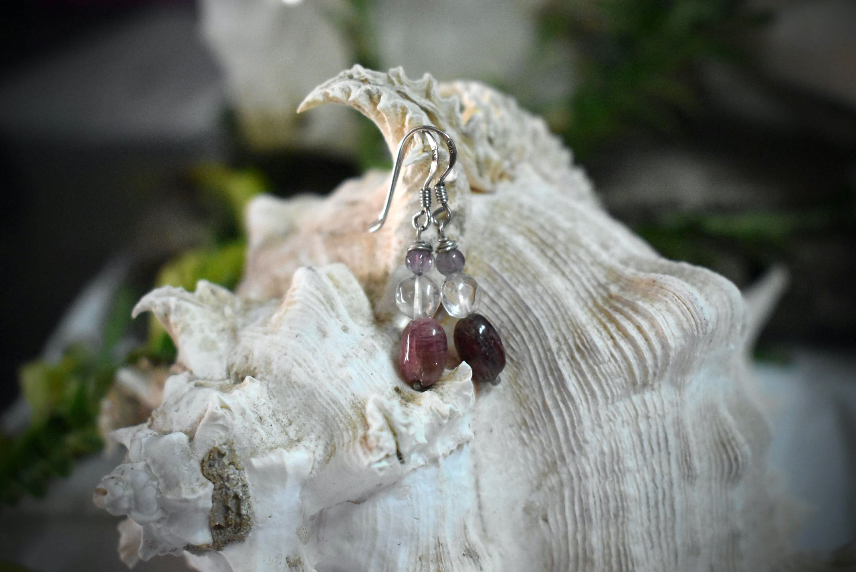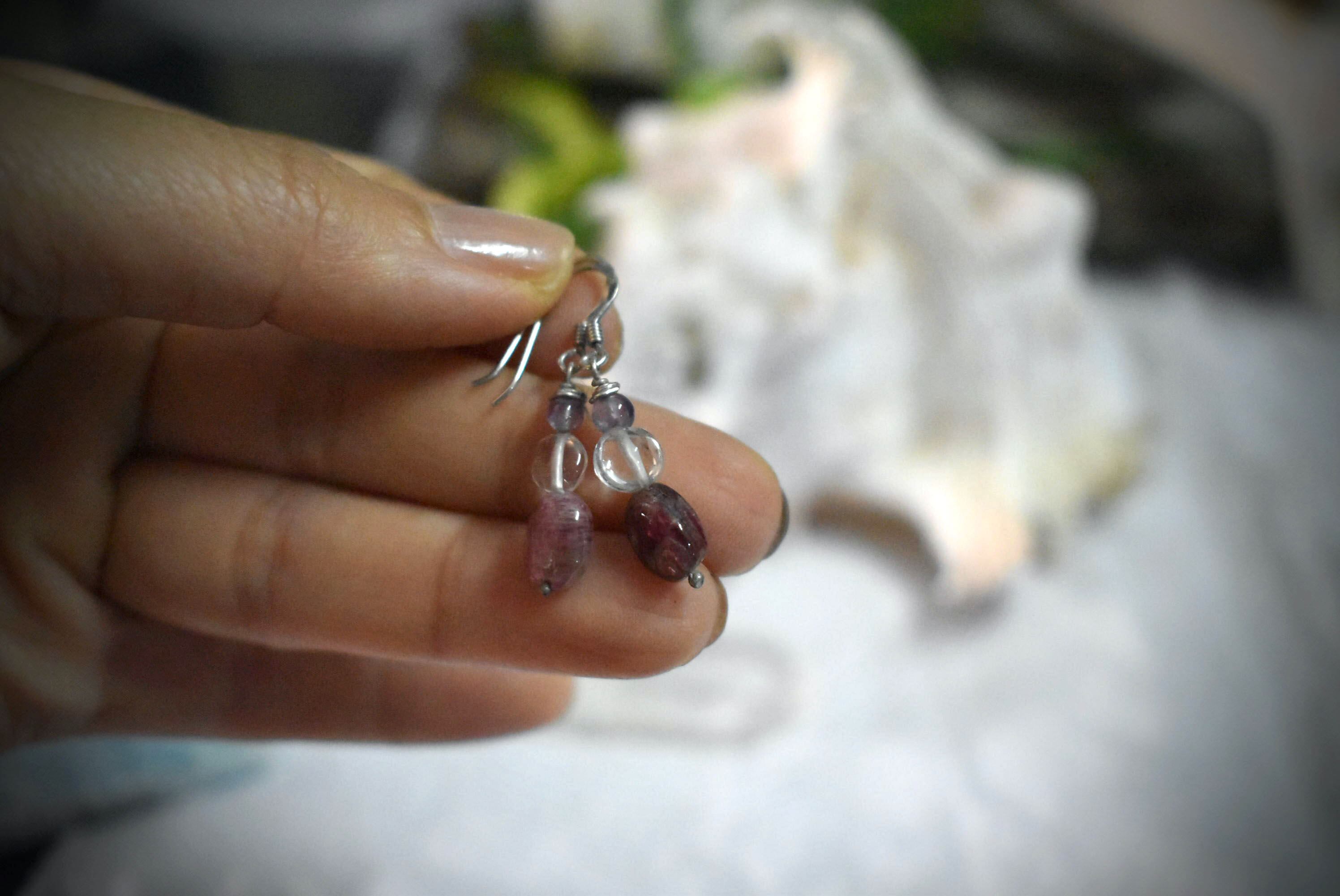 ピンクトルマリンと水晶 sv92.5ピアスpia033