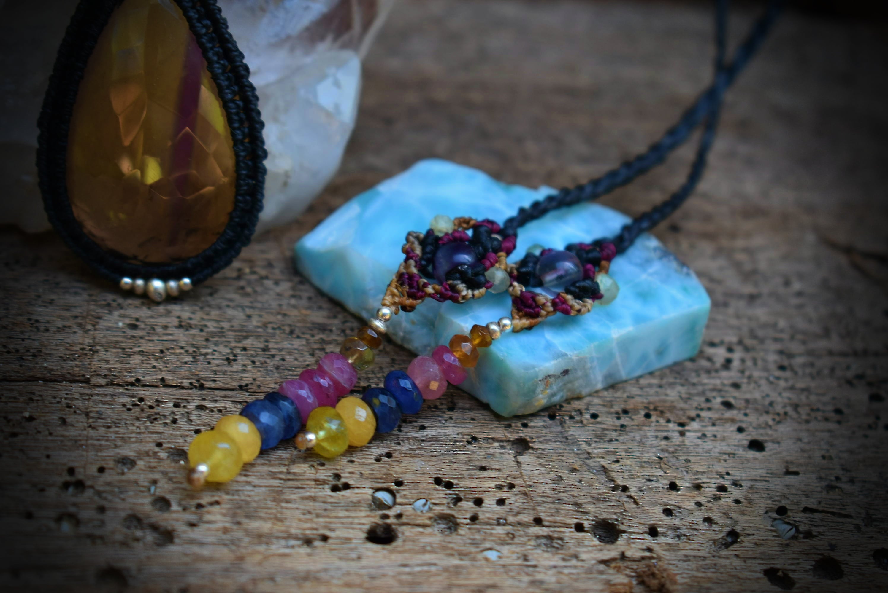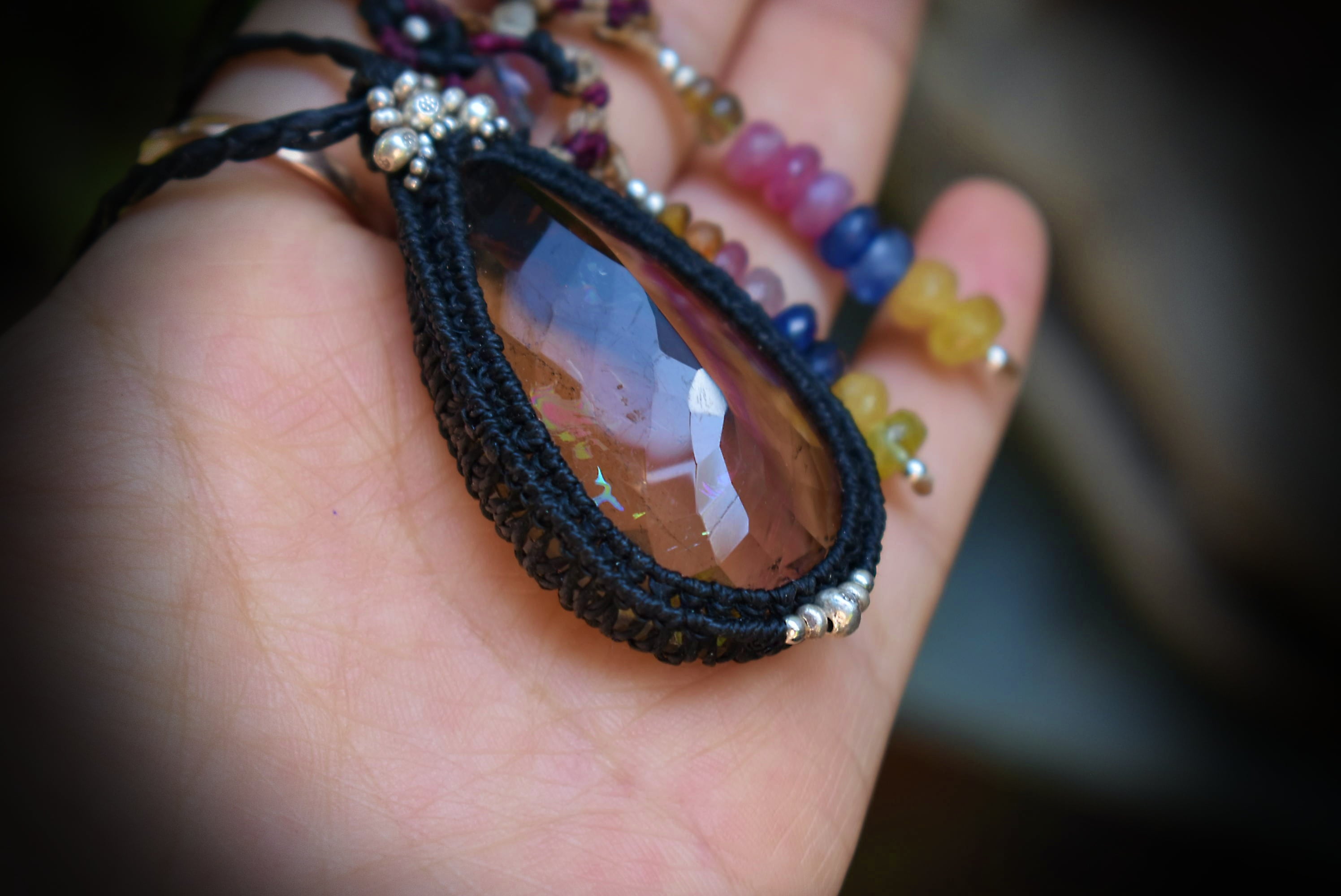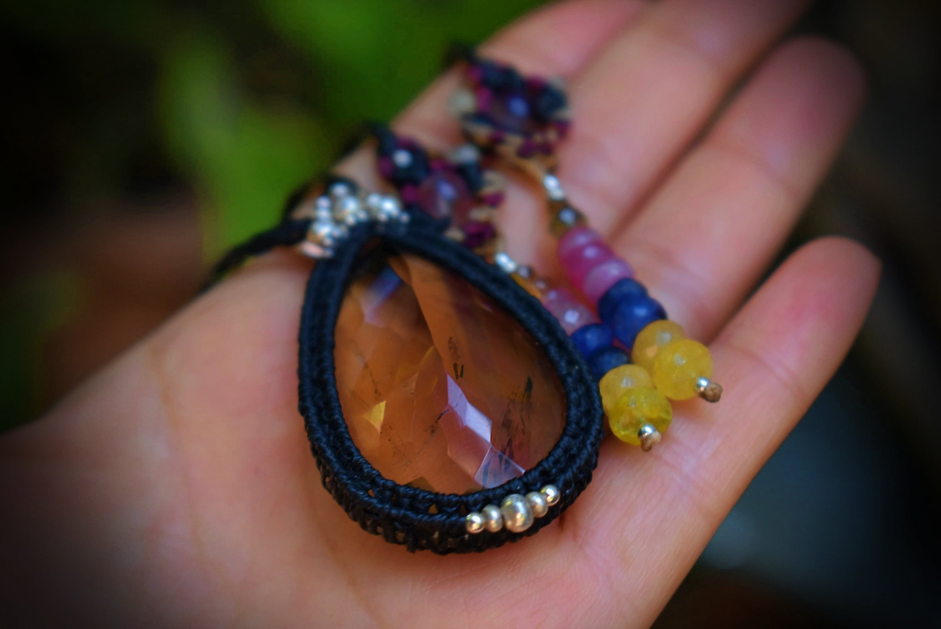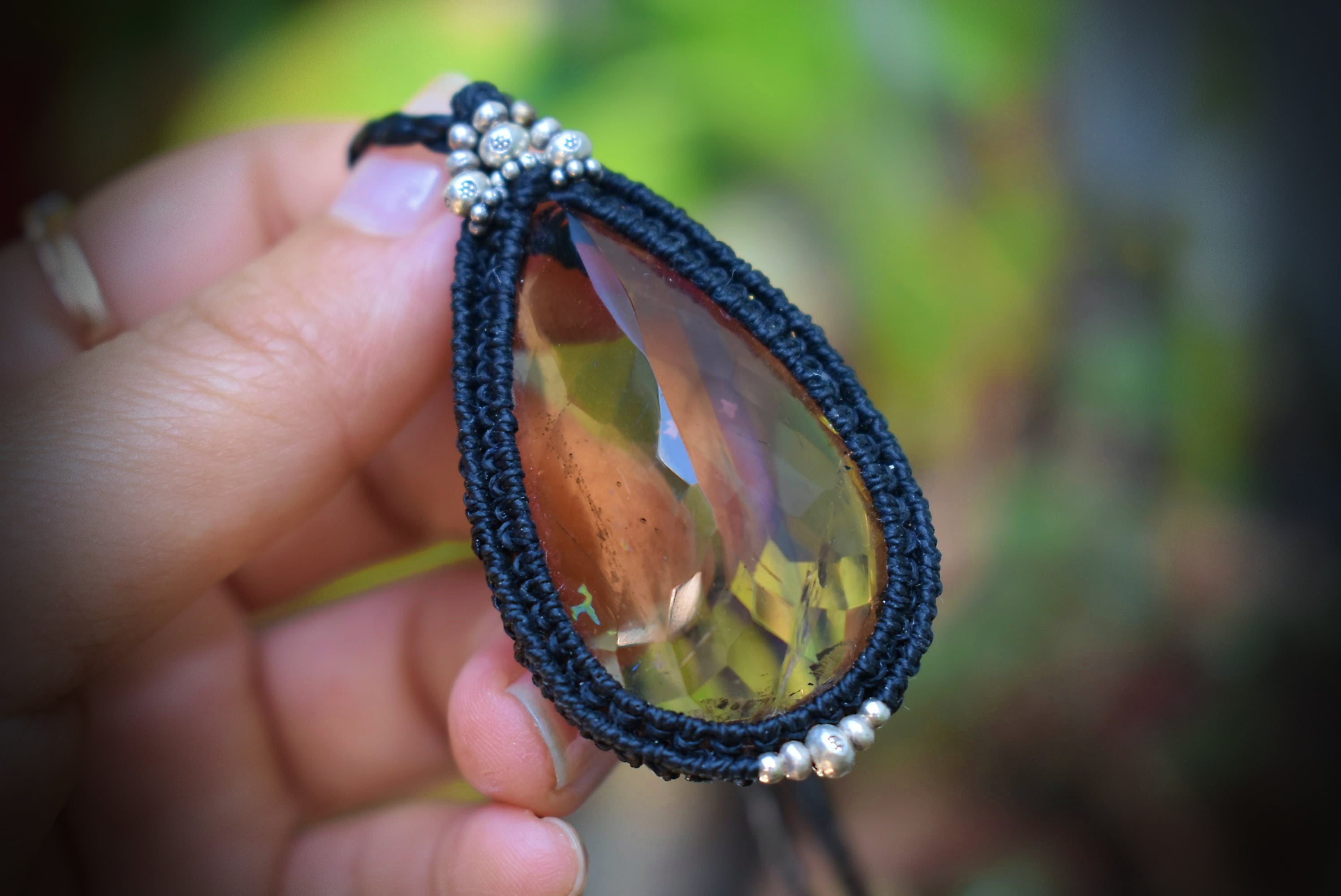 大粒★虹ブリリアンカット★レインボーアメトリン(シトリン)マクラメペンダントamem001