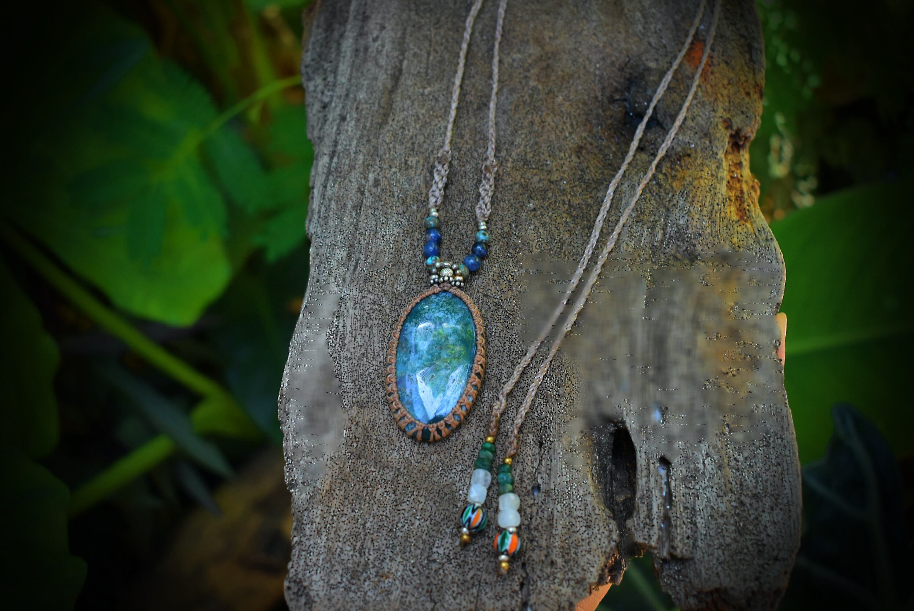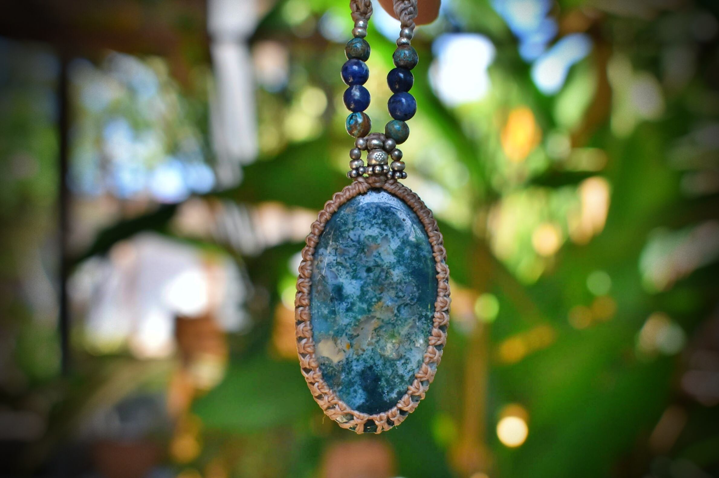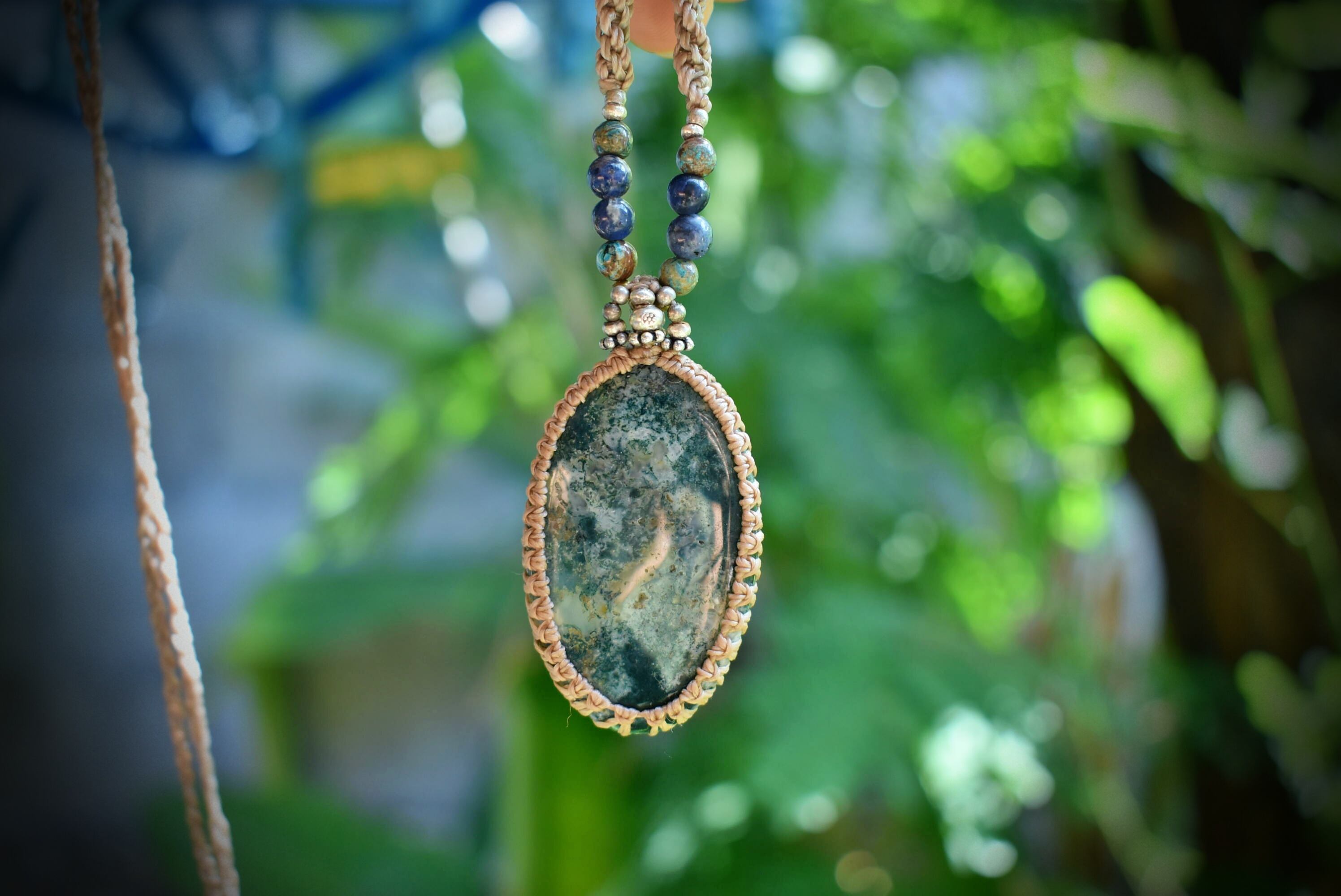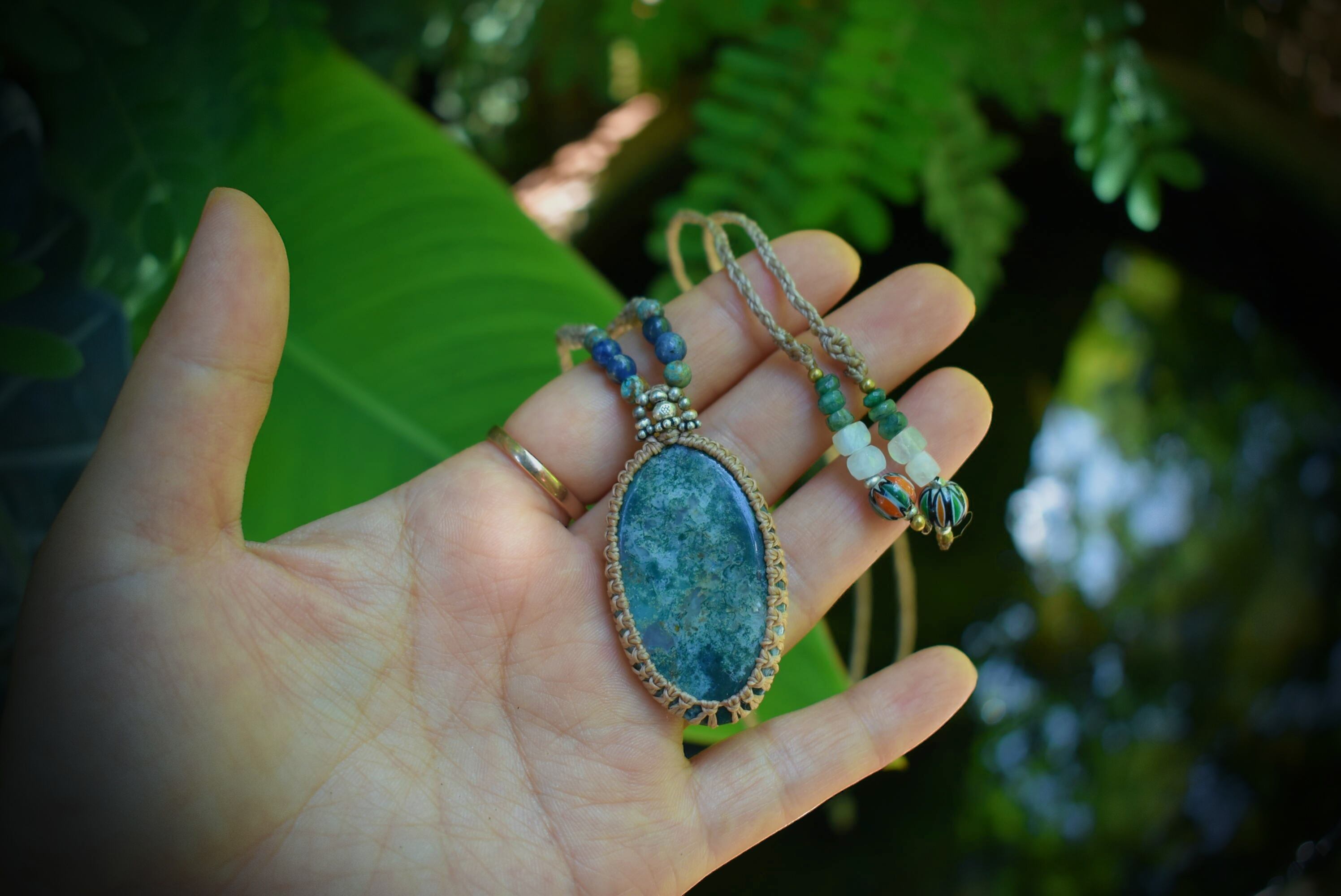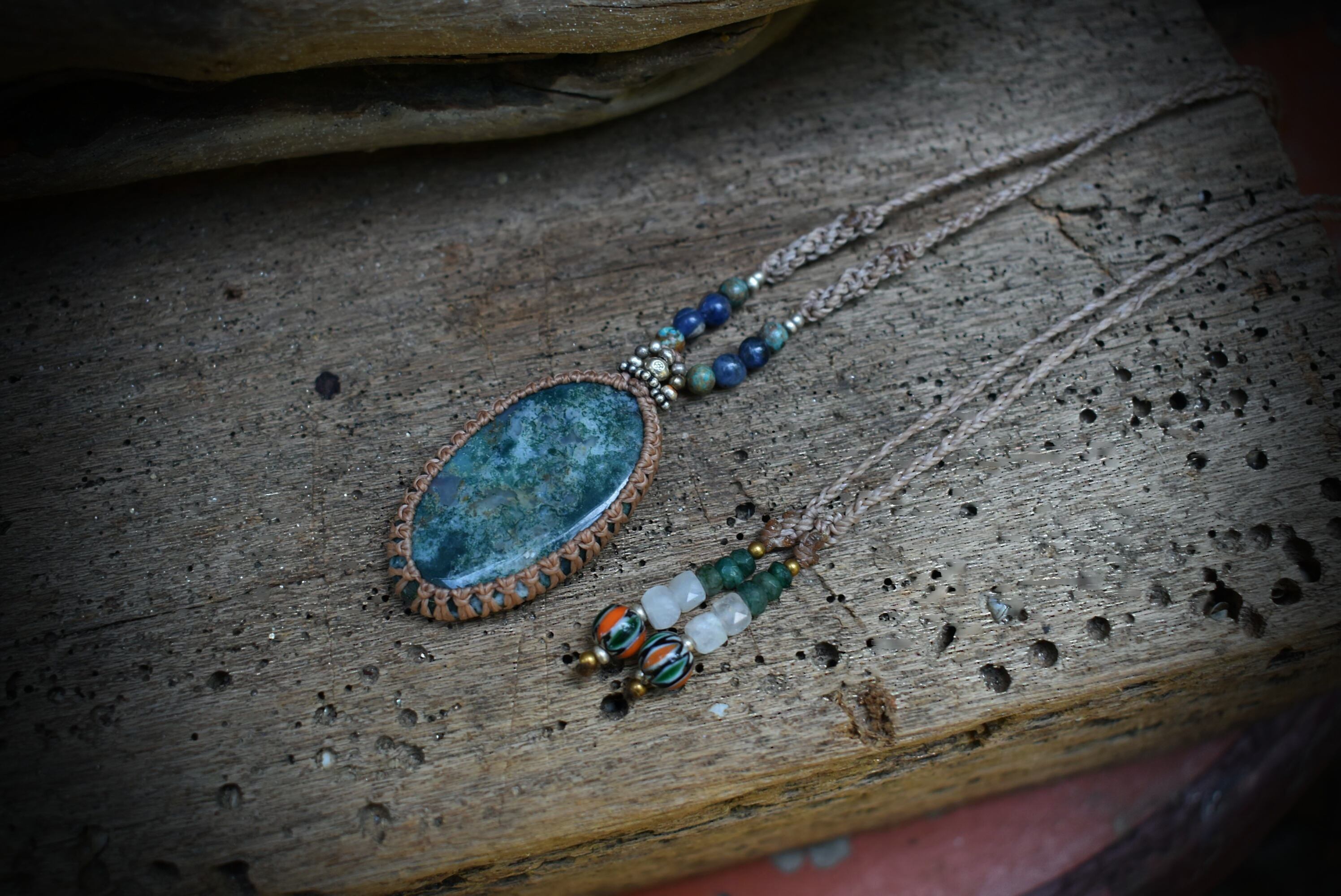 緑の主張と透明感★モスアゲートマクラメペンダントmoss001