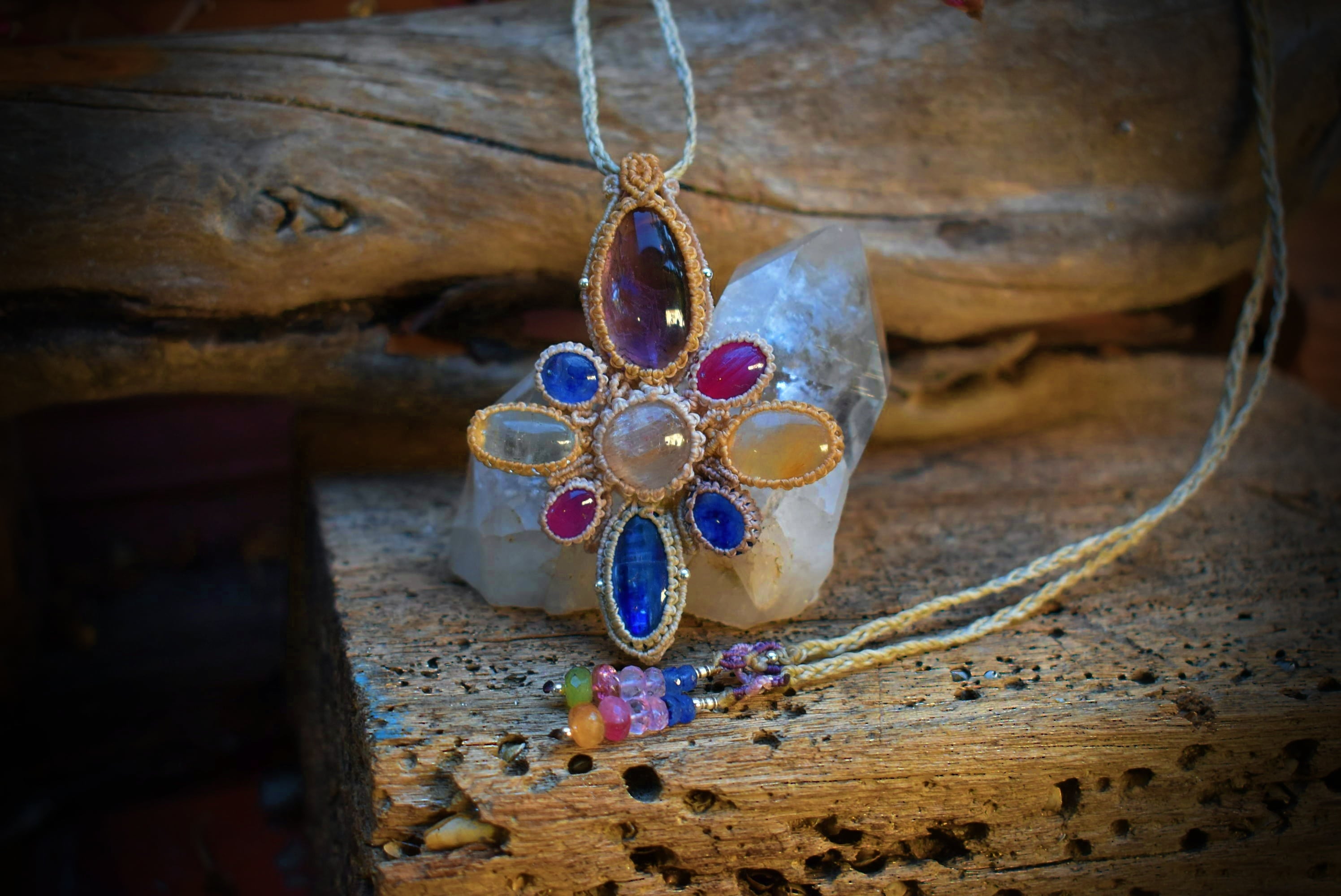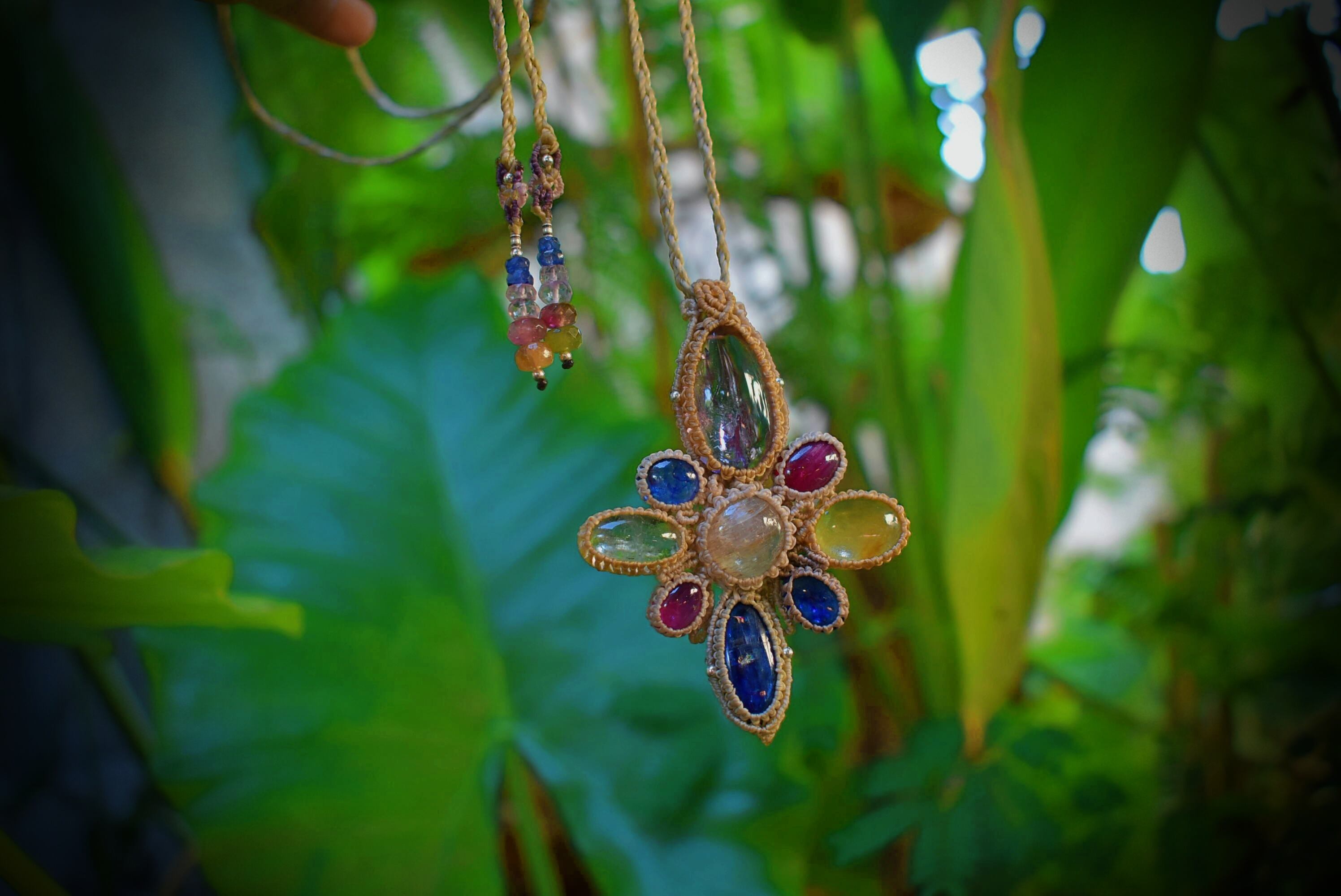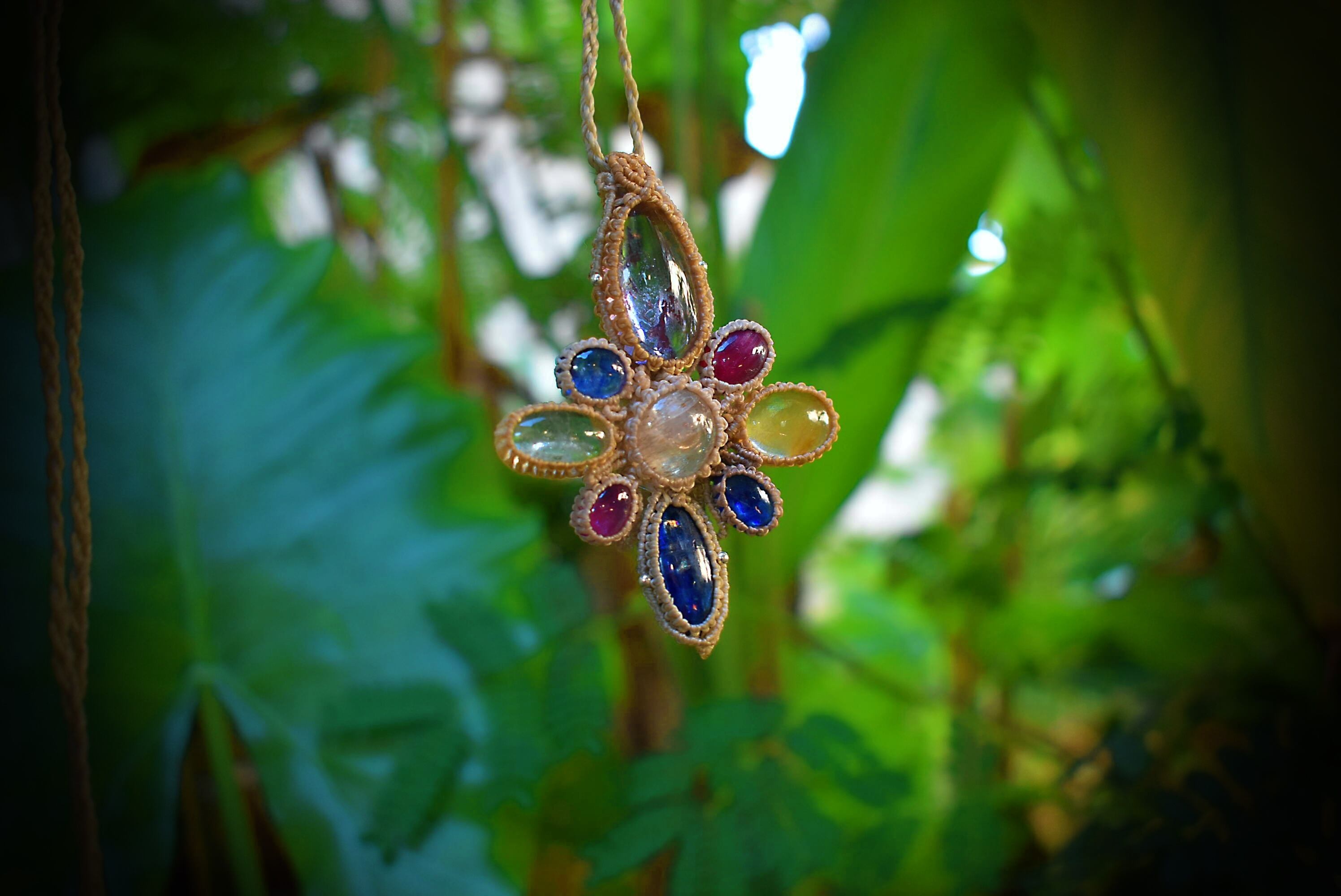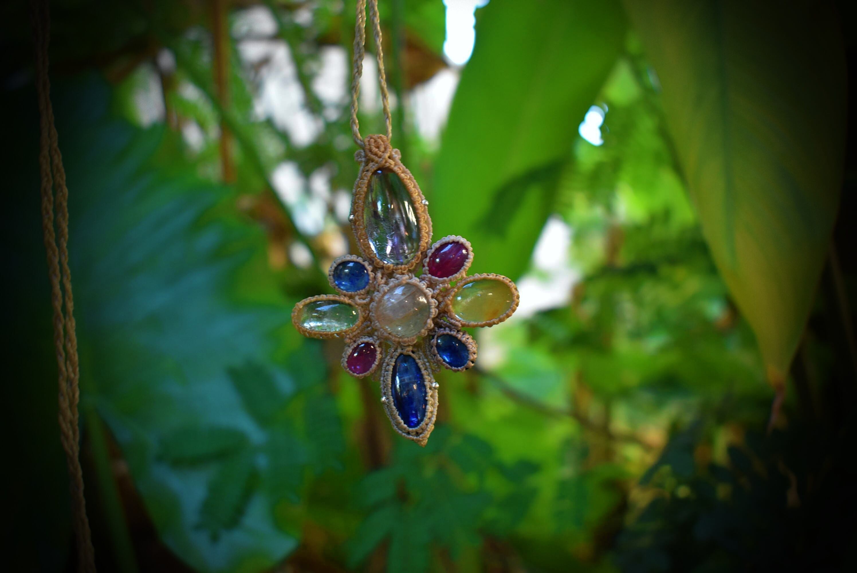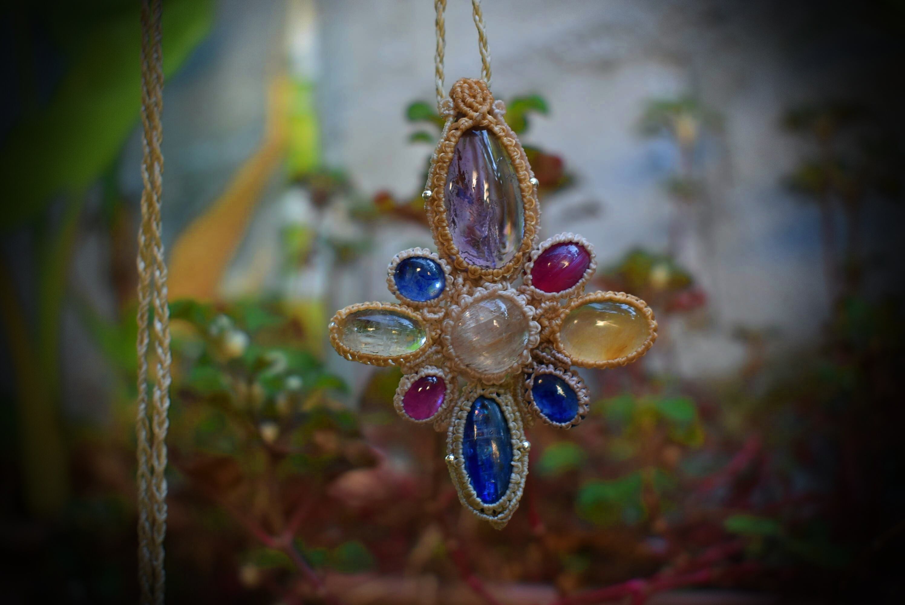 花咲く風★ルビー+アメトリン+カイヤナイト+サファイア マクラメペンダントflom002
