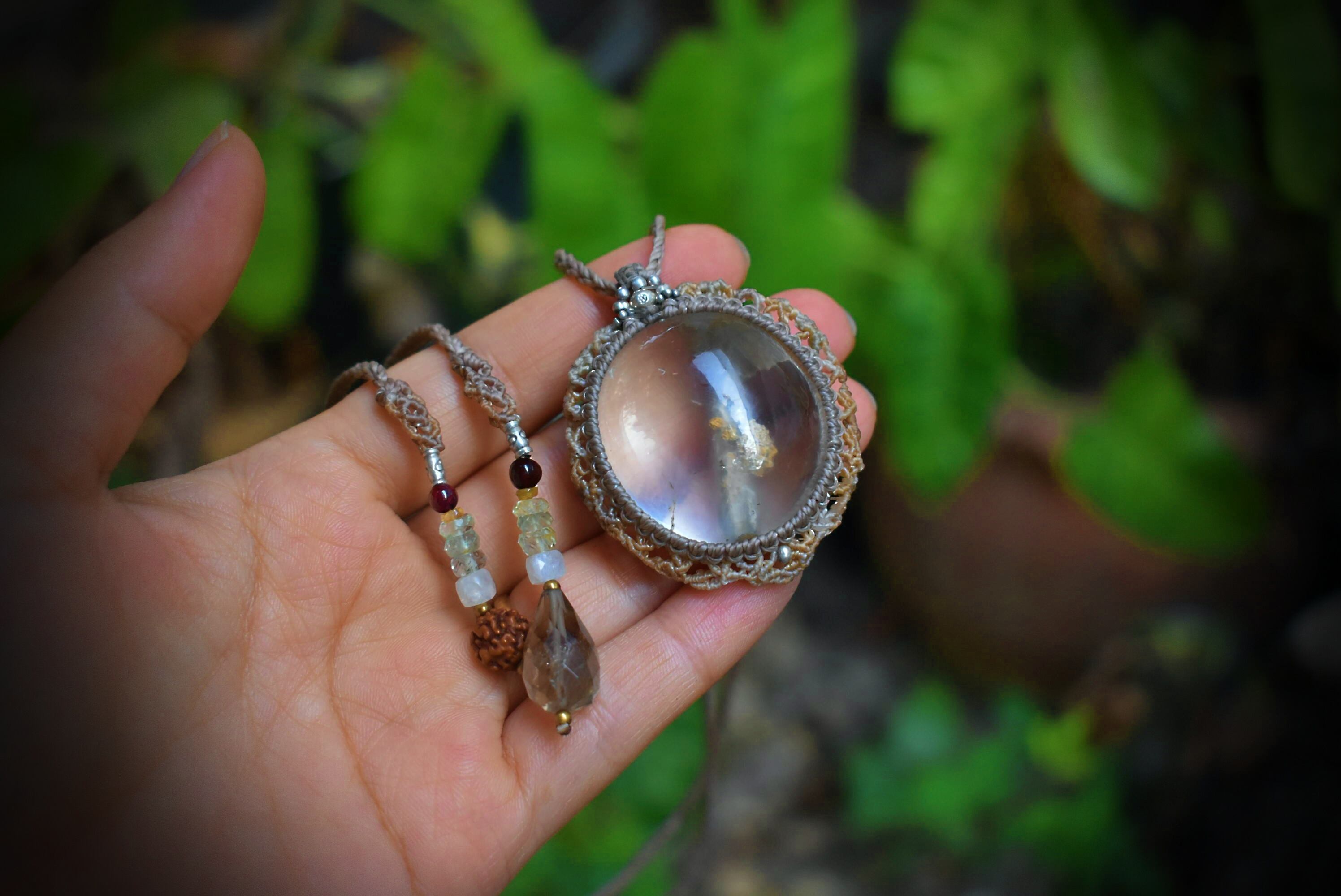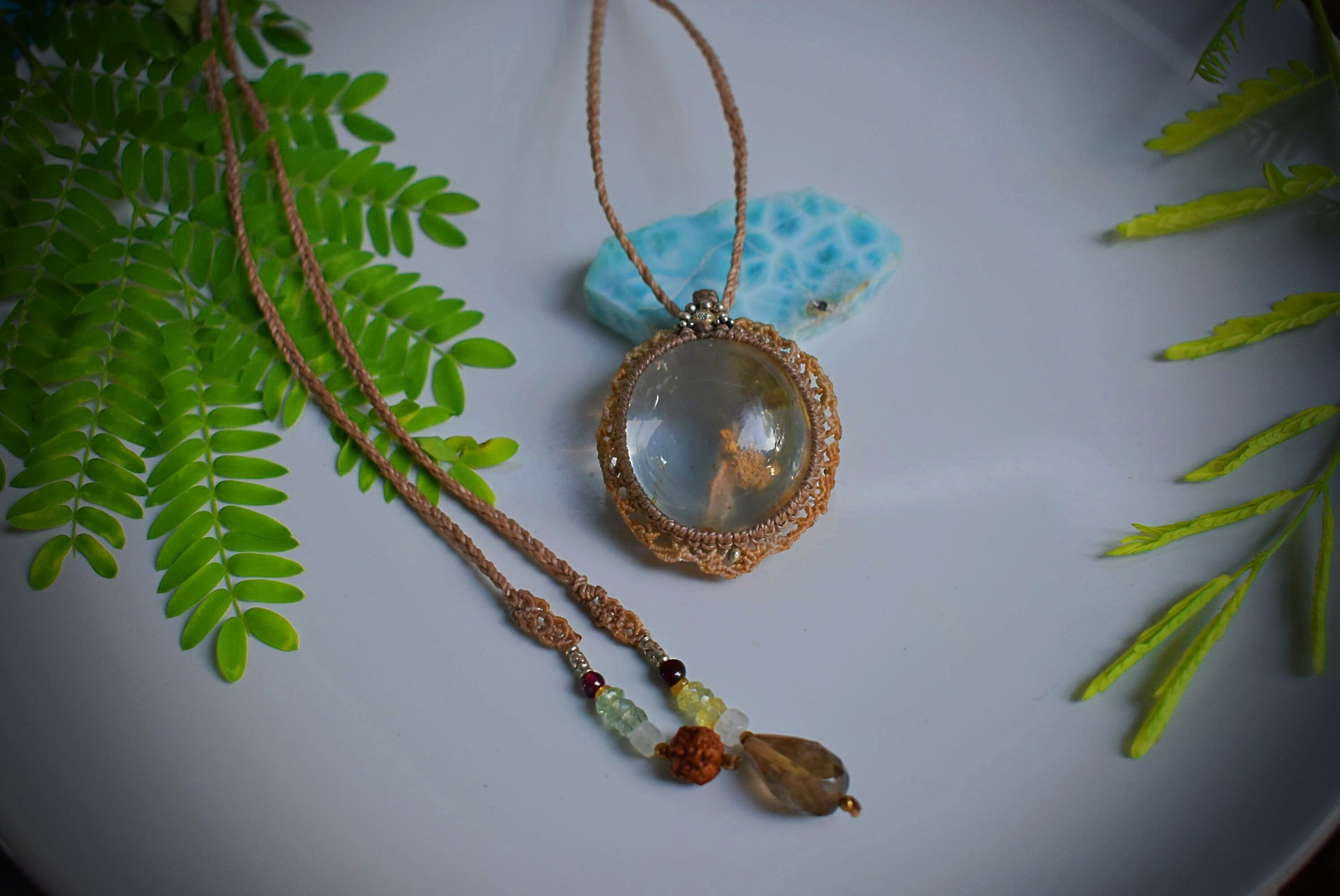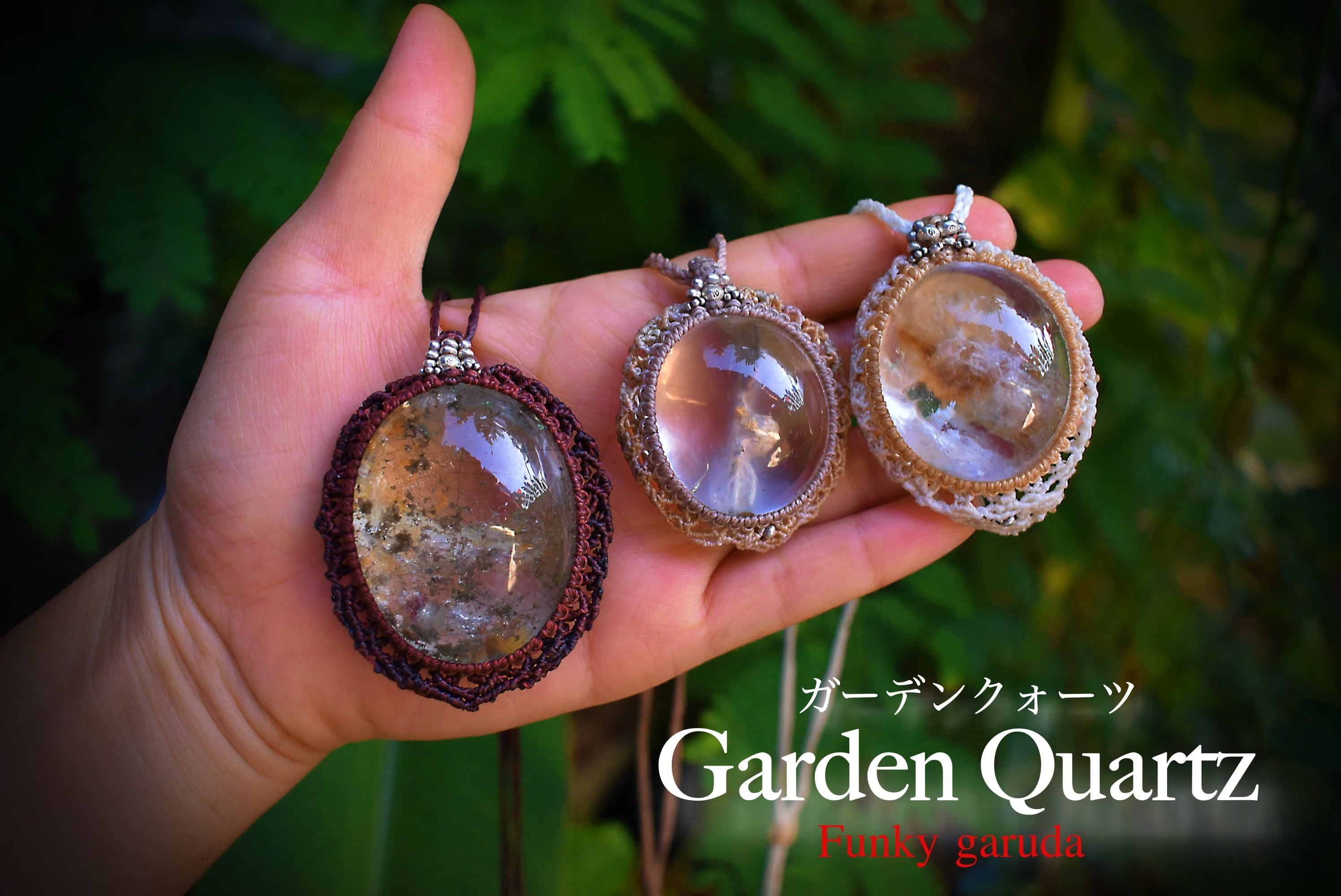 天然内包物★大粒★ガーデンクォーツ マクラメペンダントgarm005