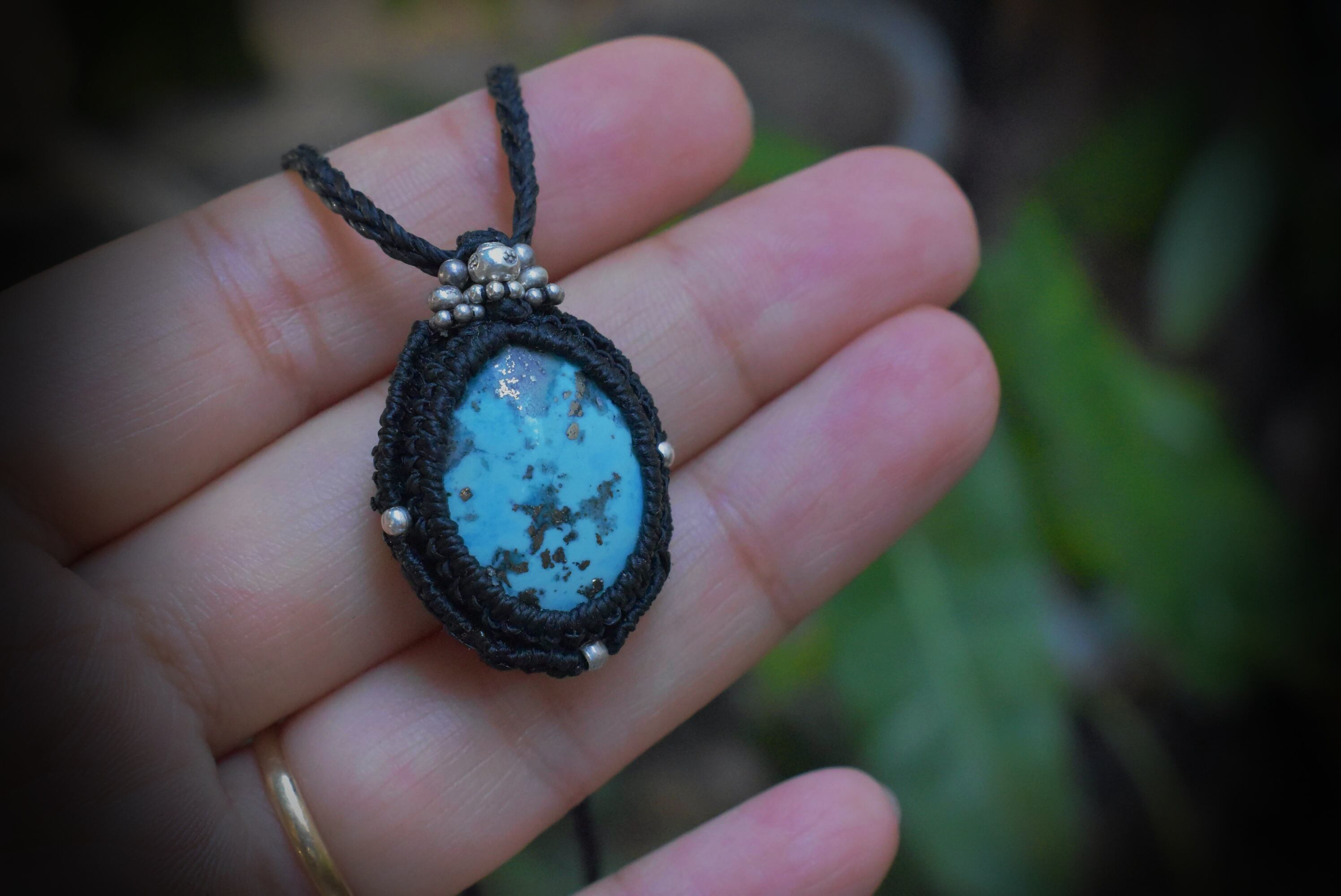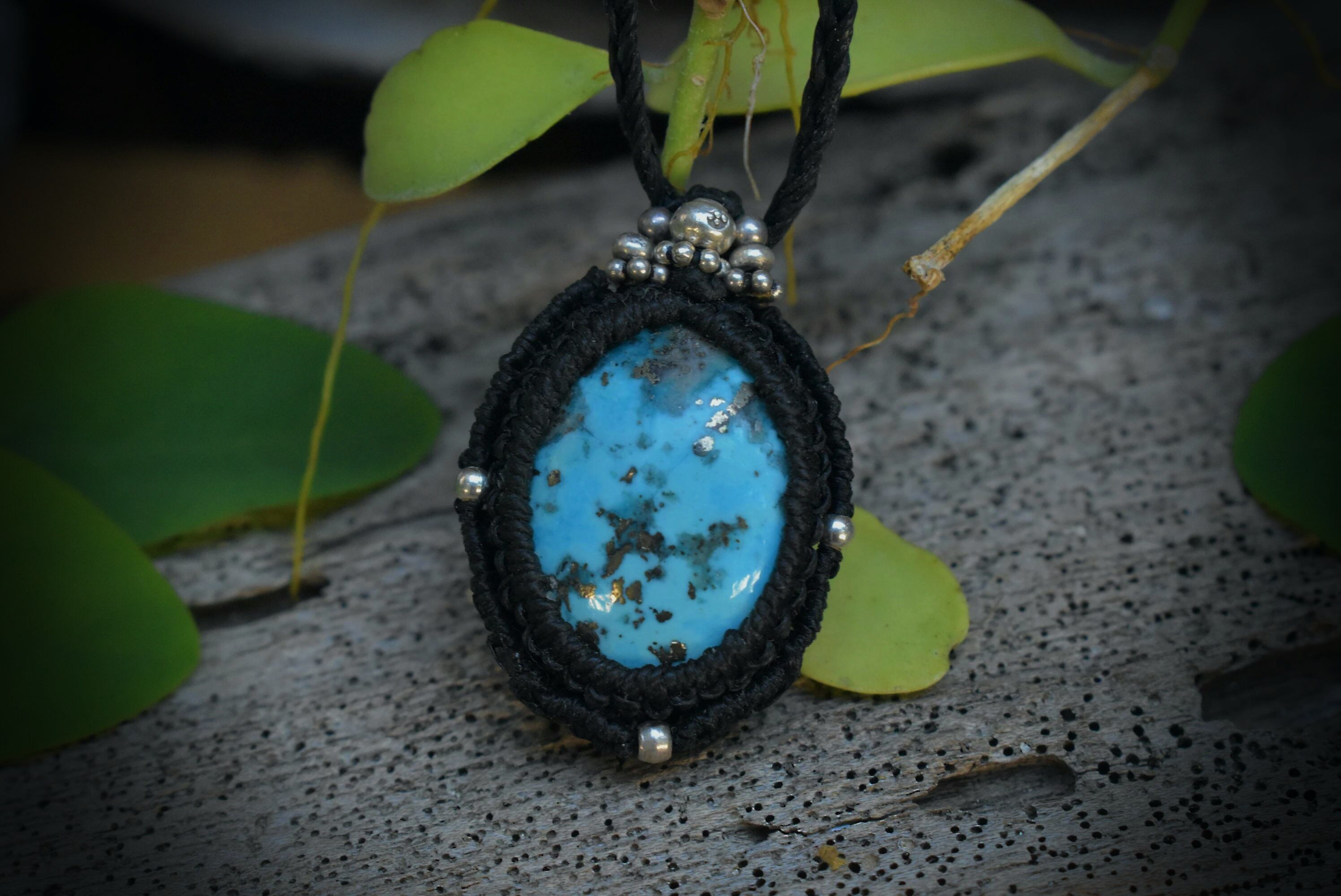 ペルシャ産ターコイズ シンプル マクラメペンダントturm001