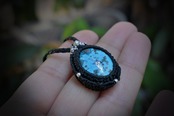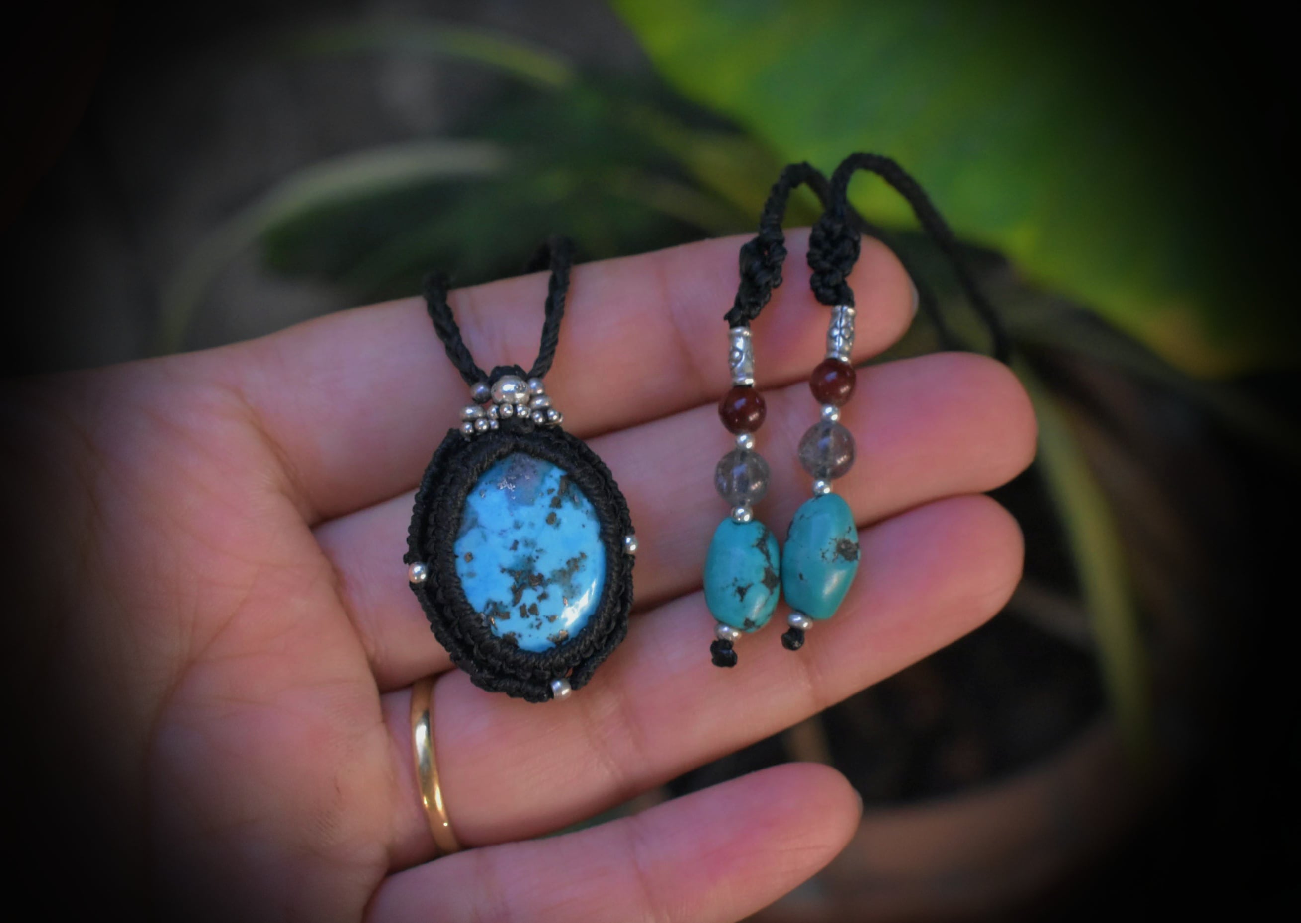 このターコイズにマクラメ編み装飾を施し、カレンシルバー92.5パーツをあしらいました。