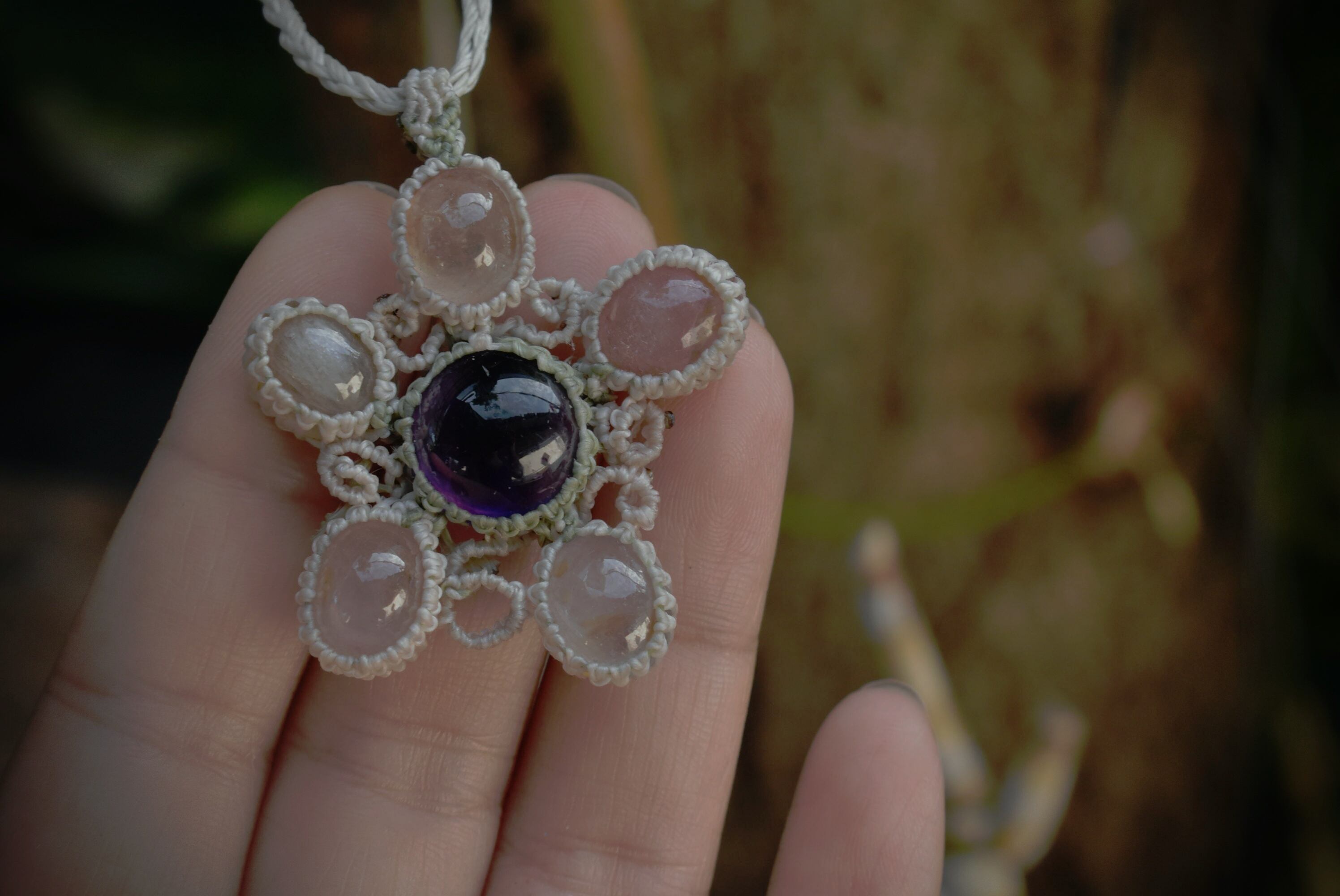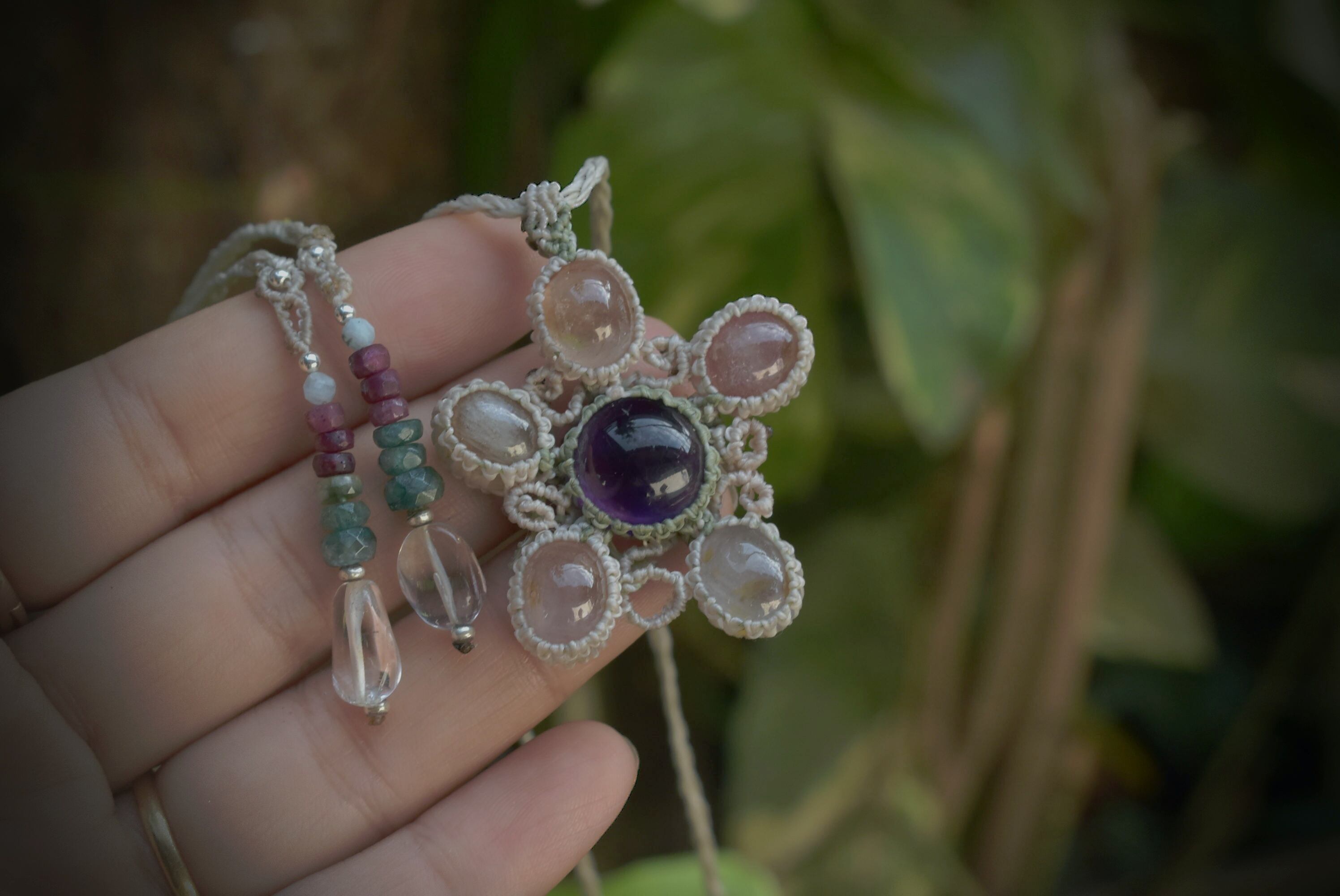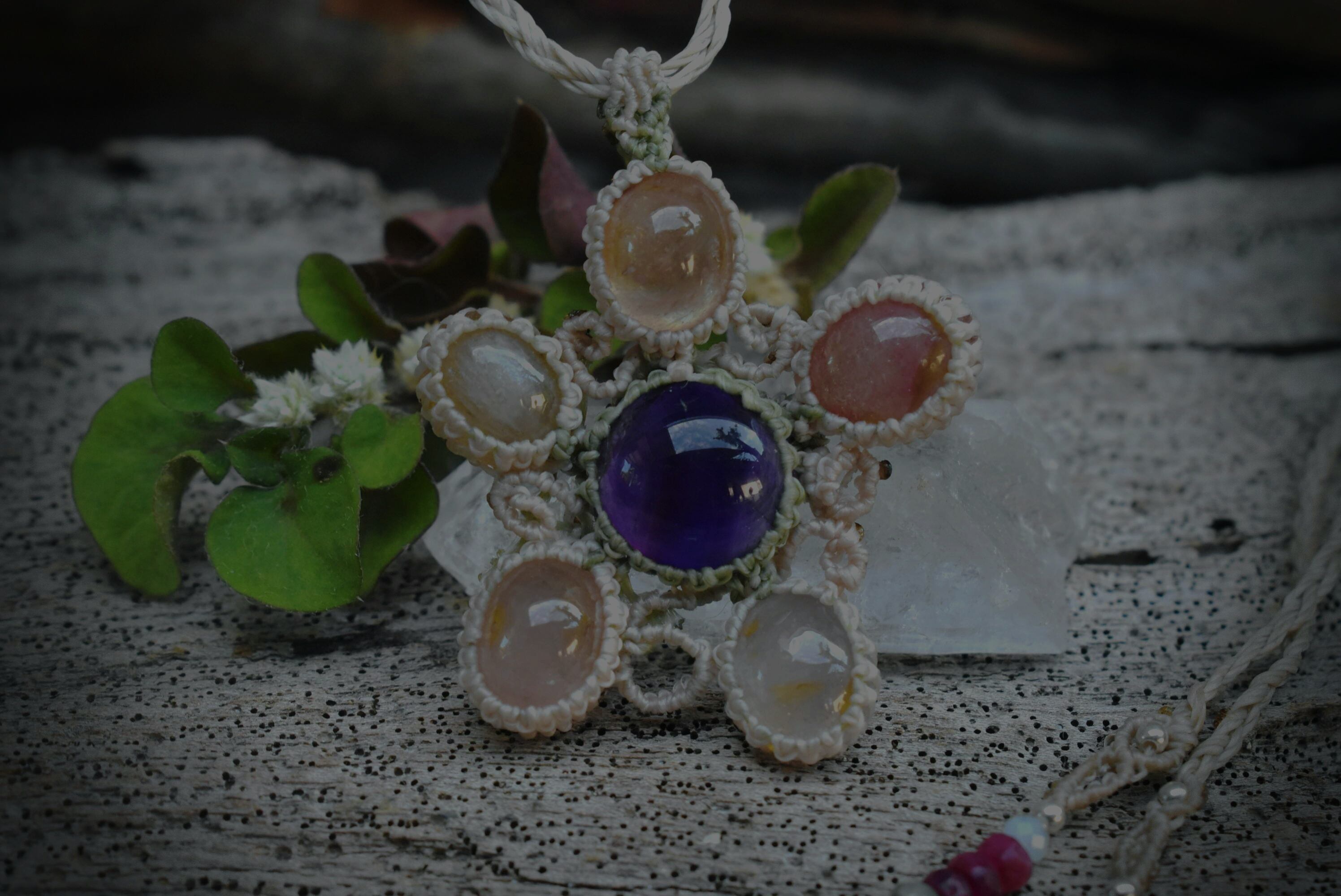 花咲く★アメジストとイエロートルマリン マクラメペンダントtour001