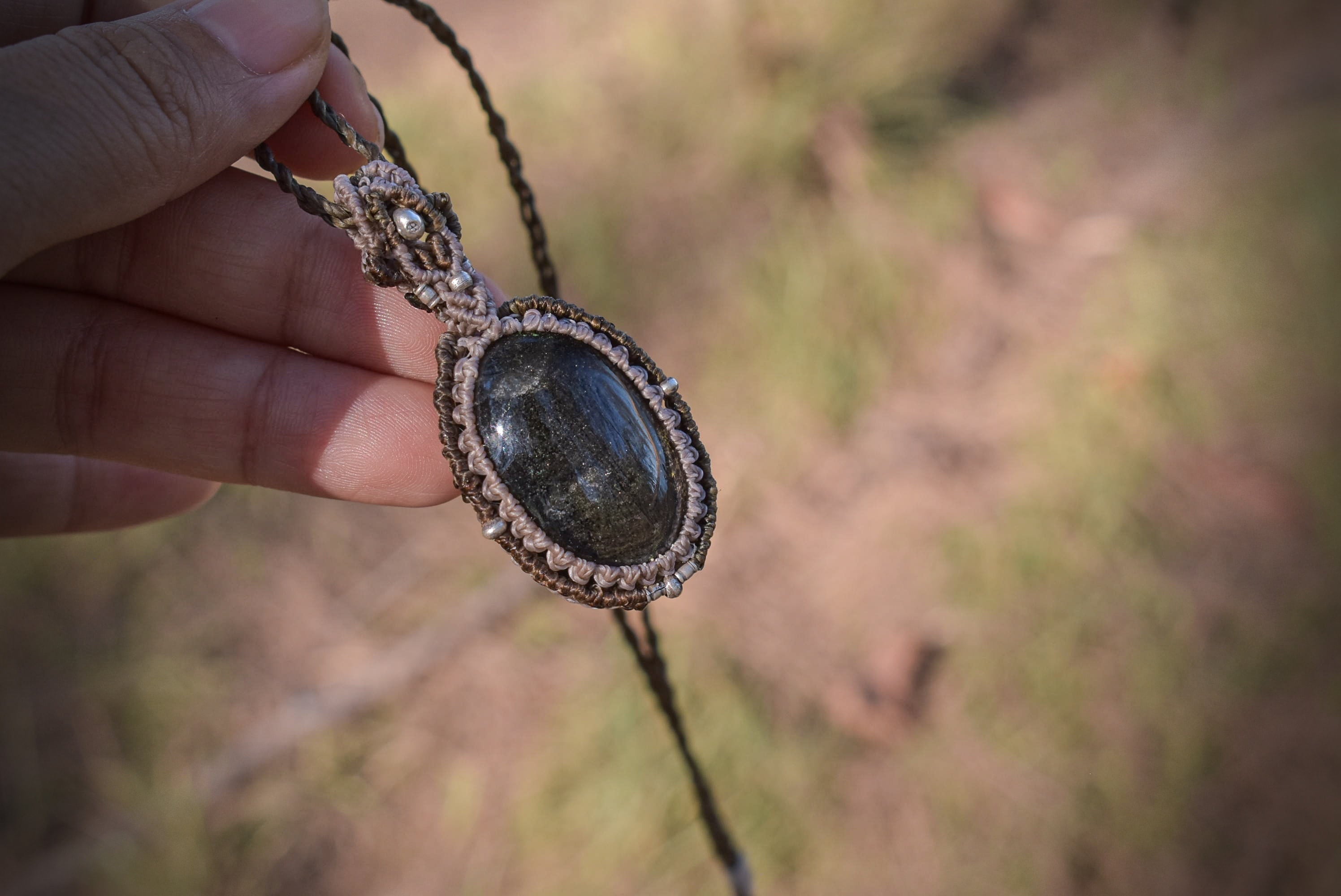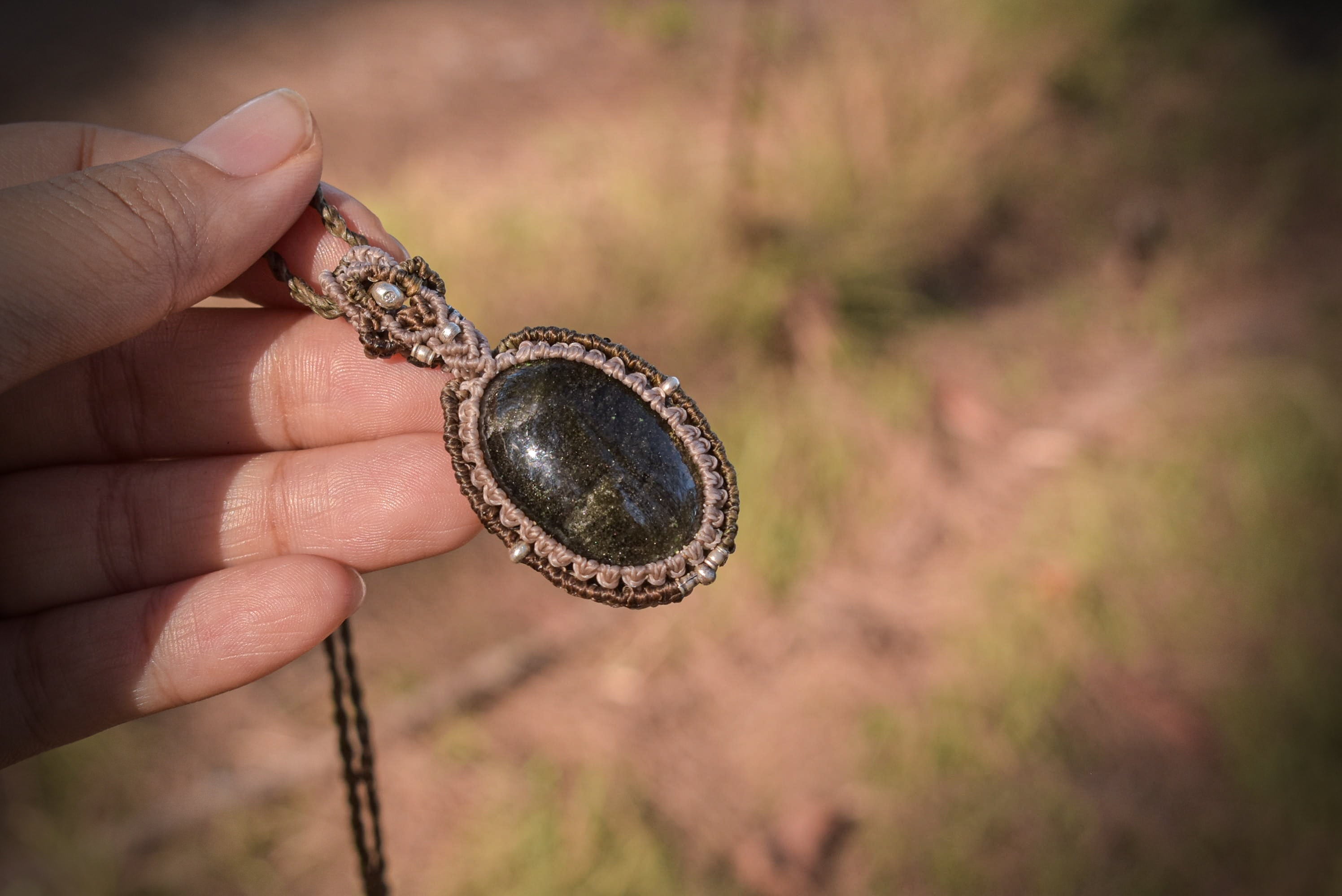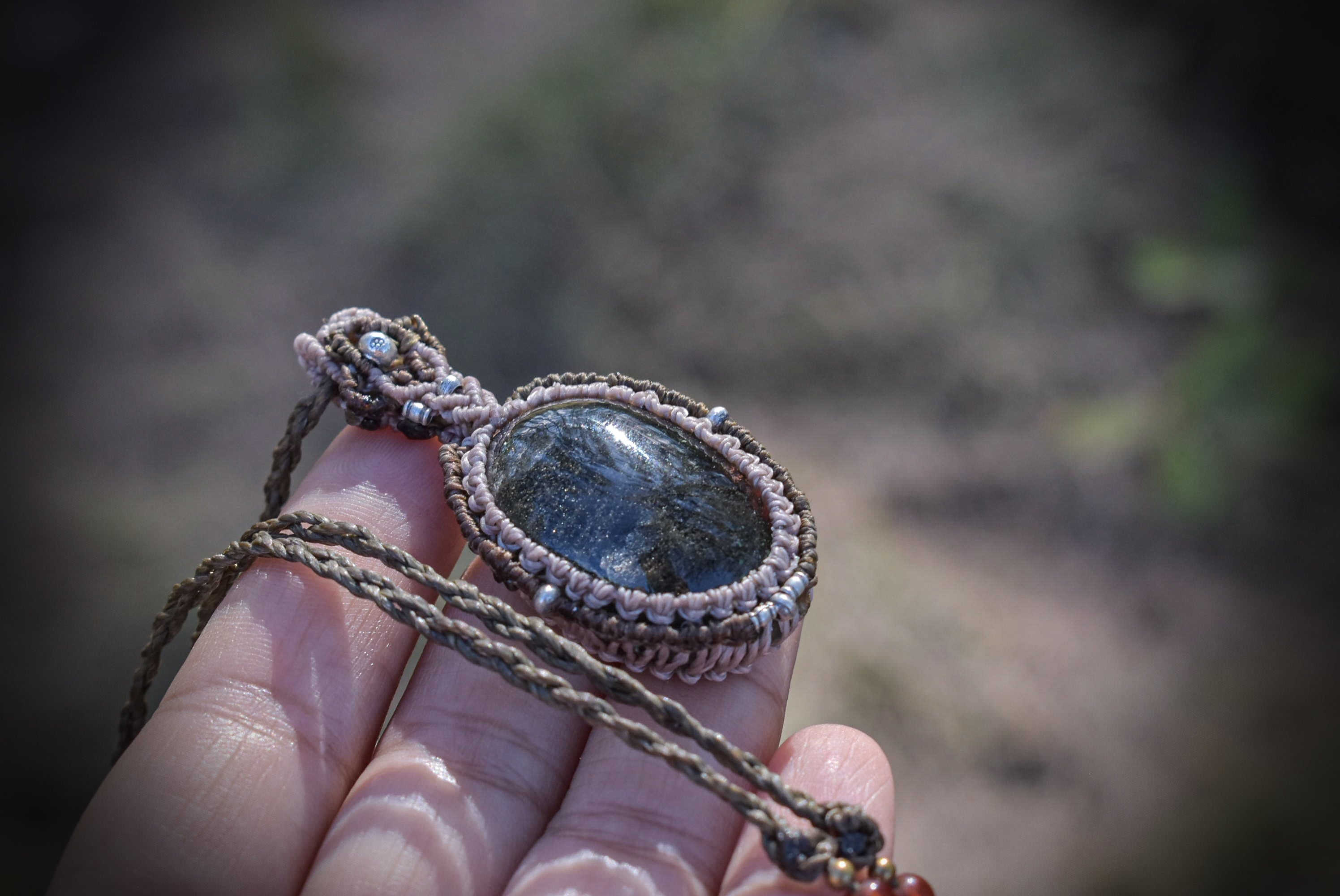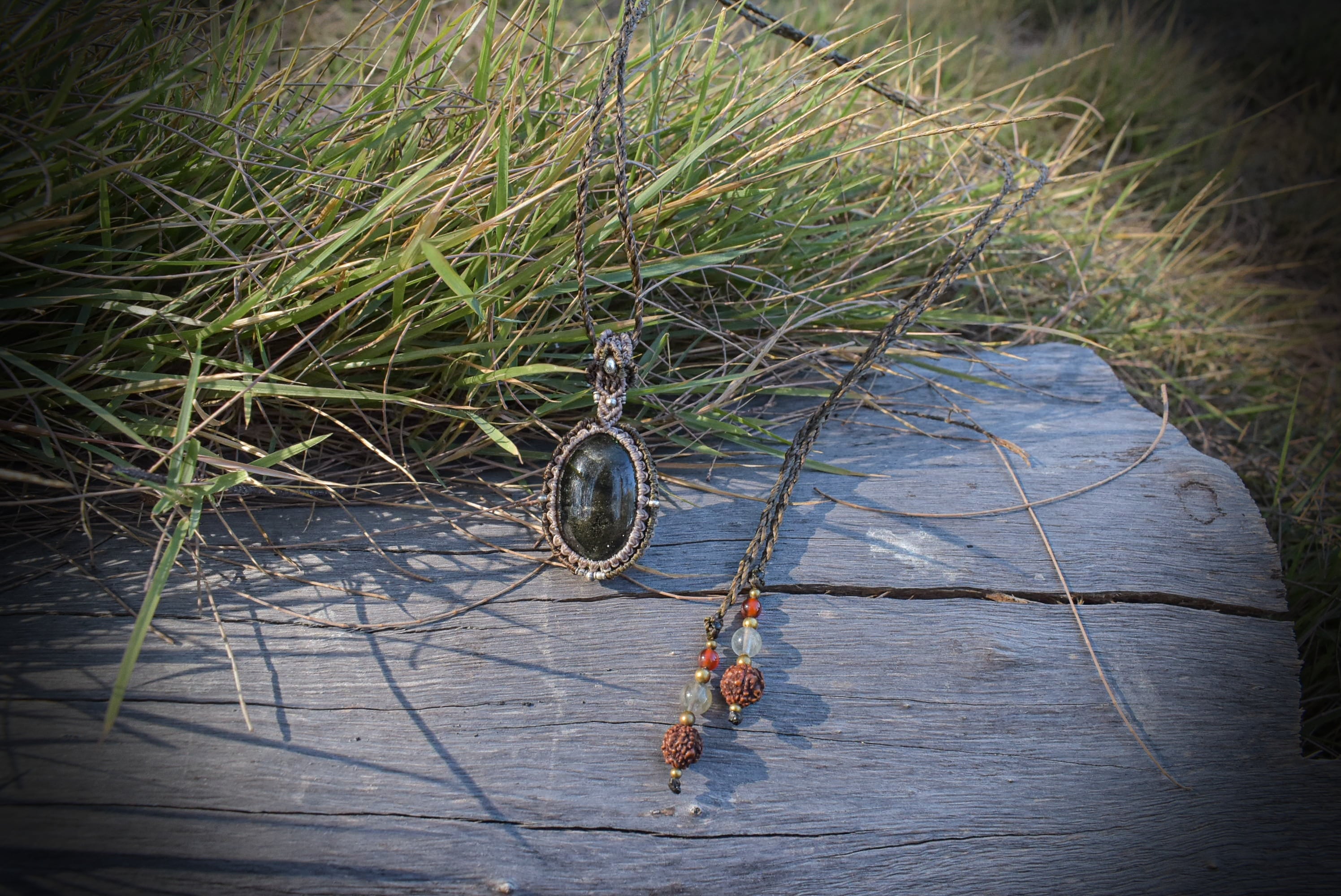 ディープグリーン★ビッシリクローライト マクラメペンダントgarm006
