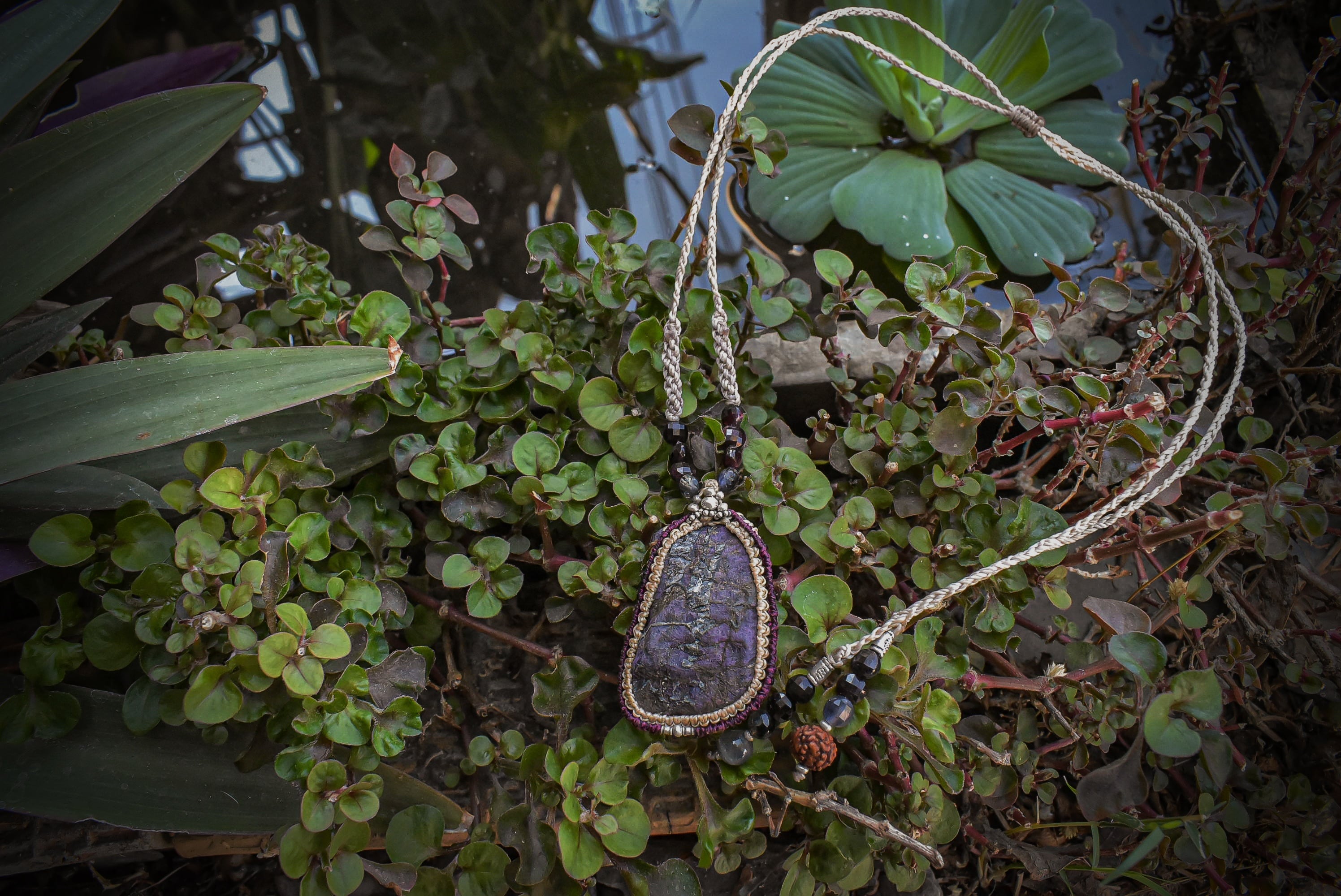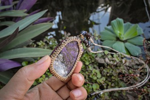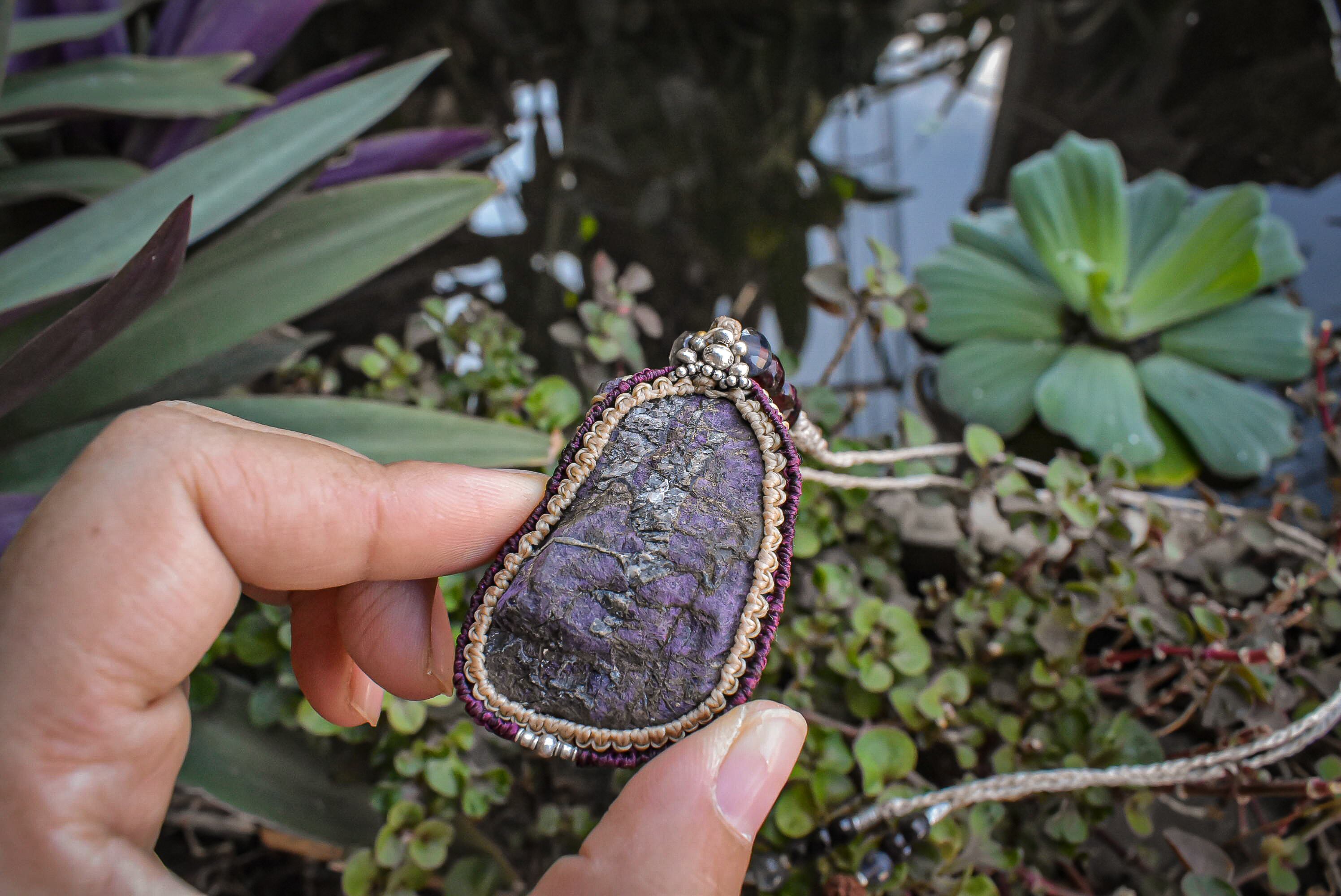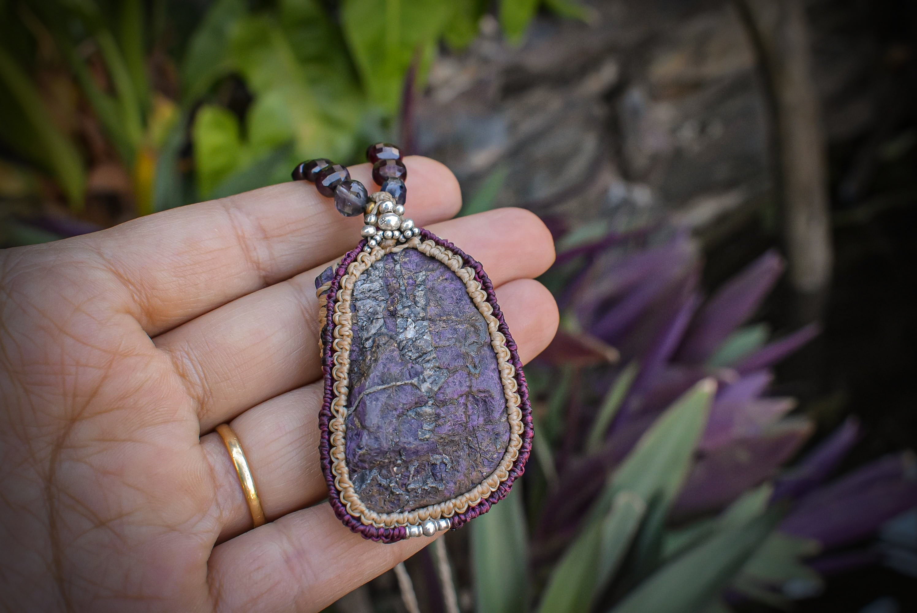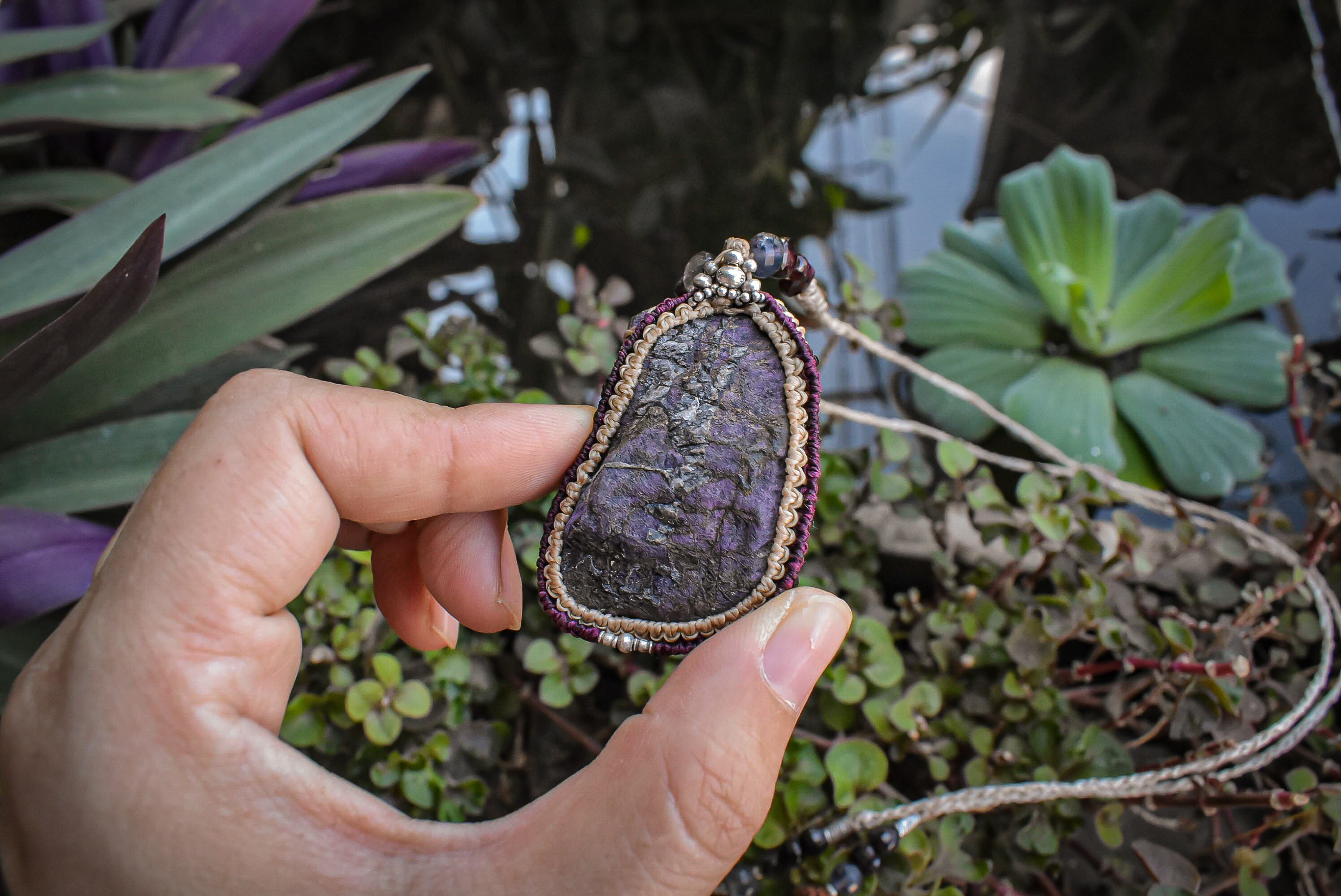 パープル模様★スギライト原石マクラメペンダントsugi001