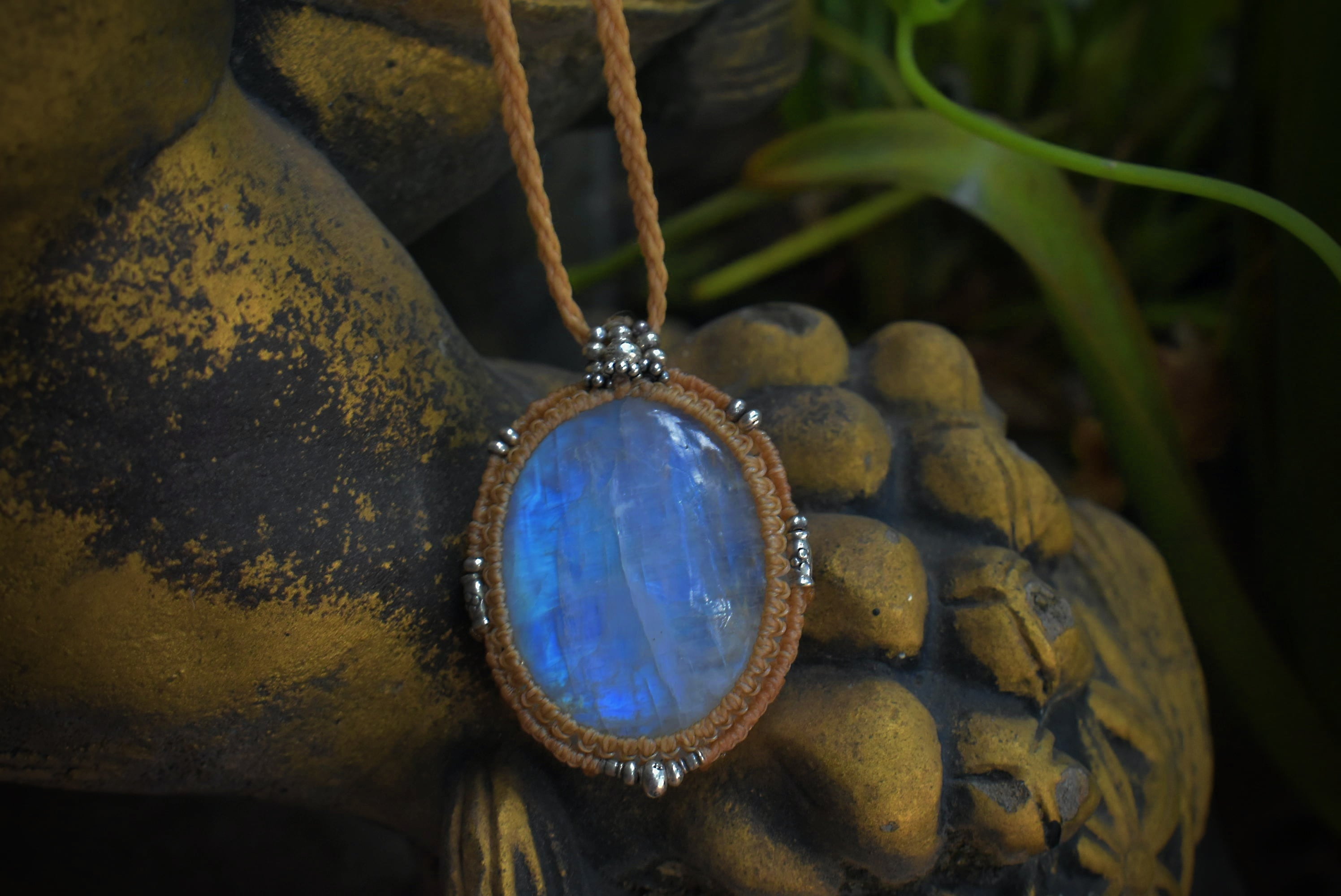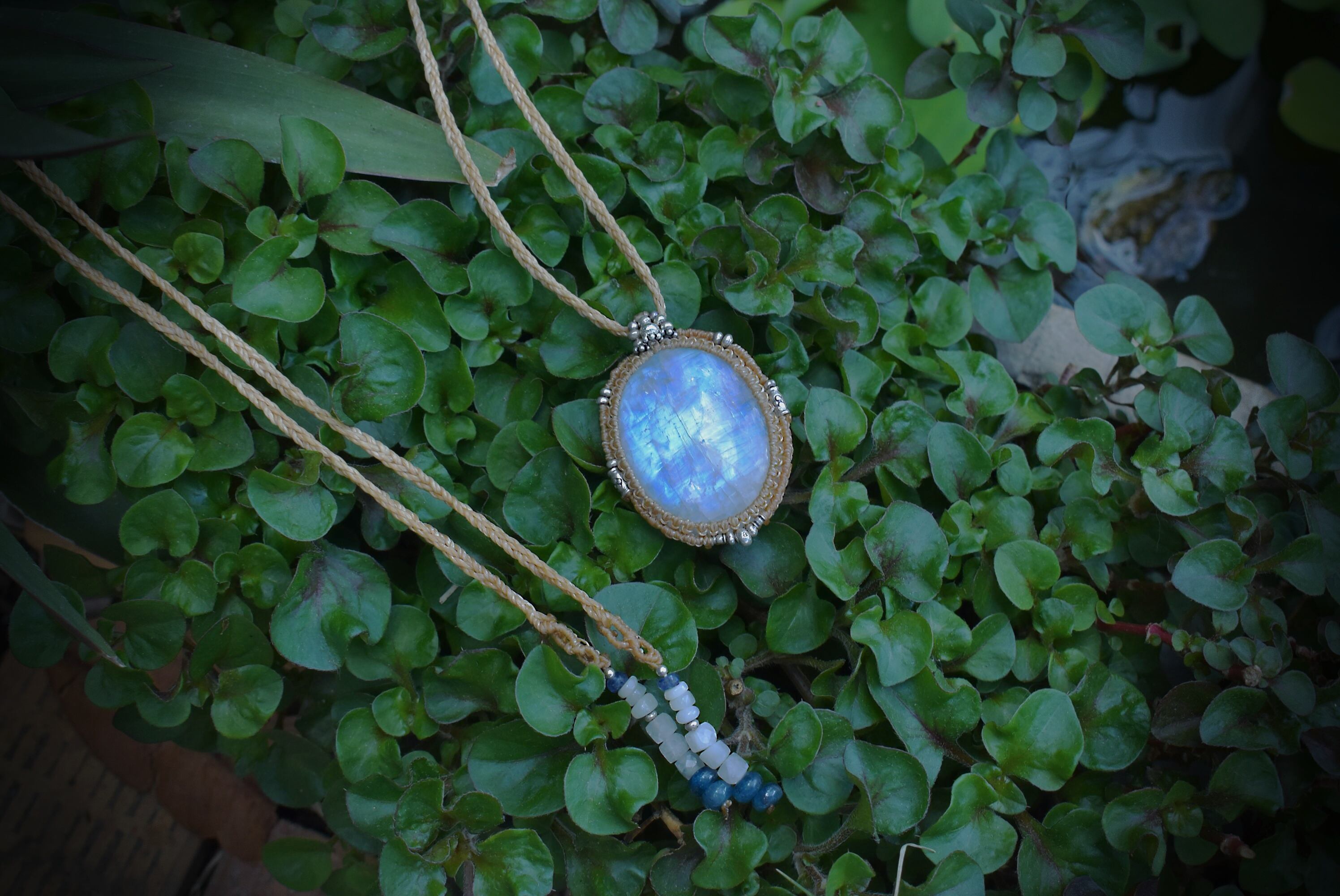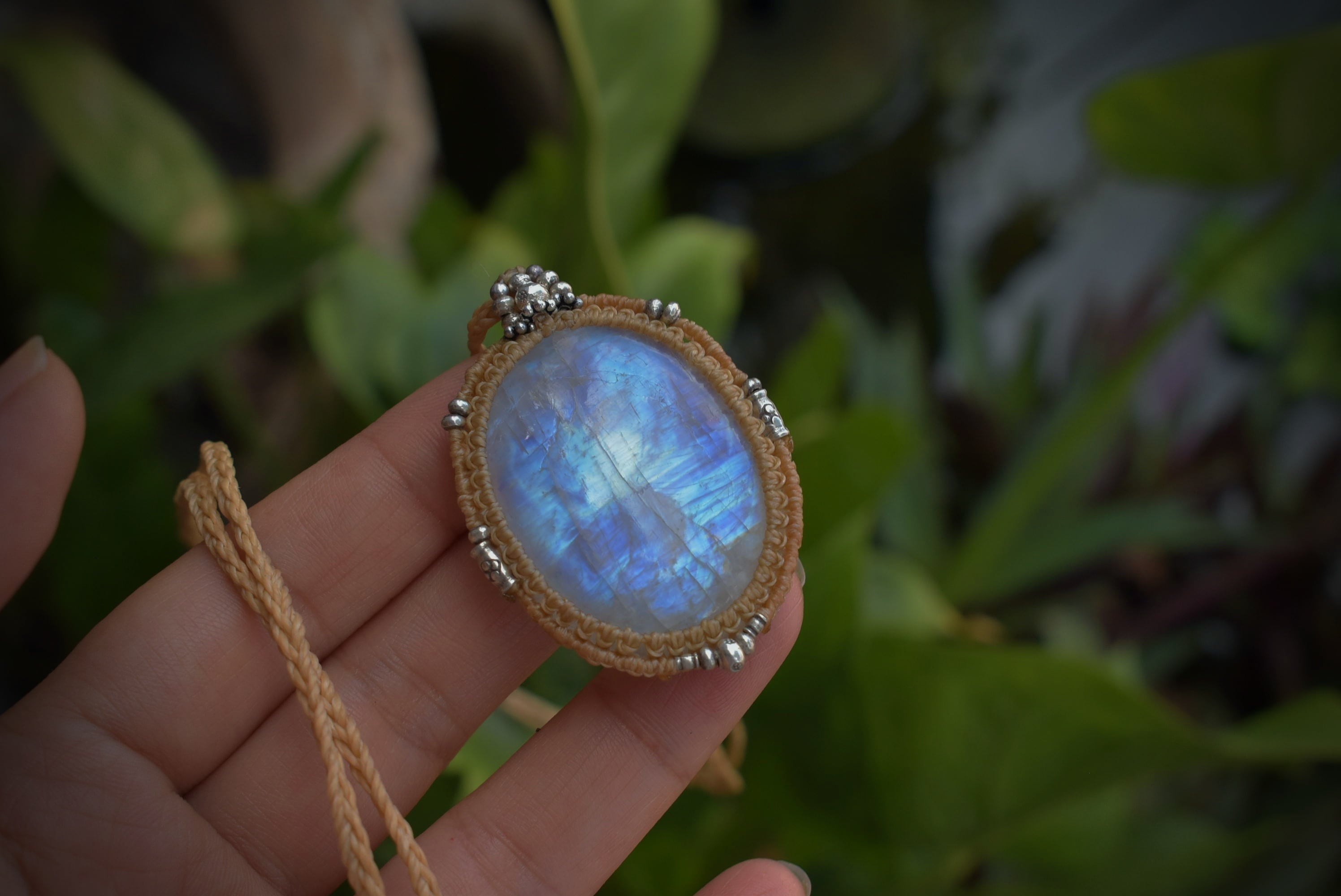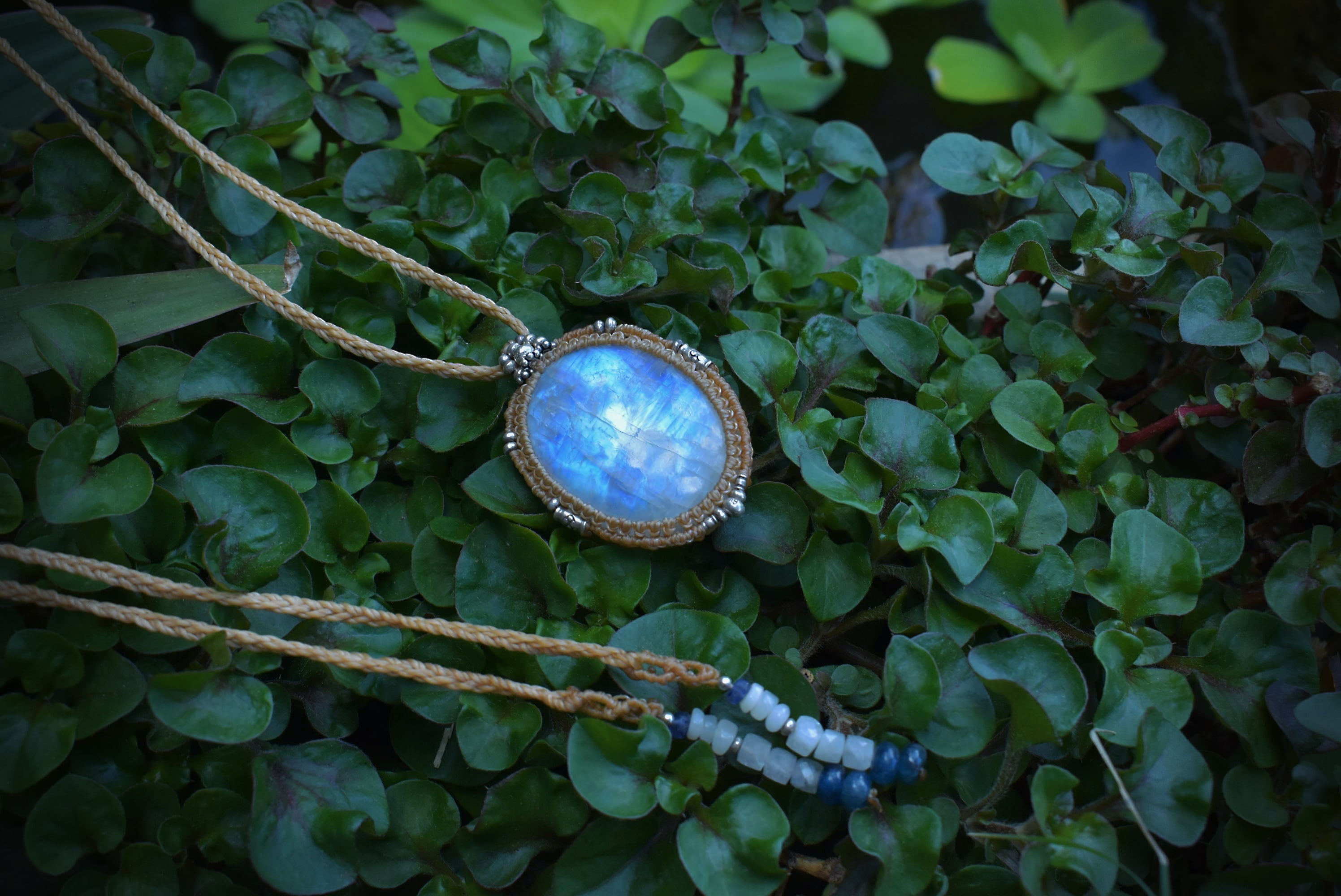 大きな天空色★レインボームーンストーン マクラメペンダントmoon012