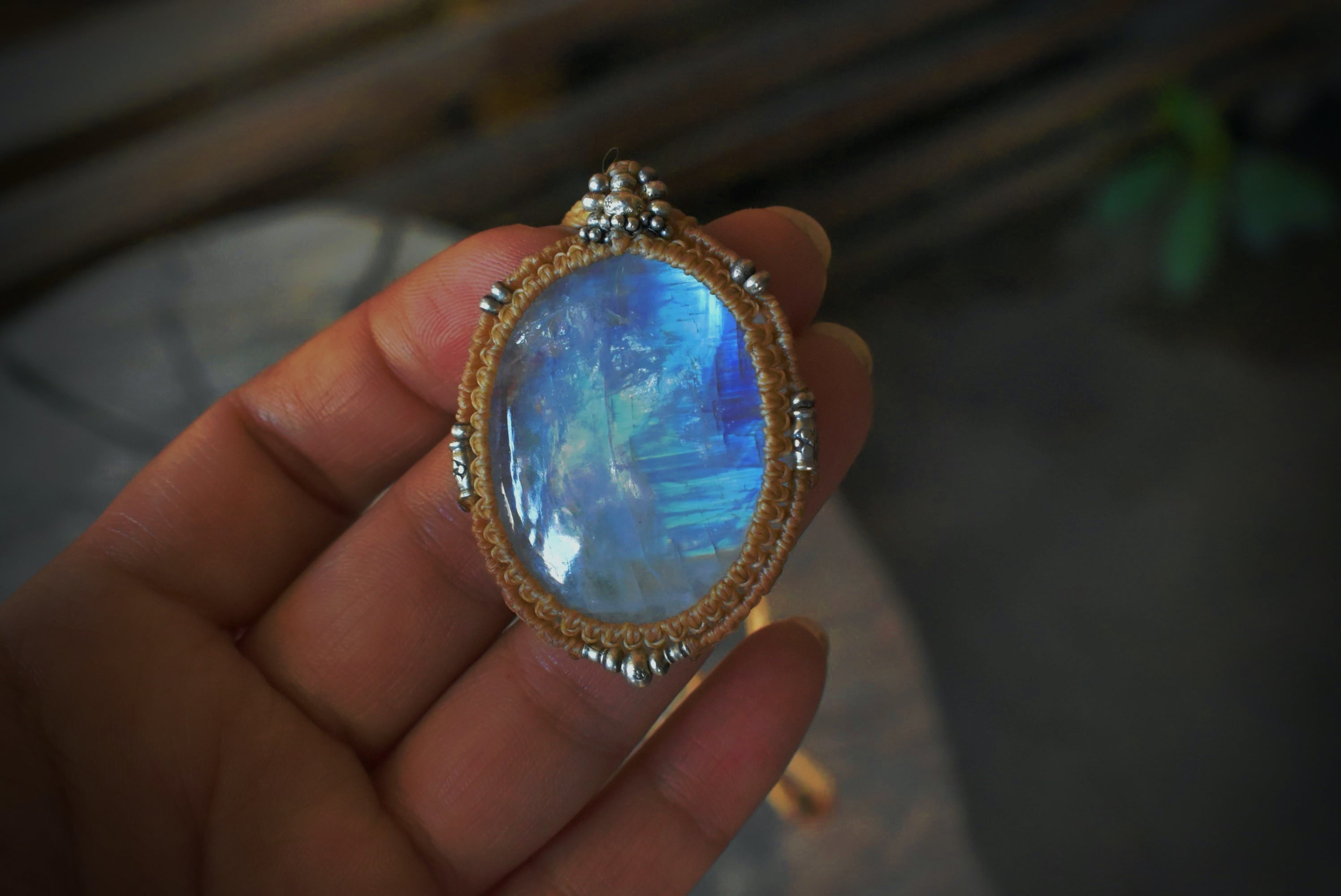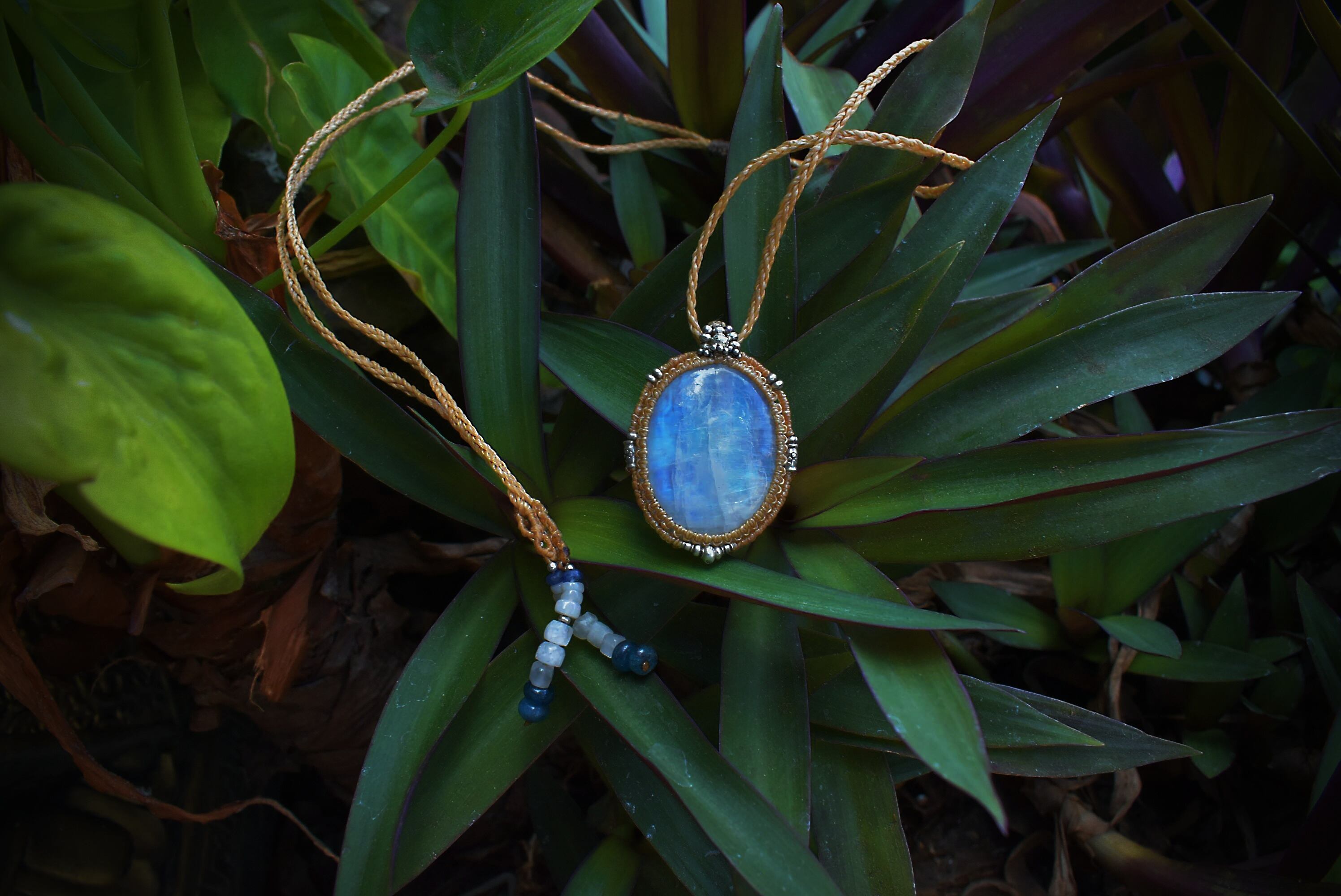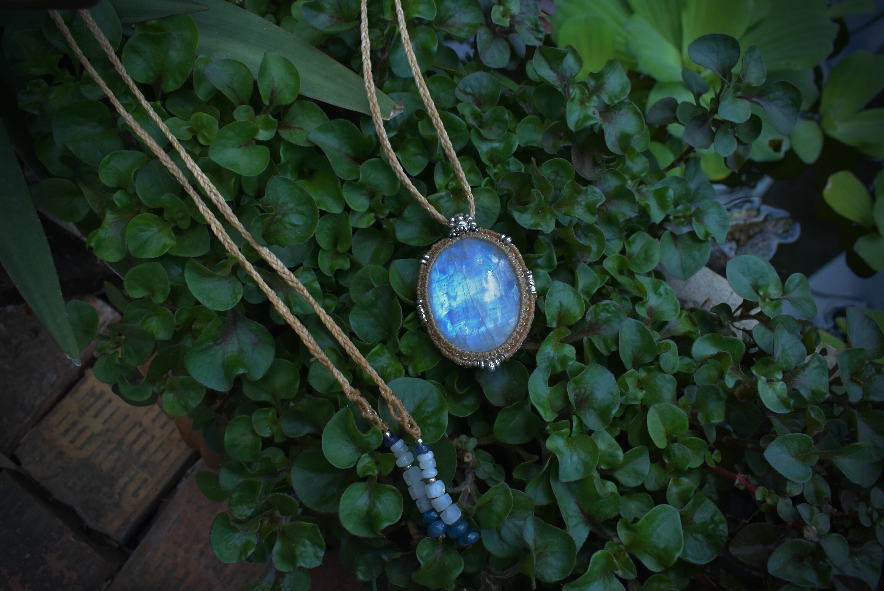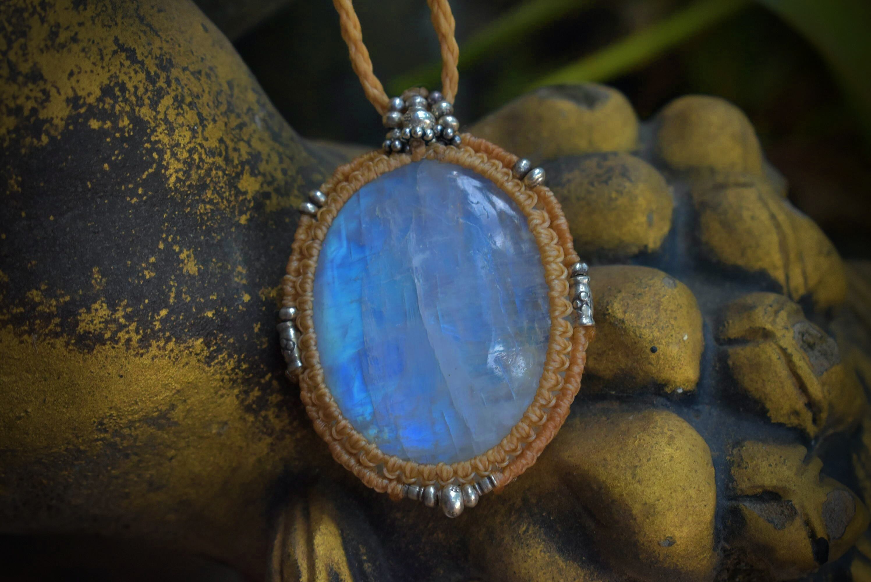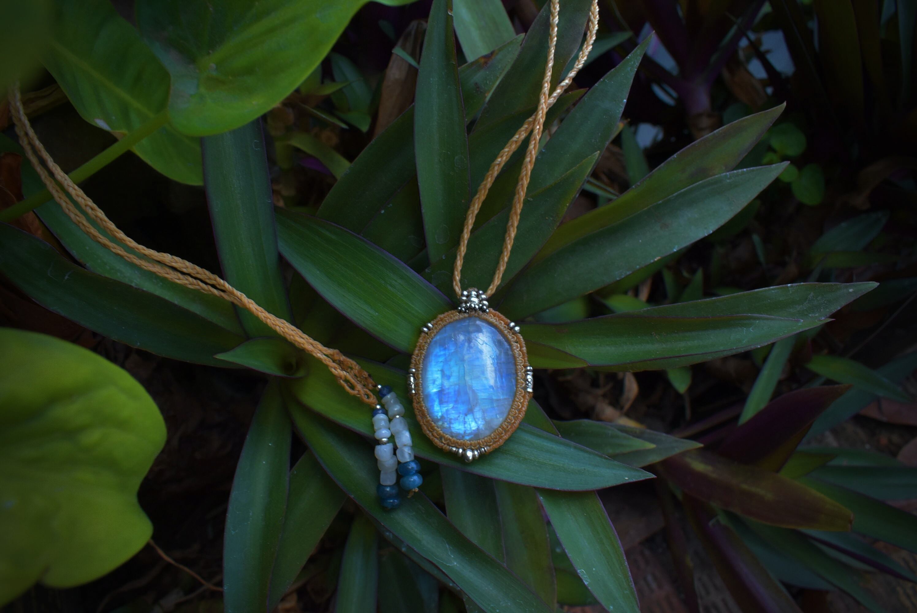 大きな天空色★レインボームーンストーン マクラメペンダントmoon012