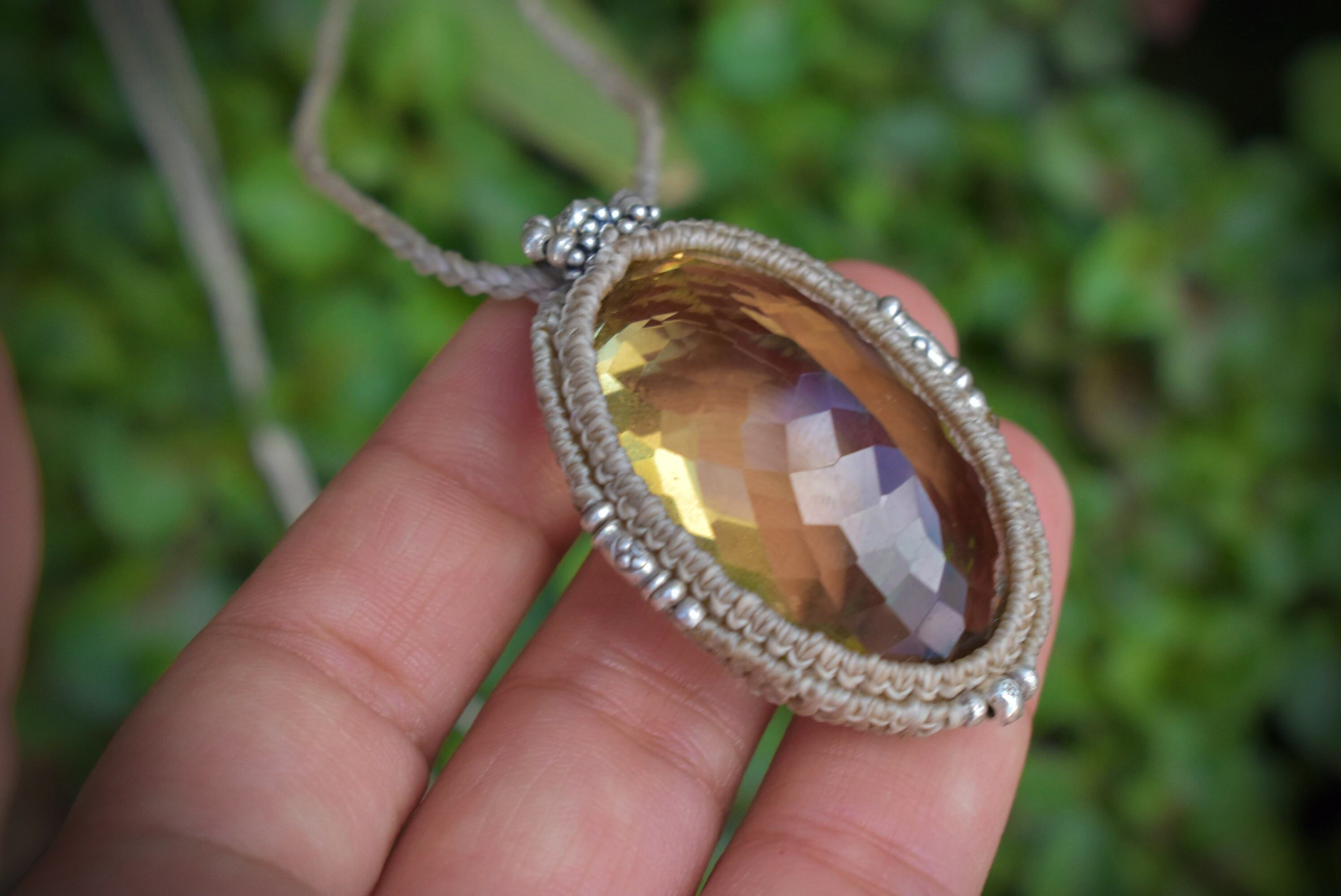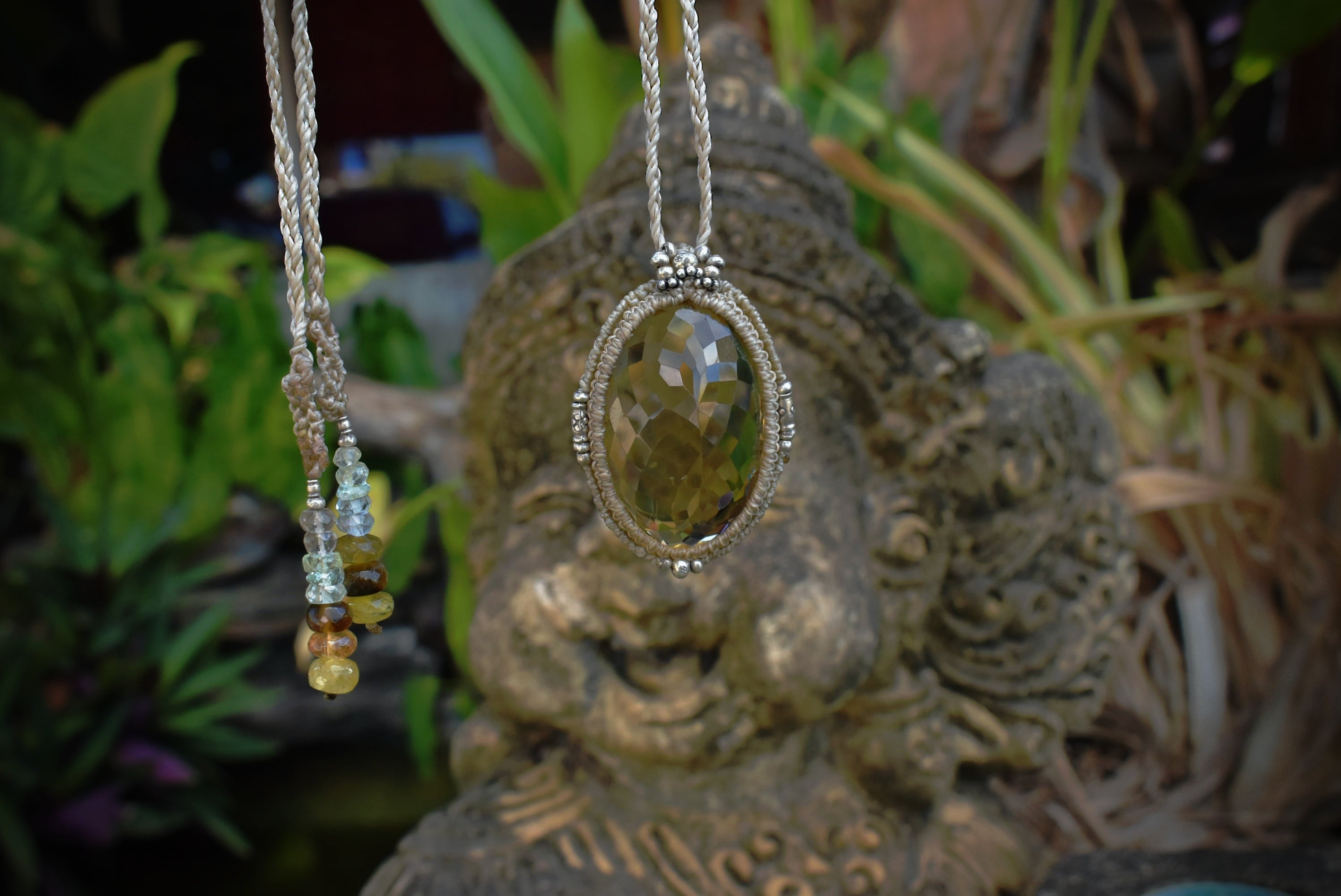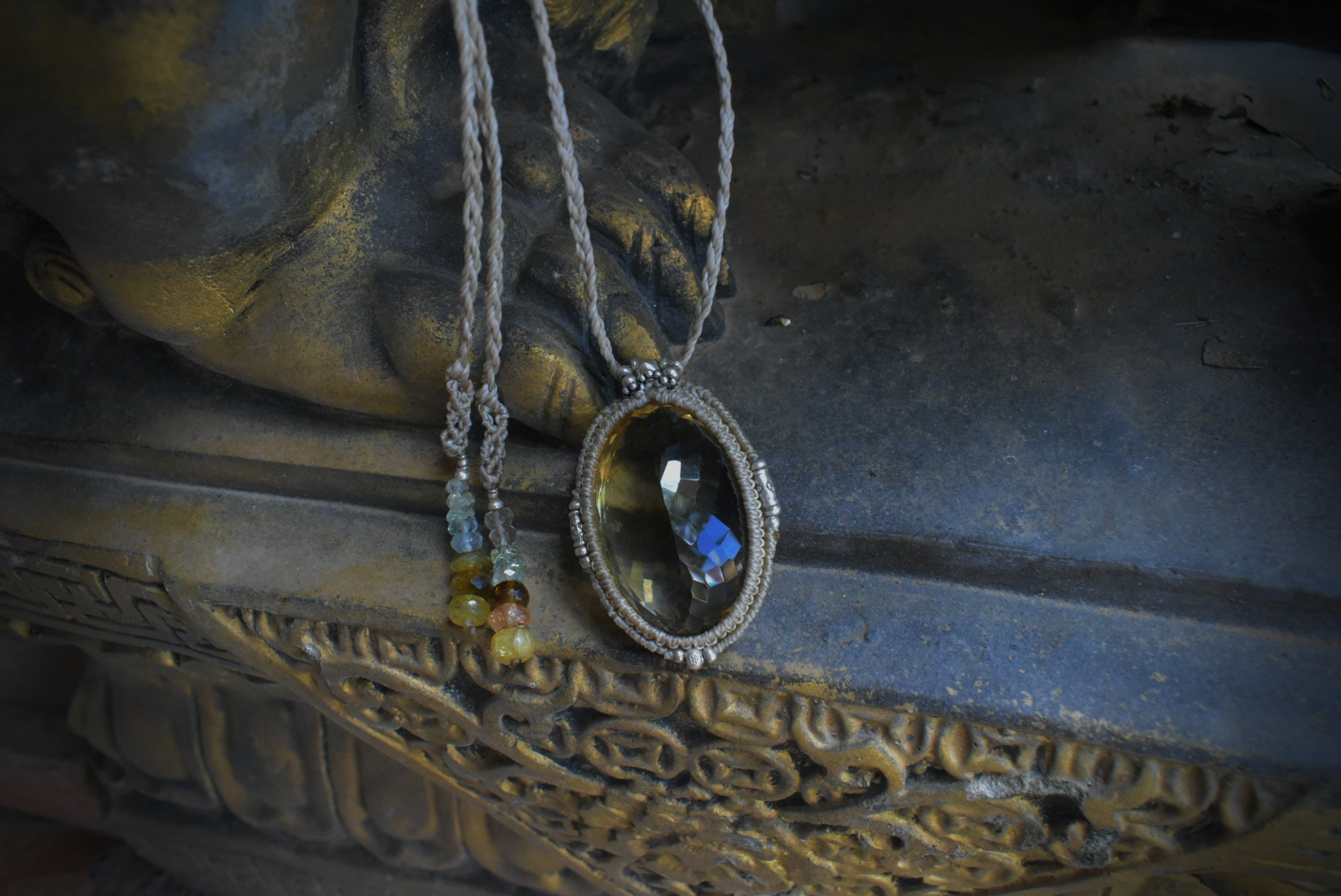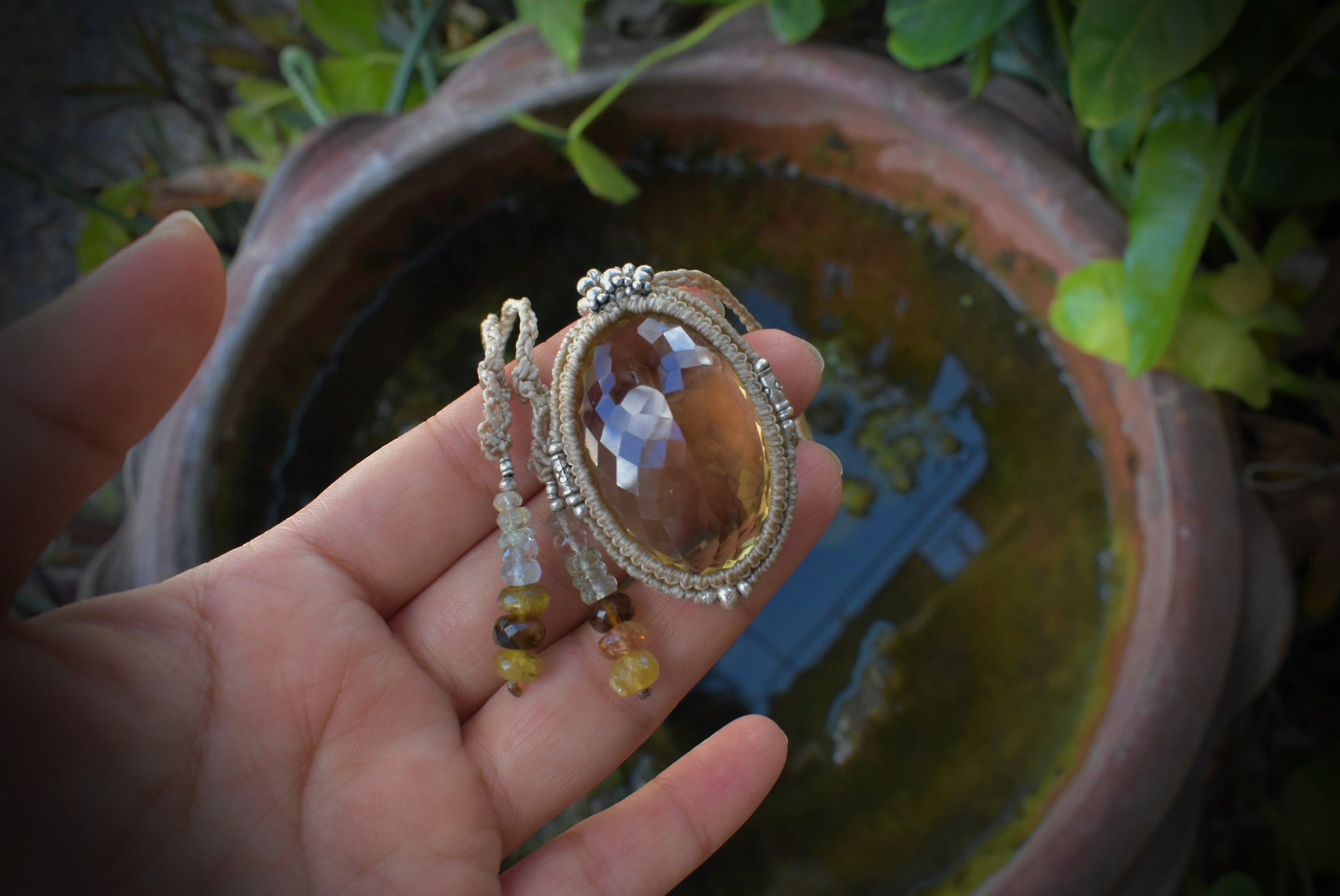 黄金色★レモンクォーツ95ct マクラメペンダントlemon001