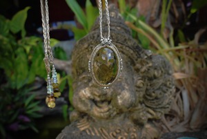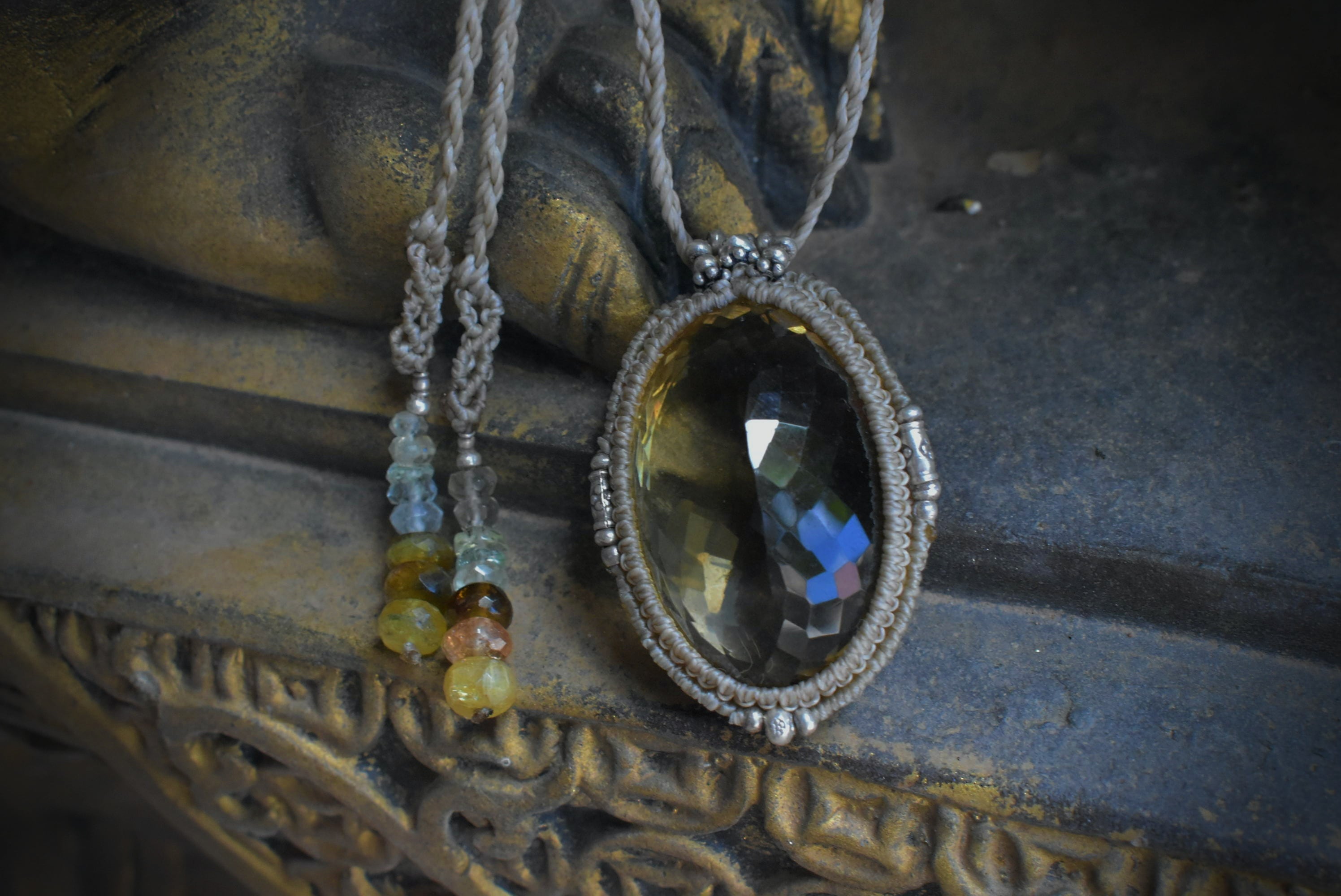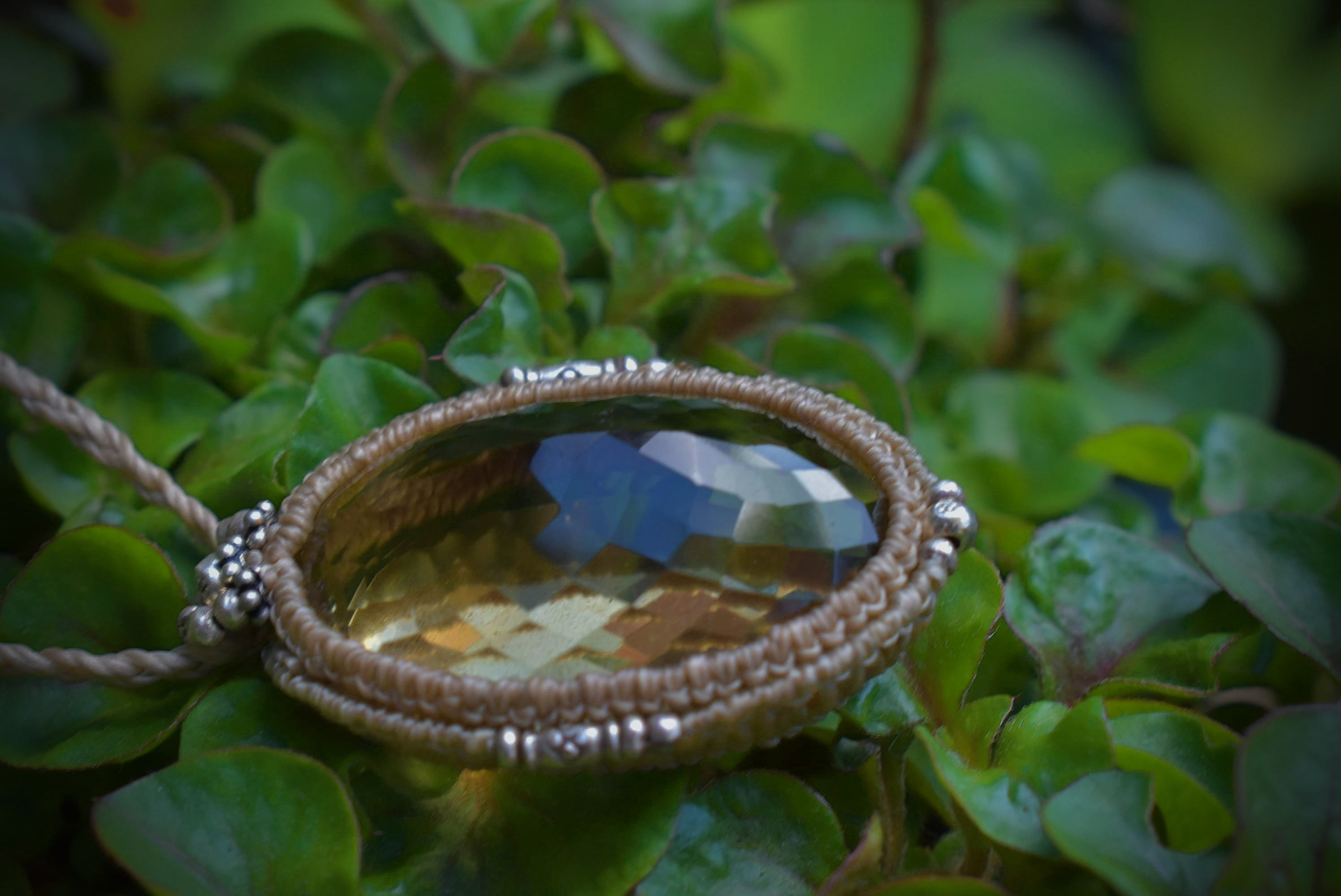 何だかある意味セクシーでゴージャスなこのルースにカレンシルバーを組み合わせて、マクラメ編み装飾を施しました。