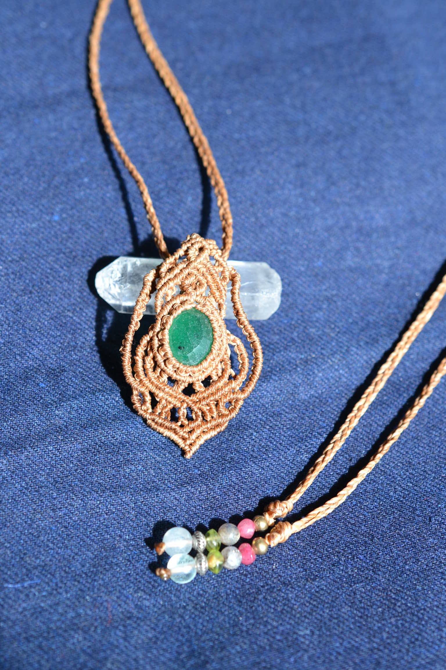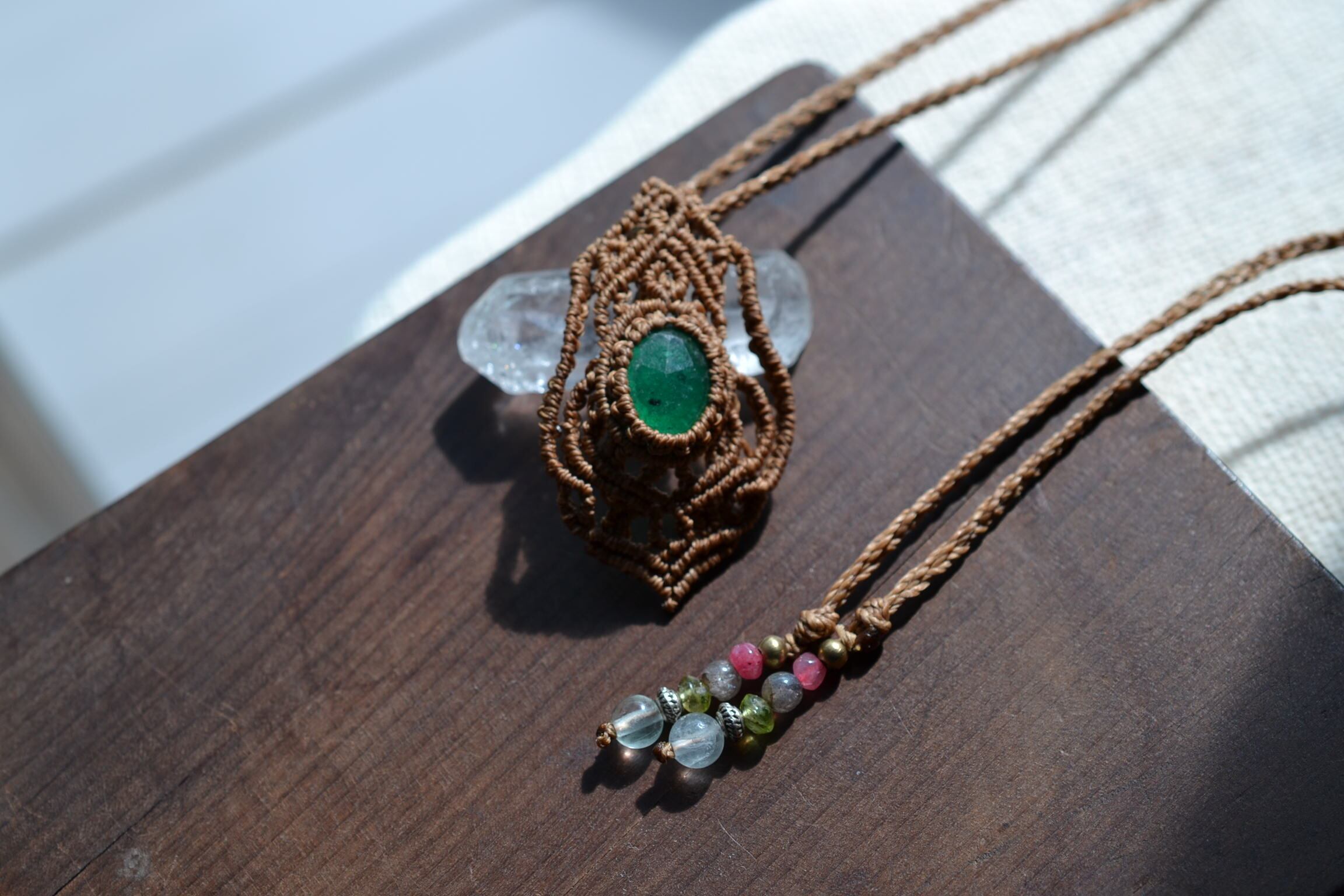 アフガニスタン産エメラルド★マクラメ編みペンダント