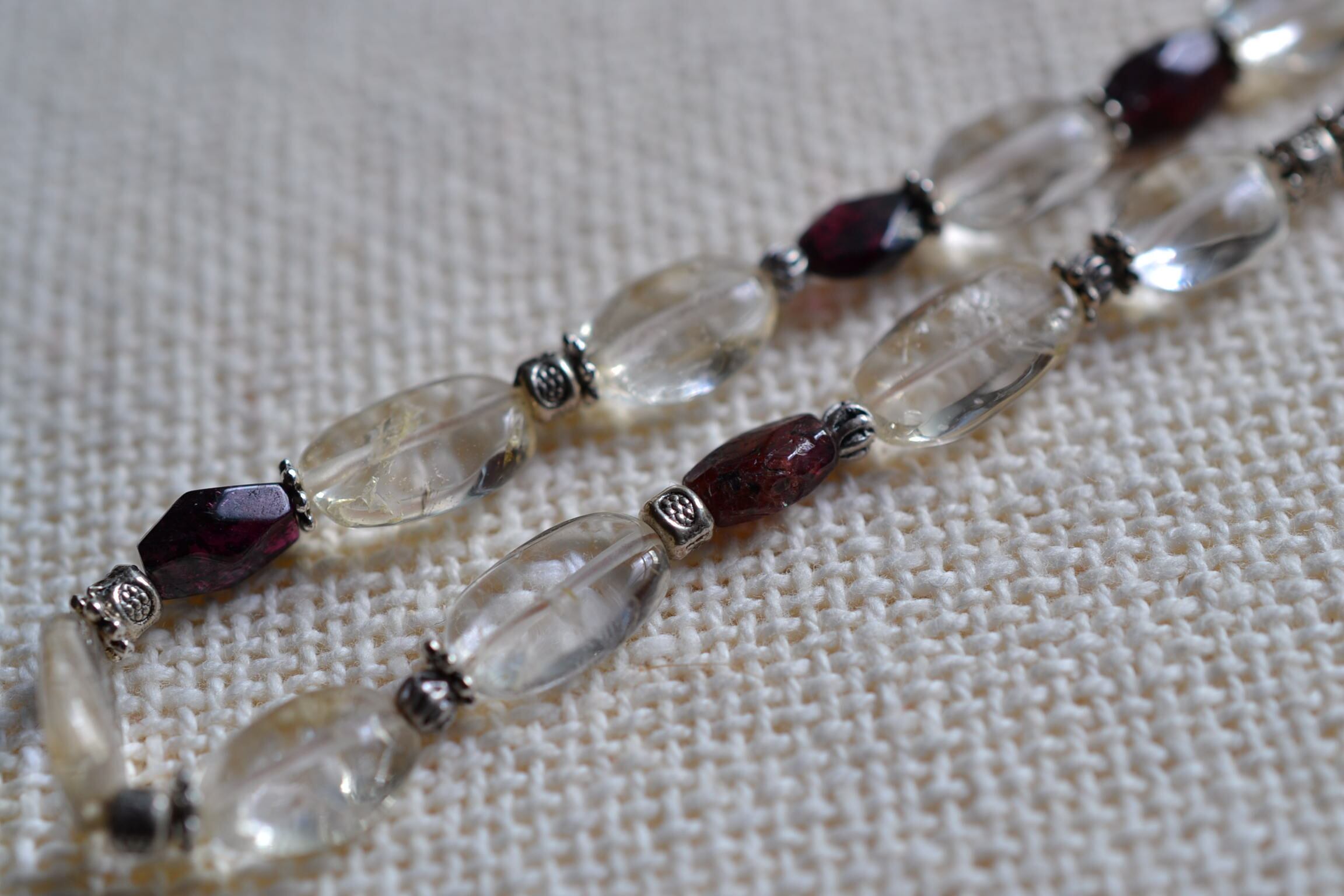 ガーネット&クリアクオーツ★ロングビーズビーズネックレスbn026