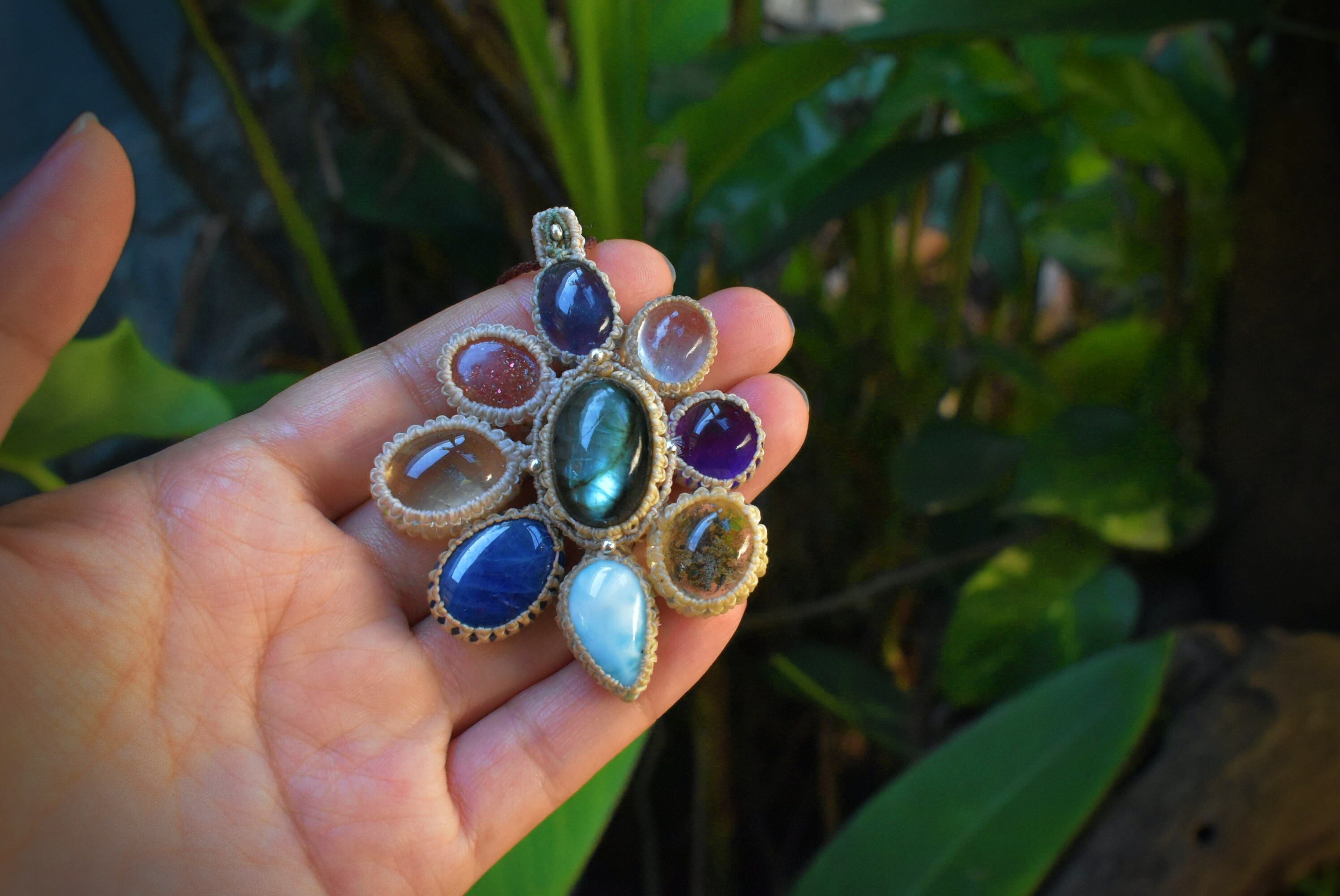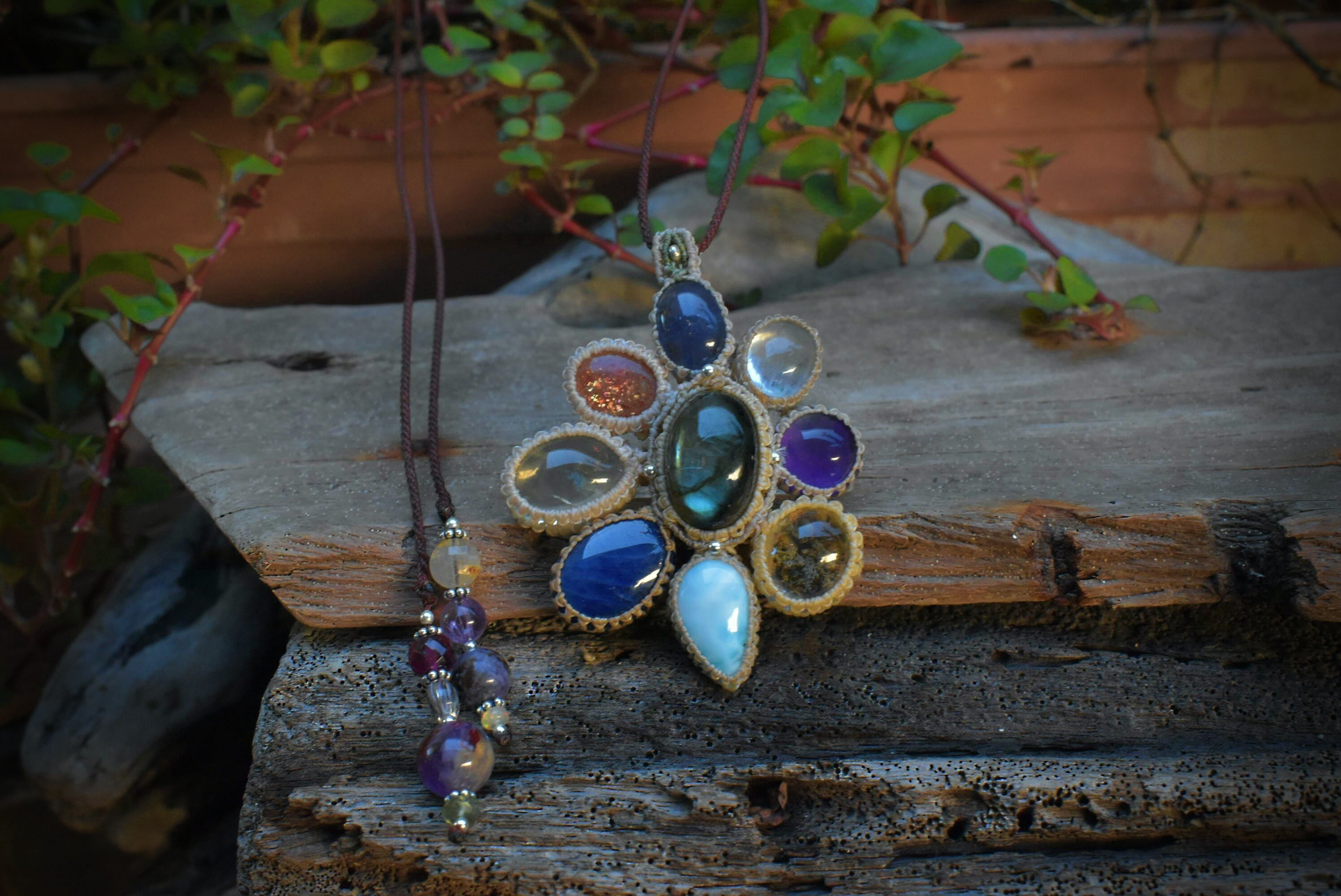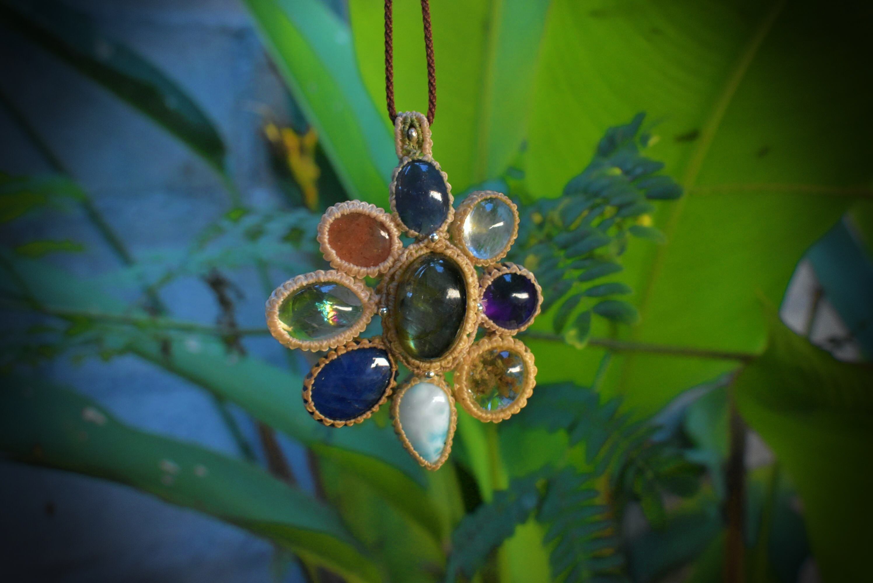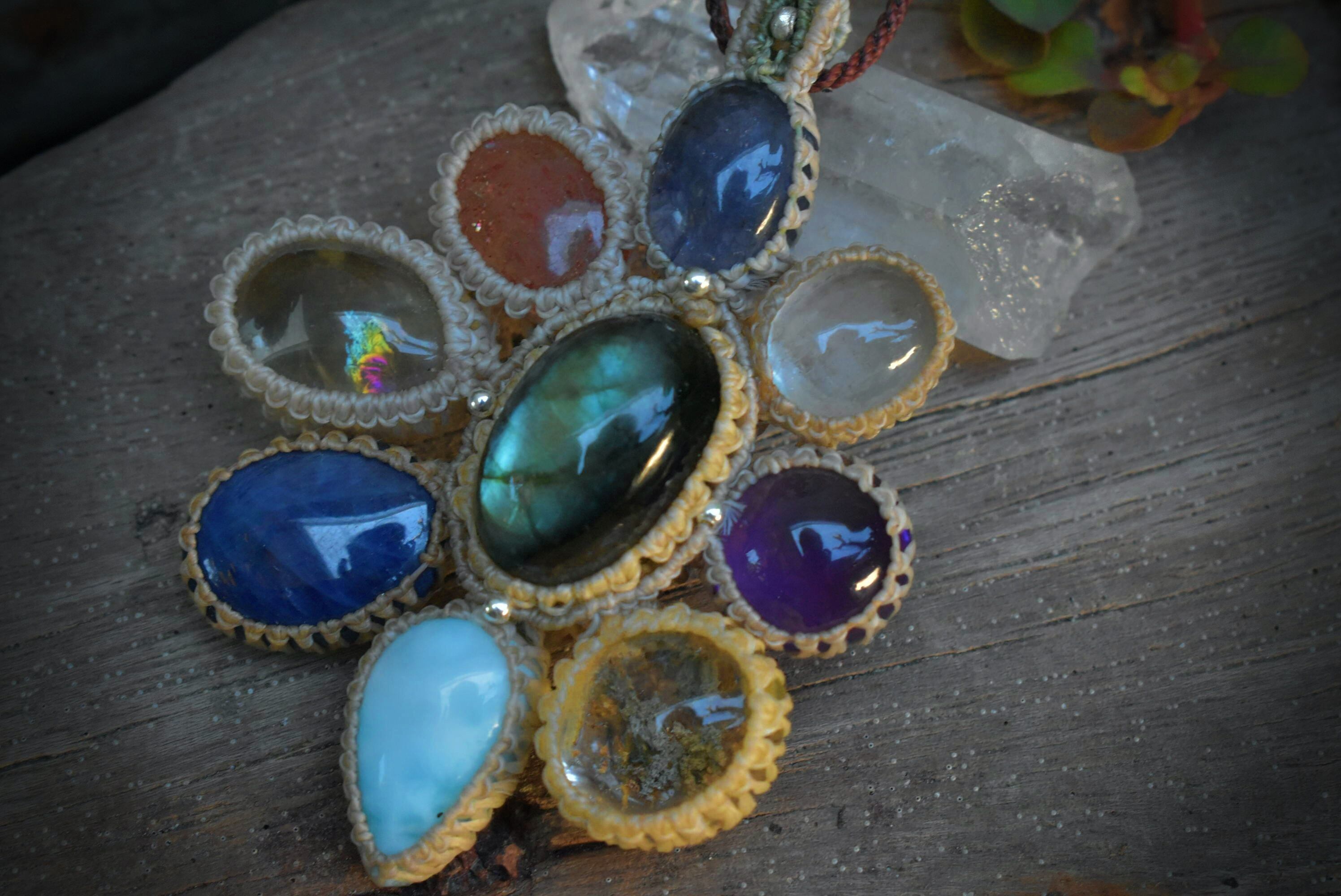 虹色とりどり★ラブラドライトMix マクラメペンダントlabb045