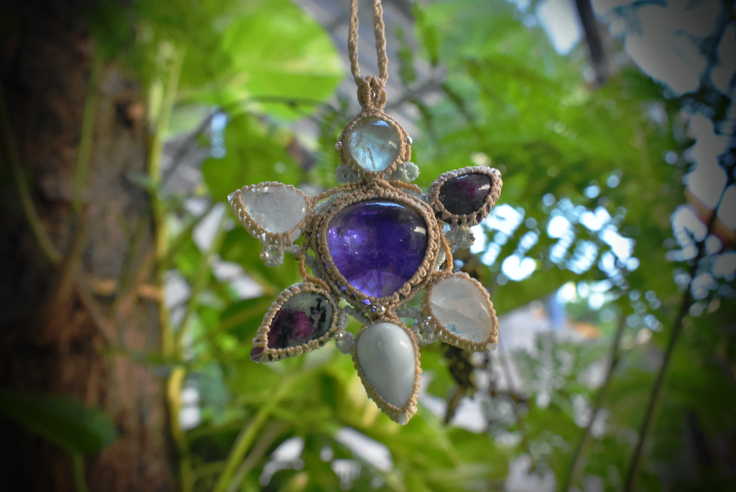 ファンタジーワールド★アメジストのお花Mix マクラメペンダントame020