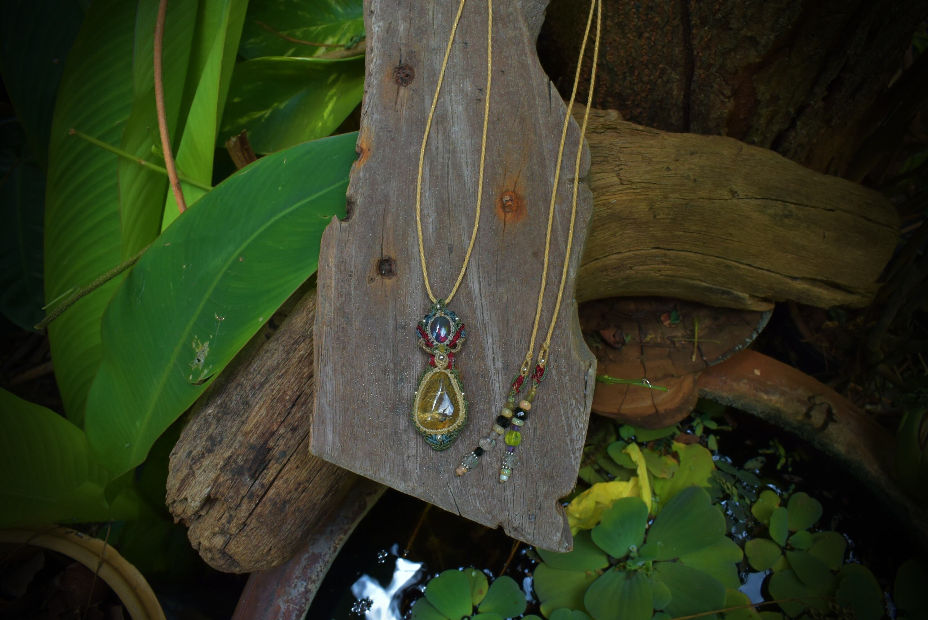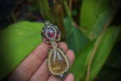 このたびはビッシリと入り込んだゴールドルチルを持つ水晶と共に結び、ひとつにして特別なペンダントに仕上がりました。