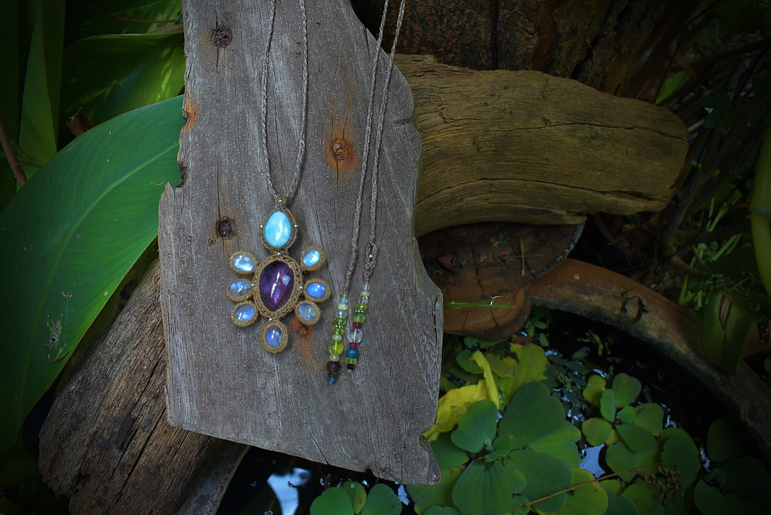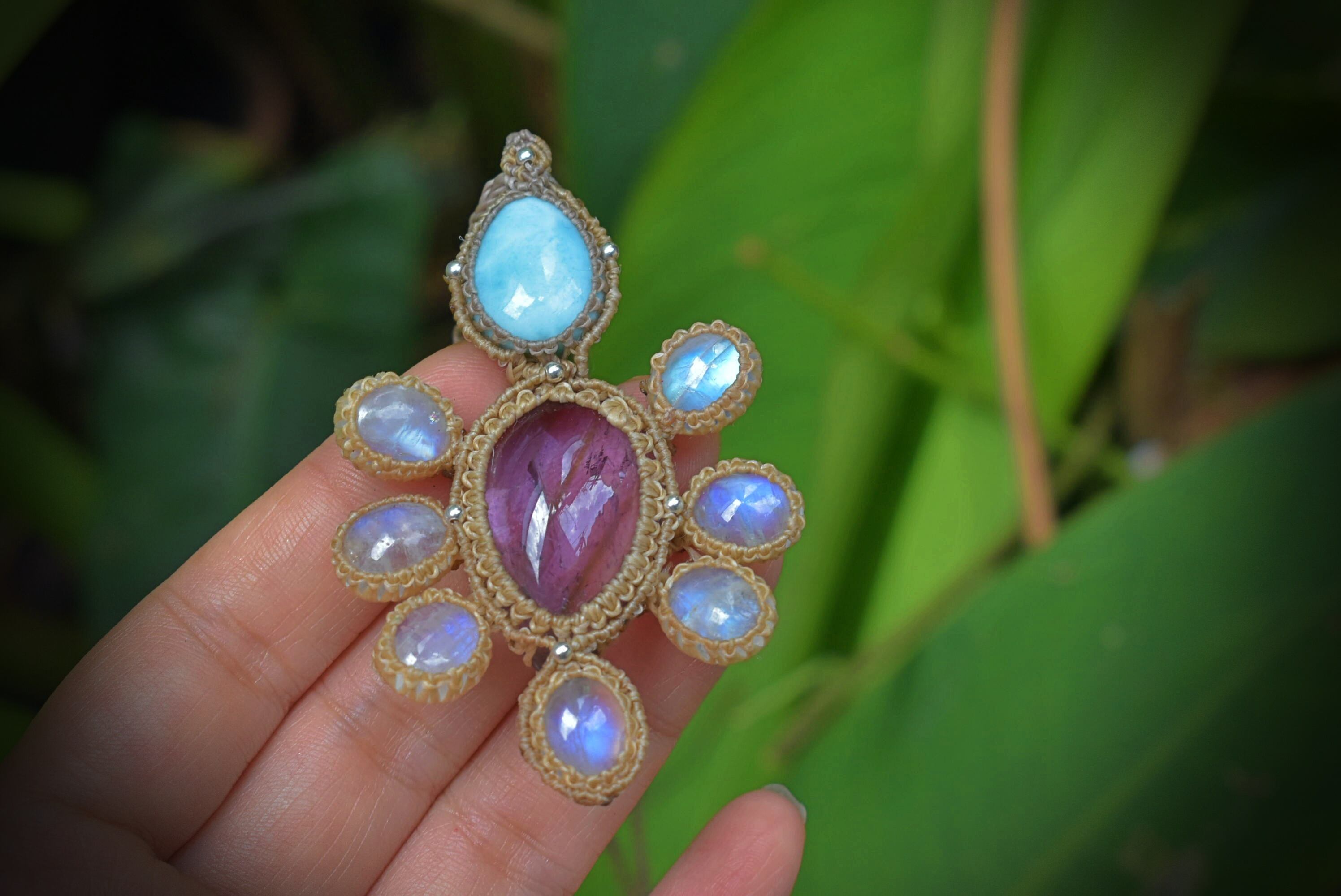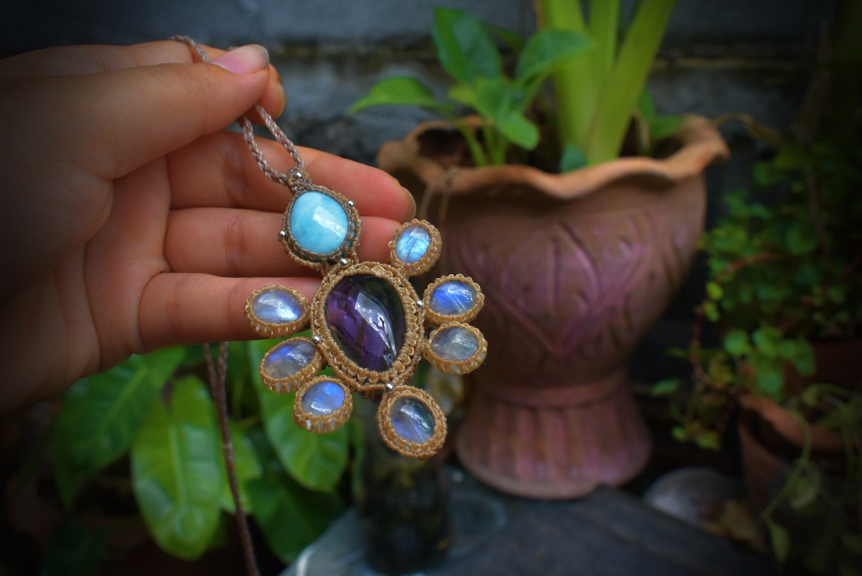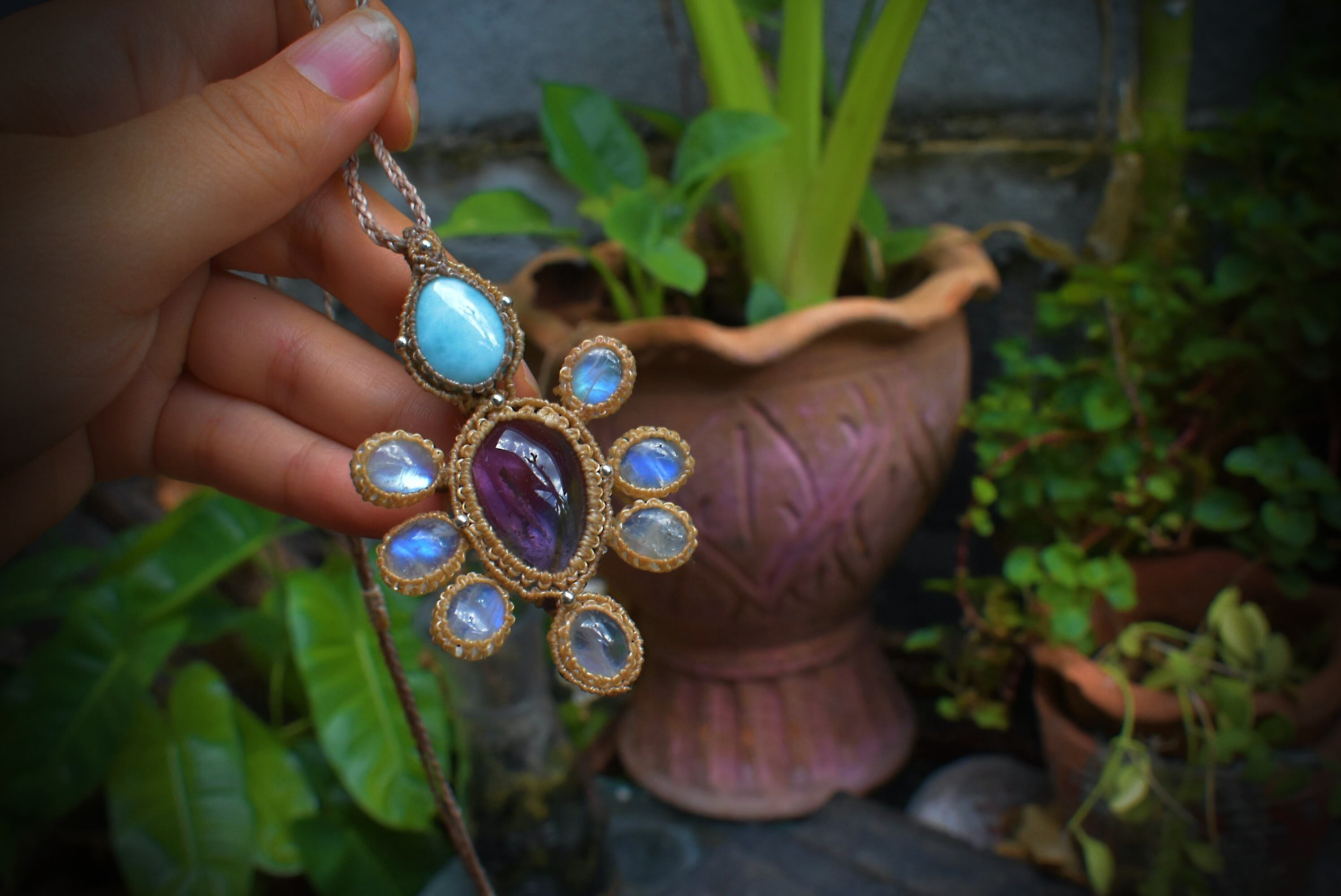 羽ばたくラリマーとアメトリンと虹★マクラメペンダントame022