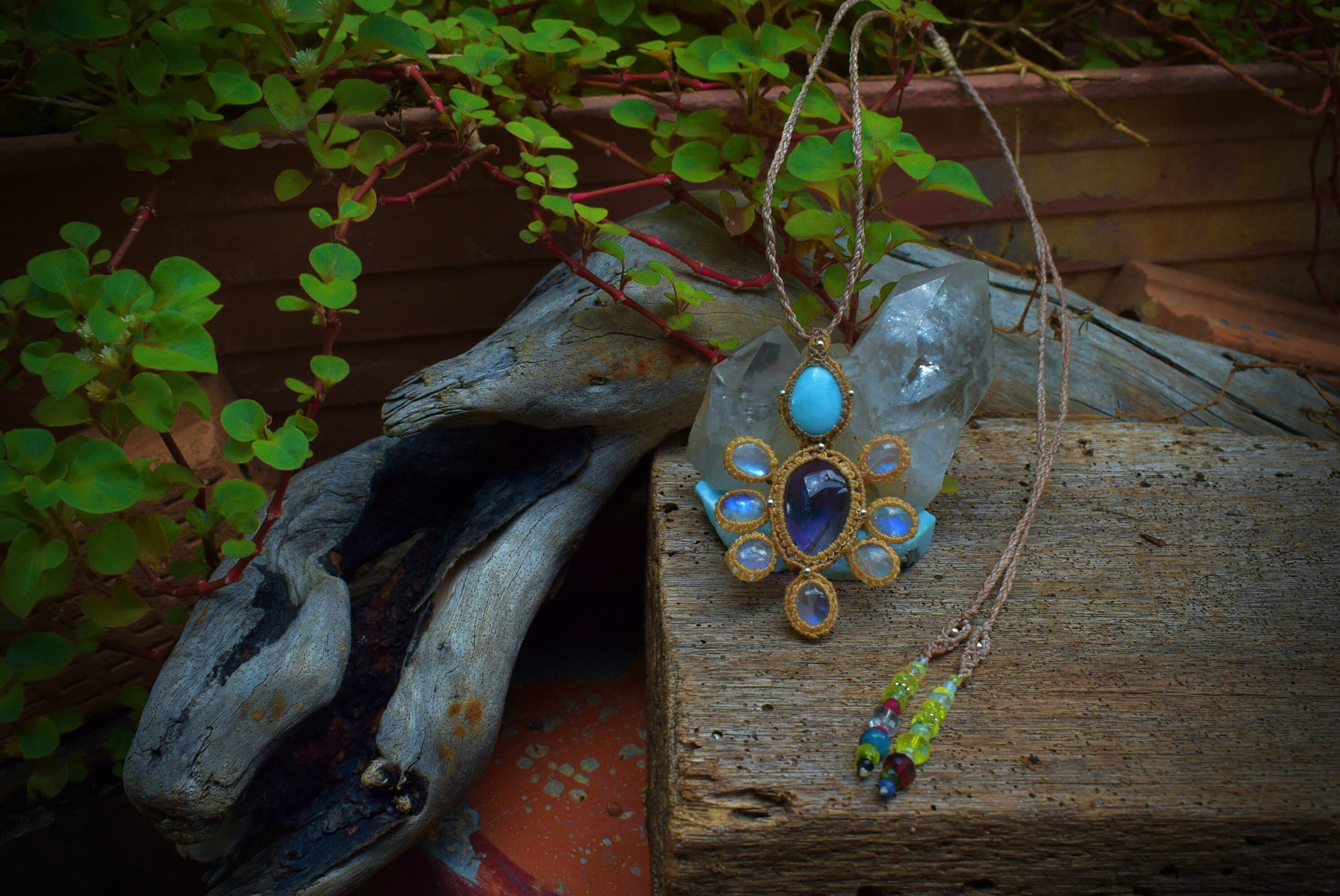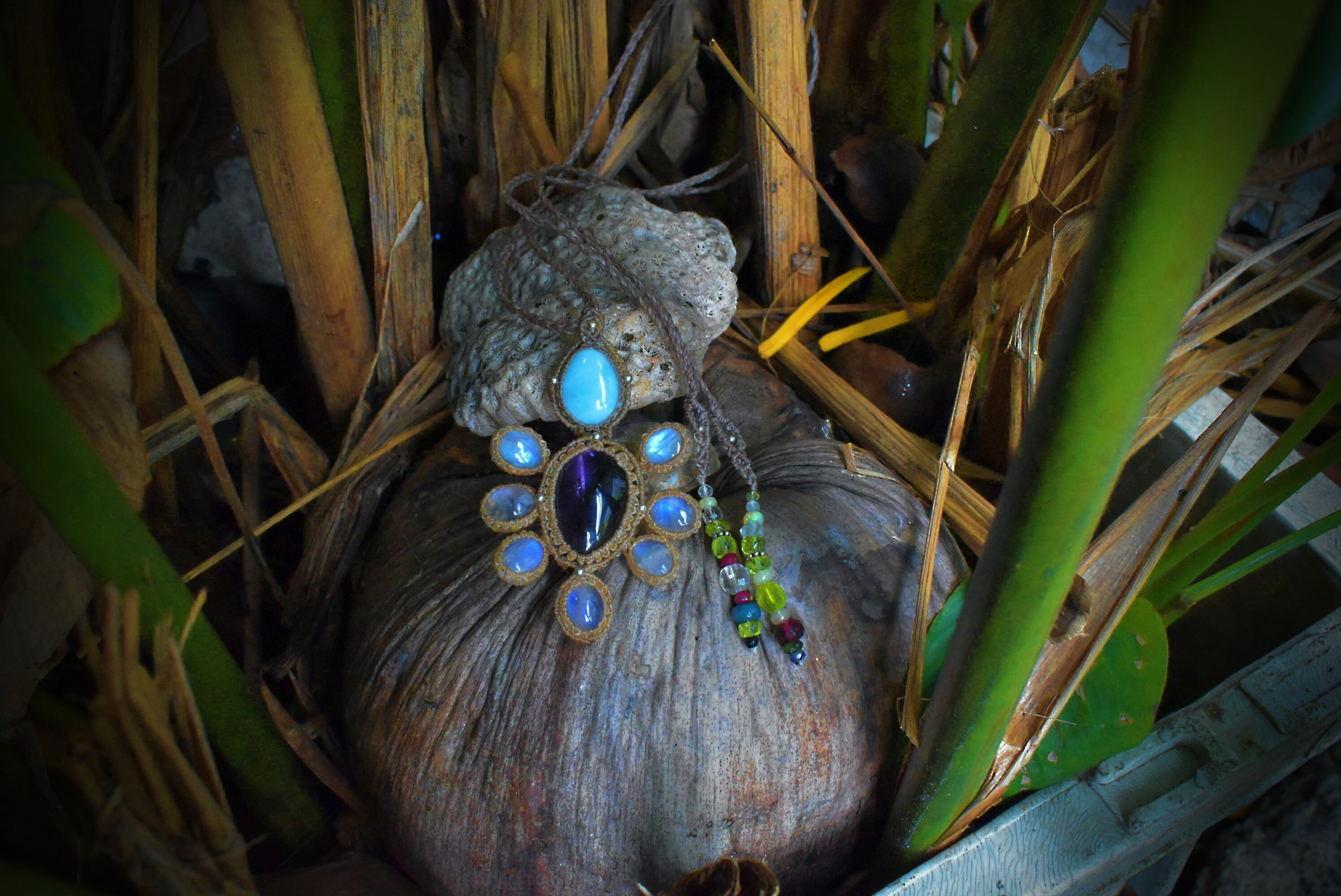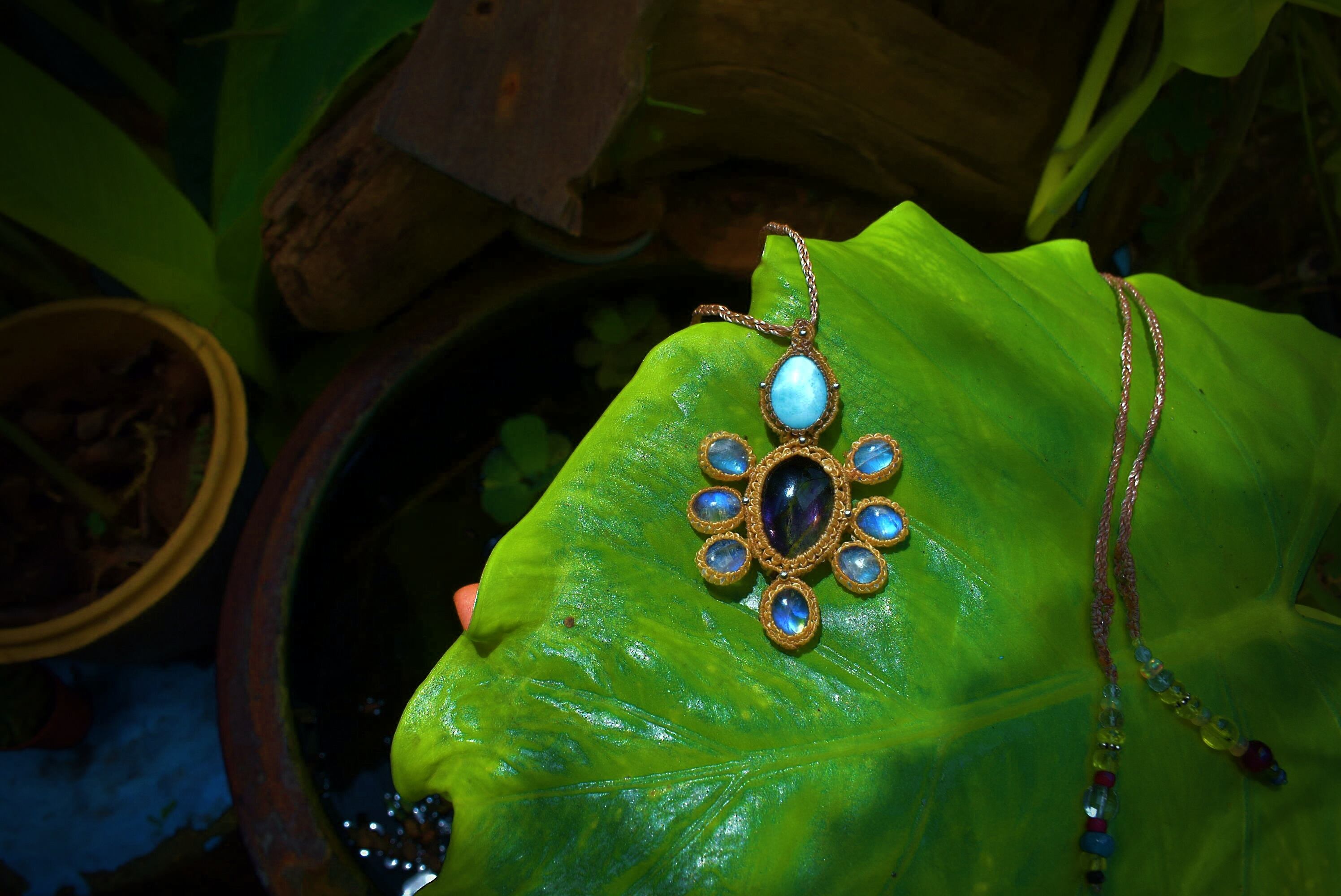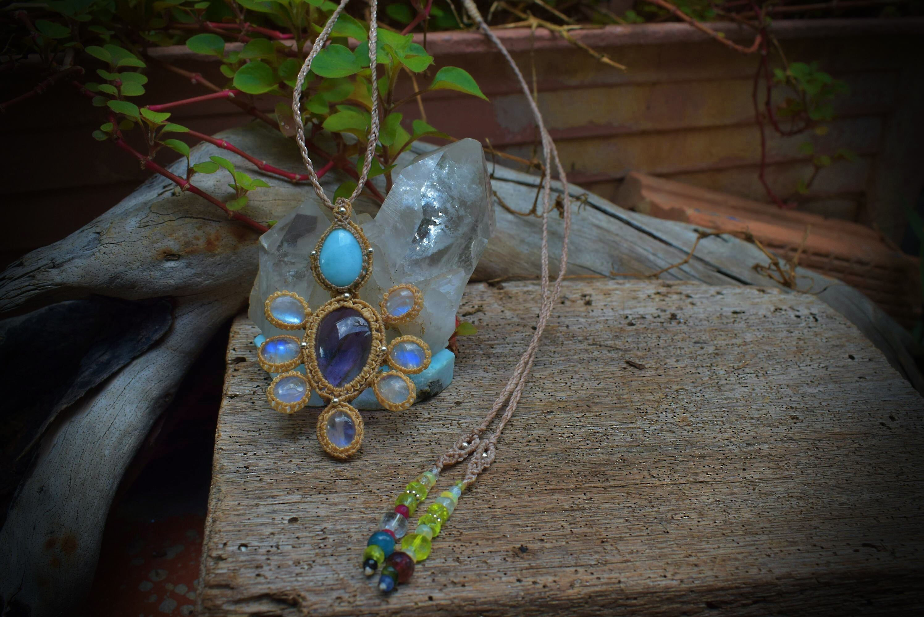 羽ばたくラリマーとアメトリンと虹★マクラメペンダントame022