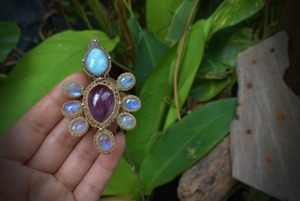 そして中心となる位置にアメトリンを使用した遠い星で咲き誇る花を表現したペンダント。