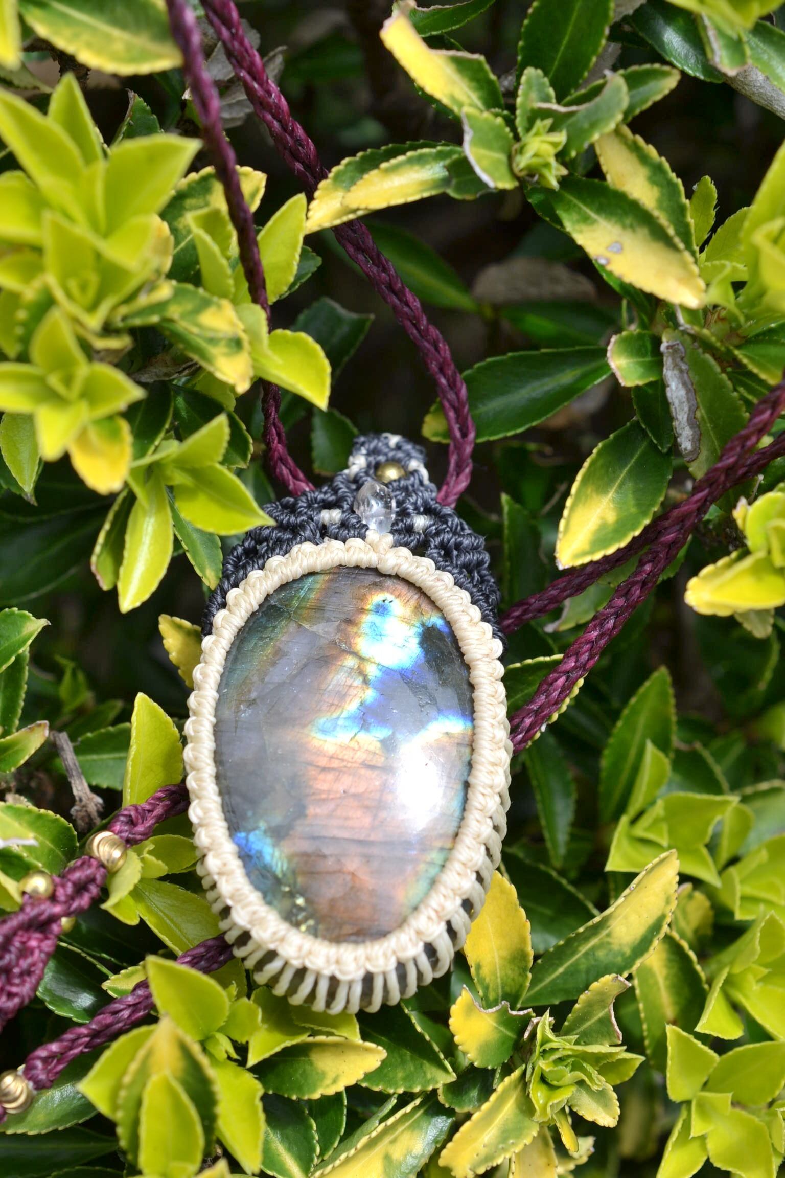 輝くオレンジ★ラブラドライト マクラメペンダント