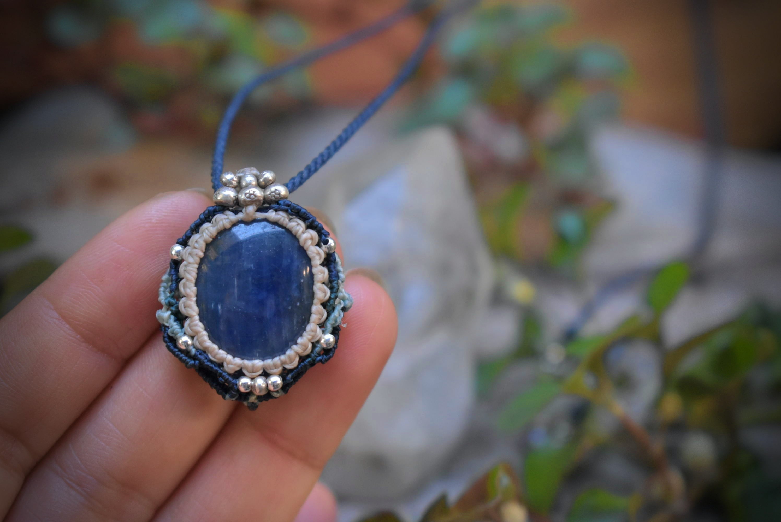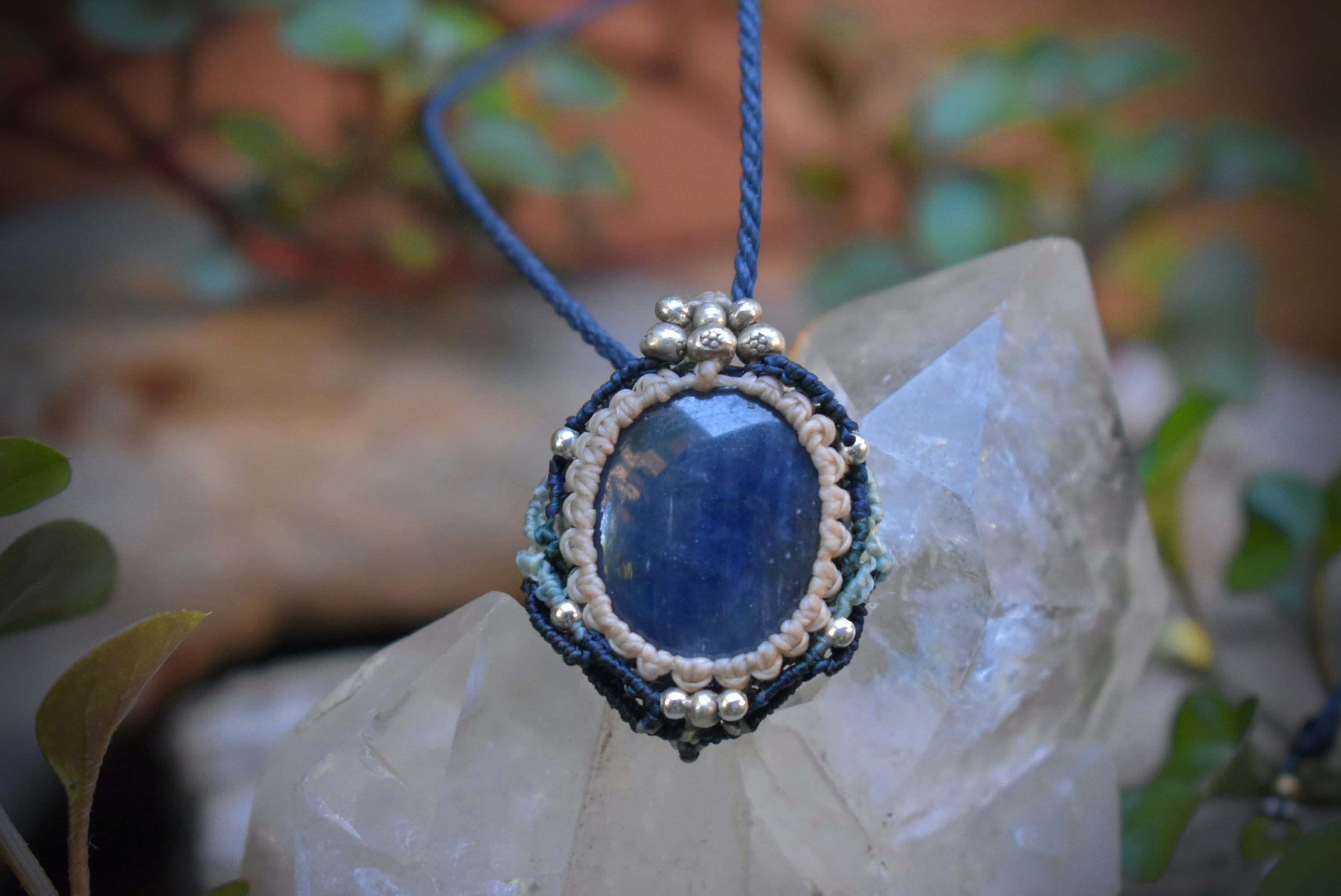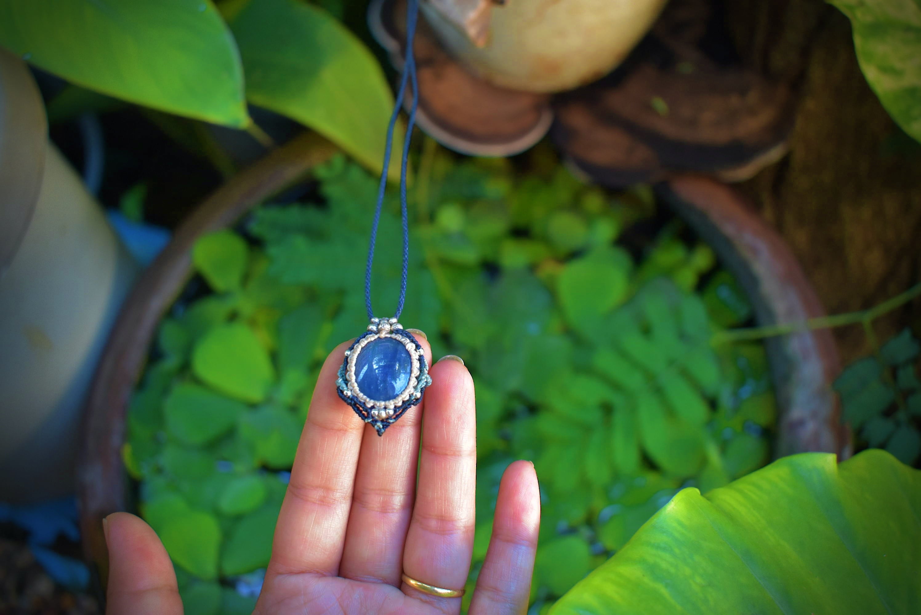 ギラリと輝くブルーの奇跡そのものです。石の周りをマクラメ編み装飾にて巻き込みました。