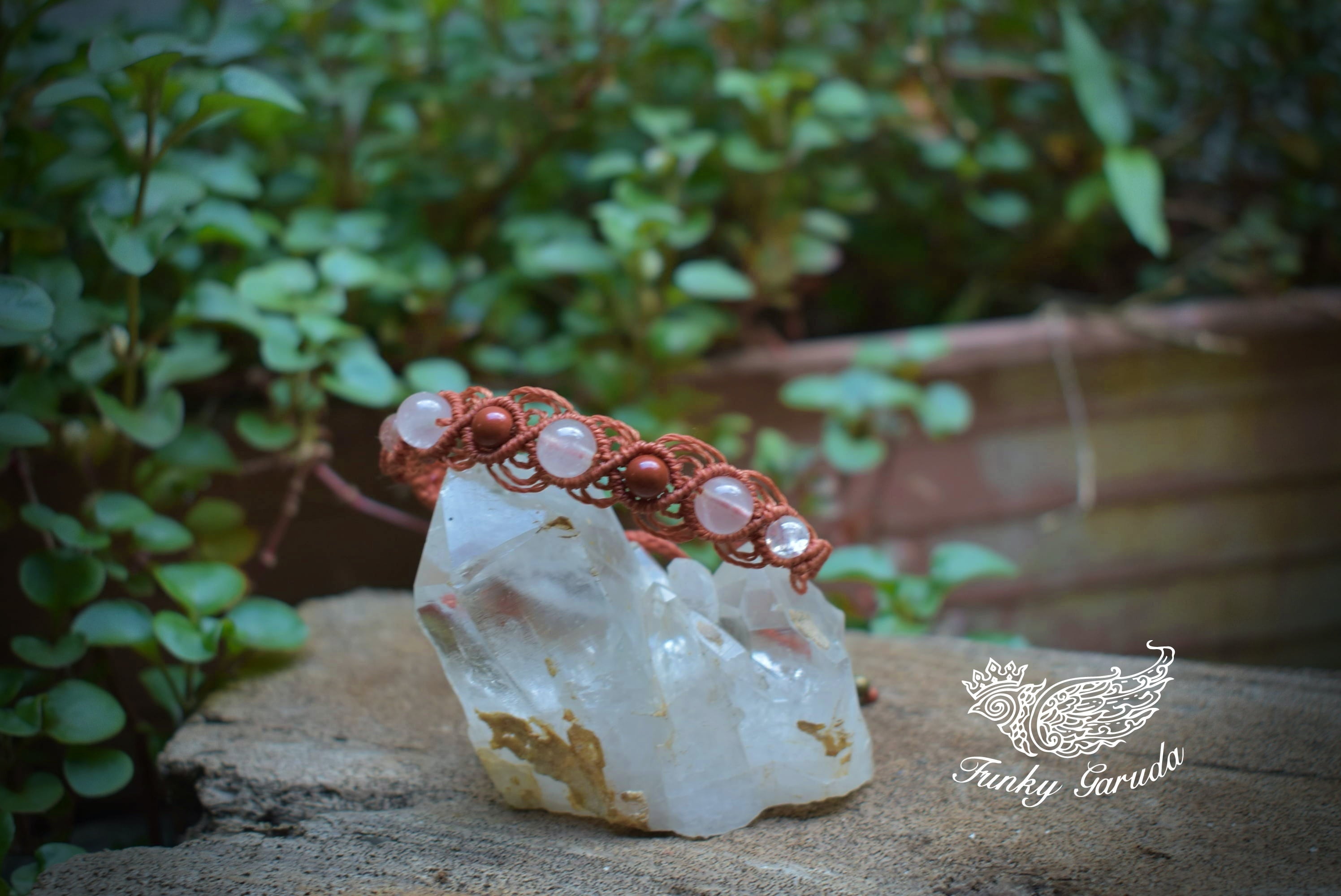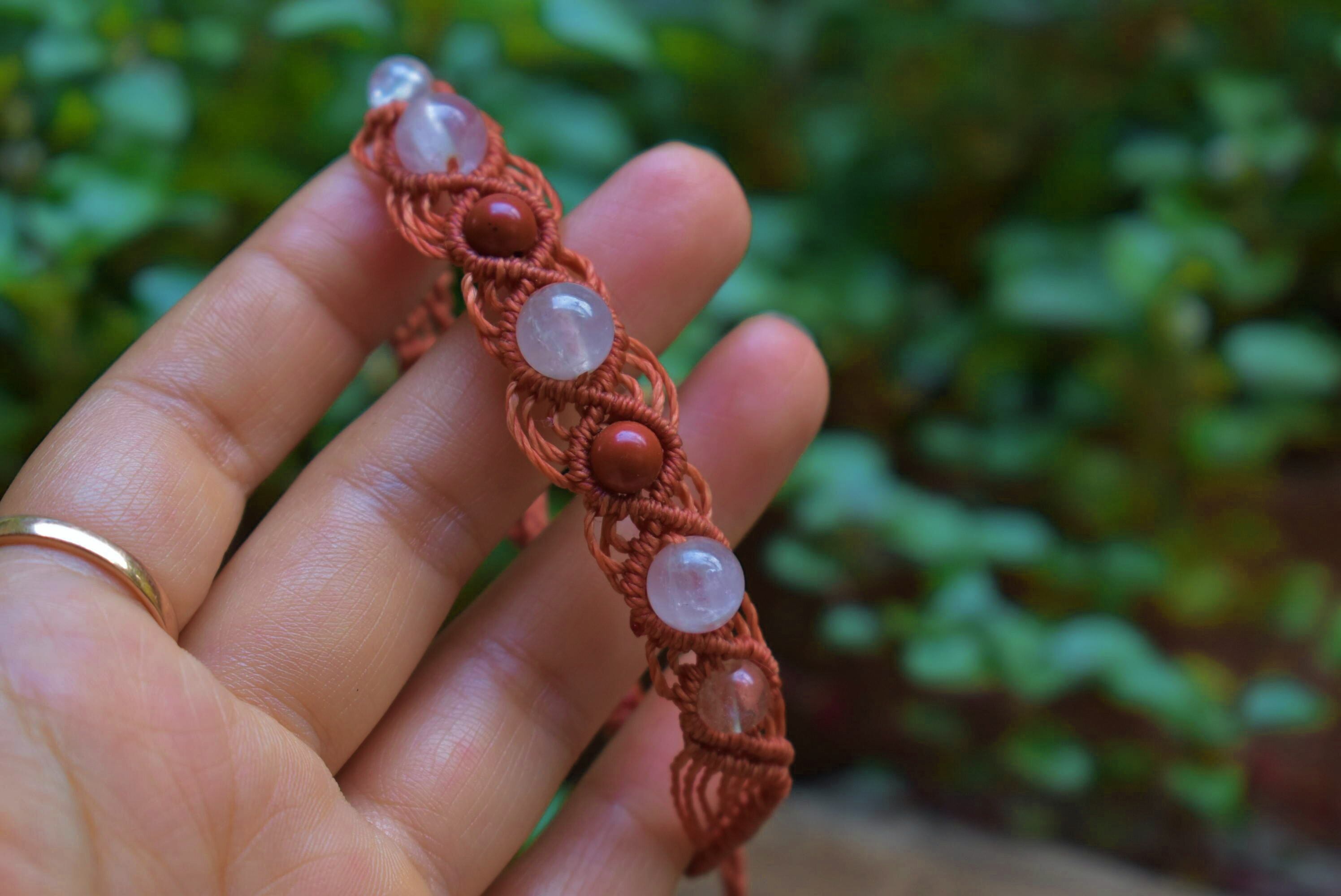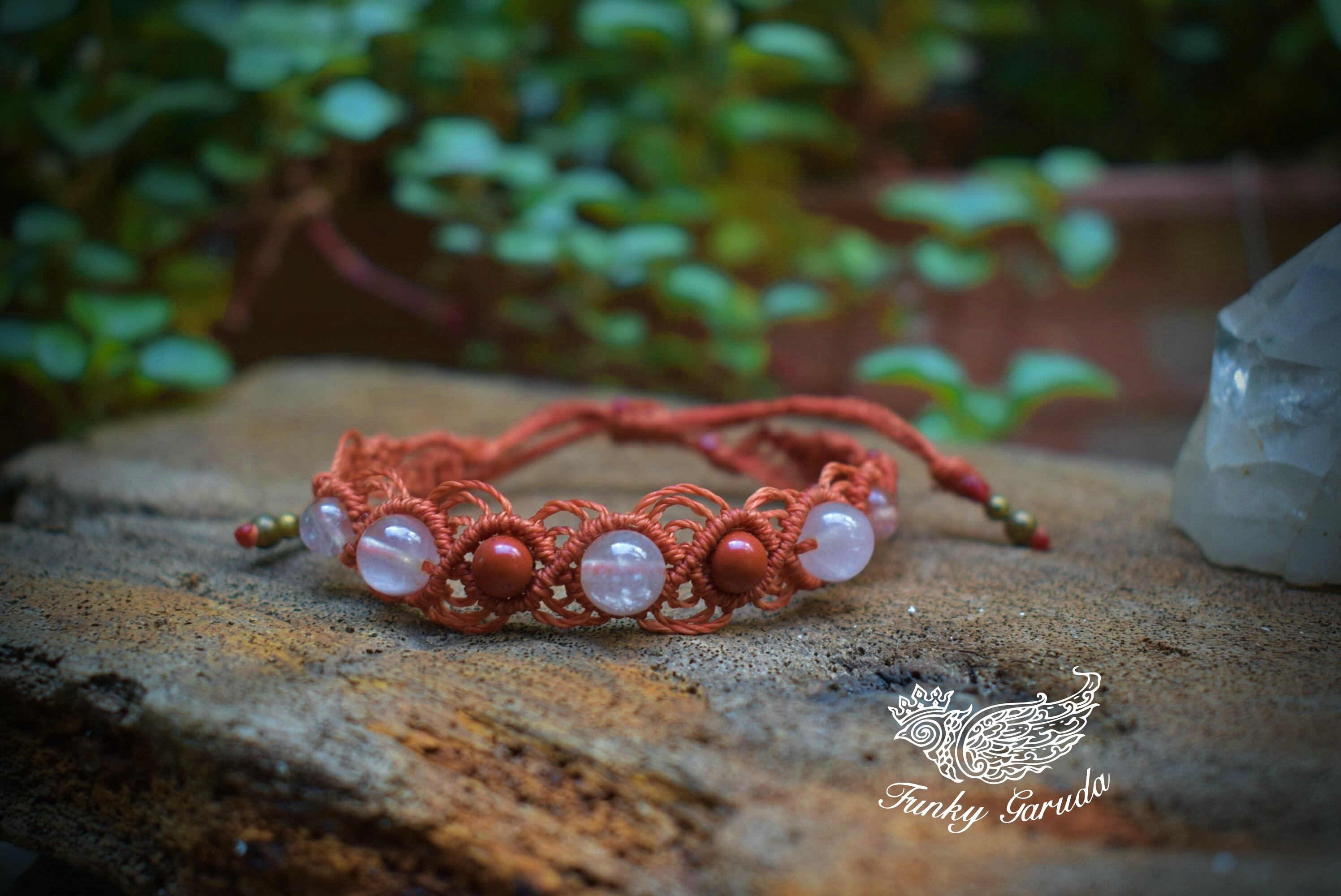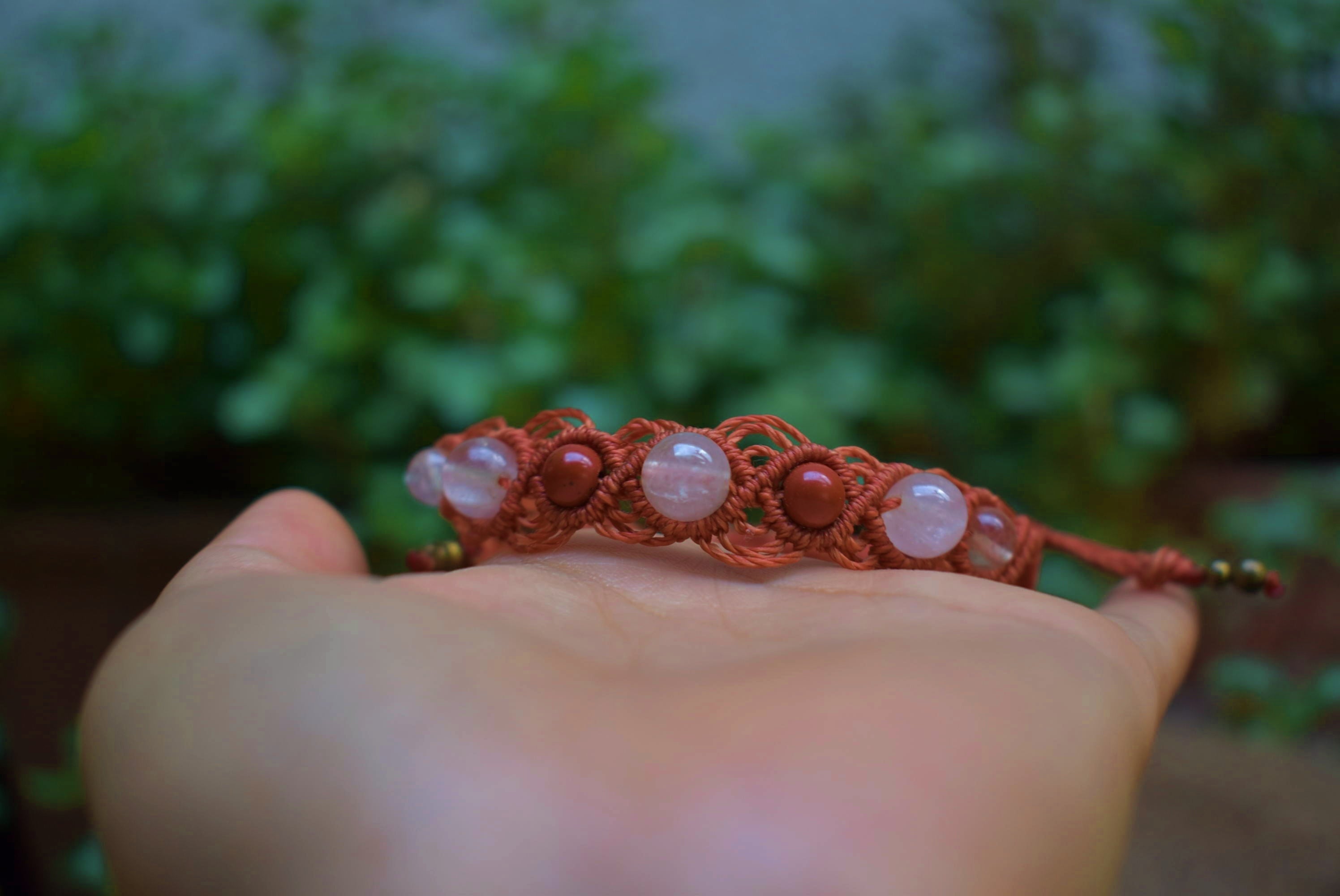 ローズクォーツとレッドジャスパー マクラメブレスレットbm003