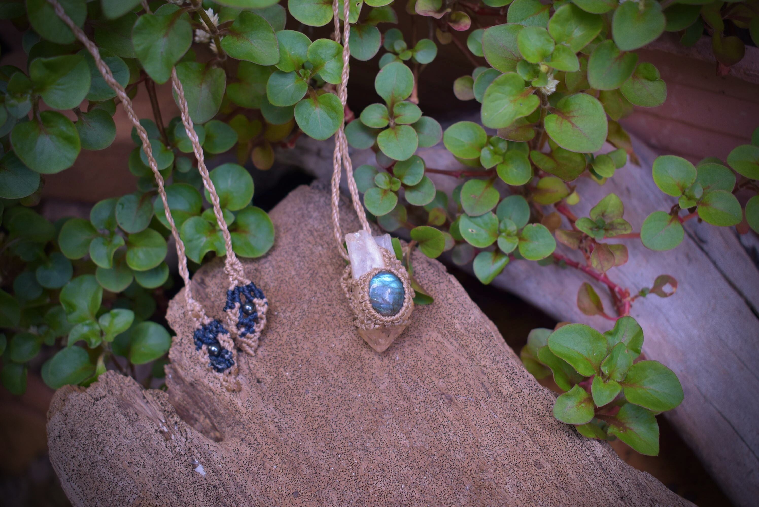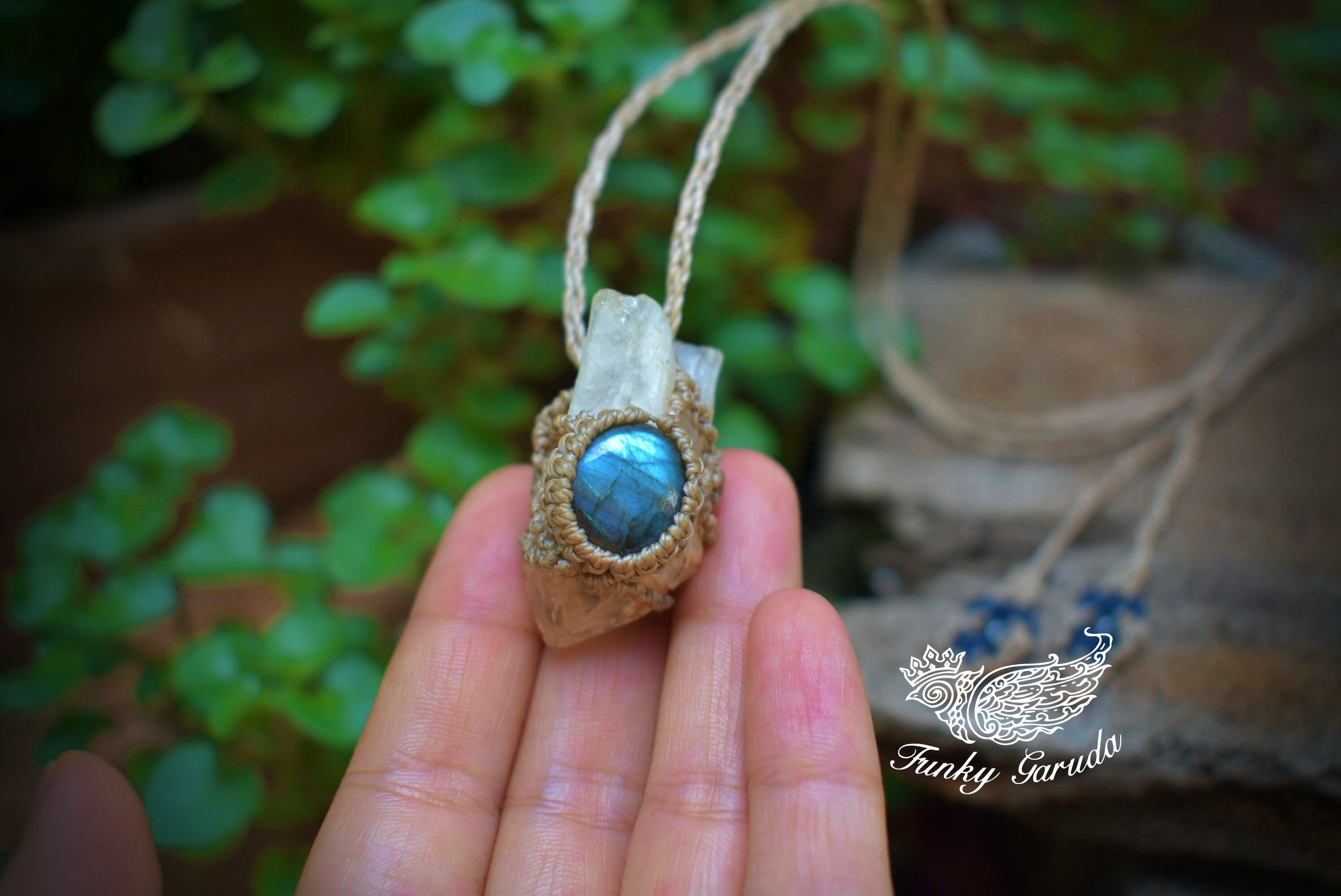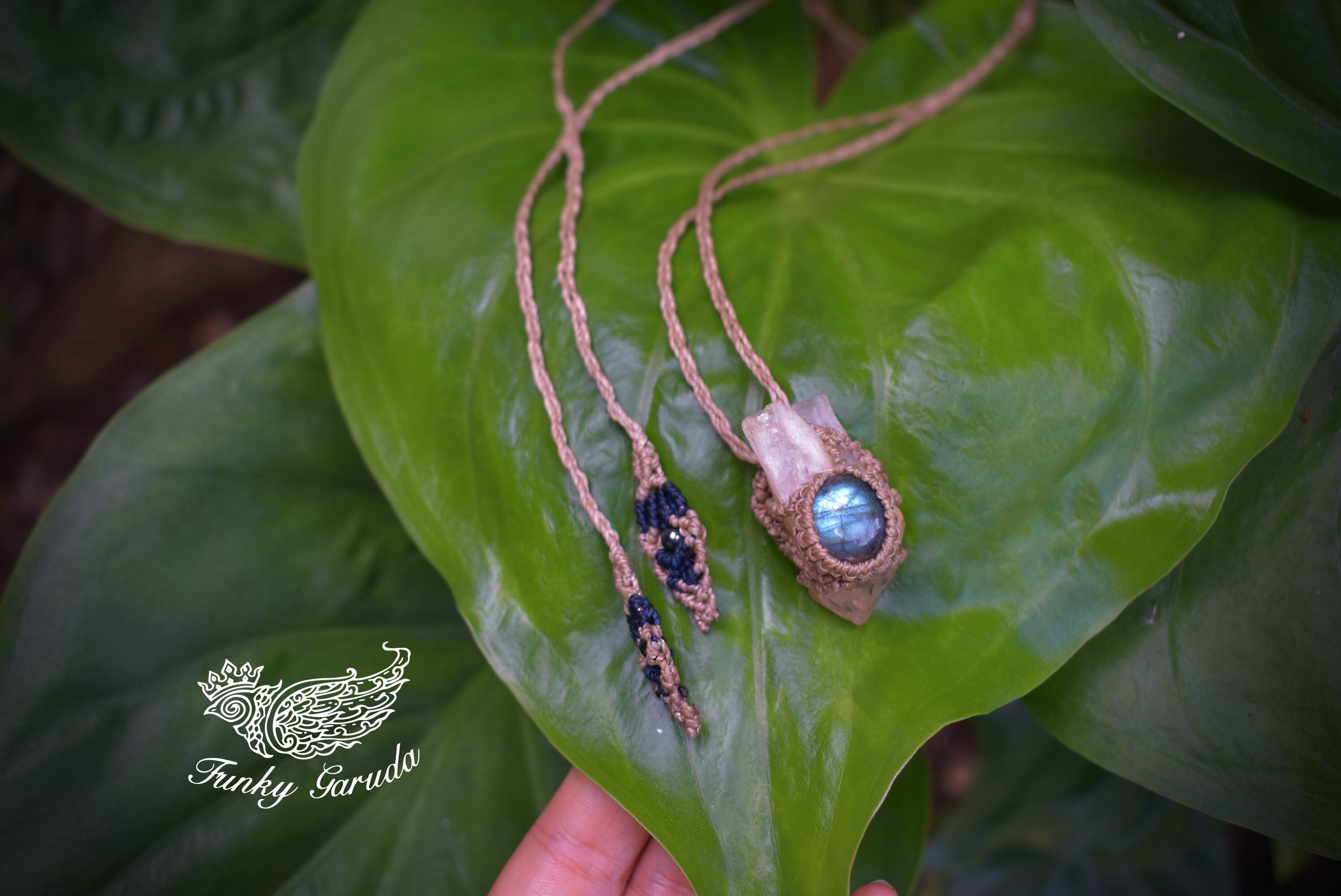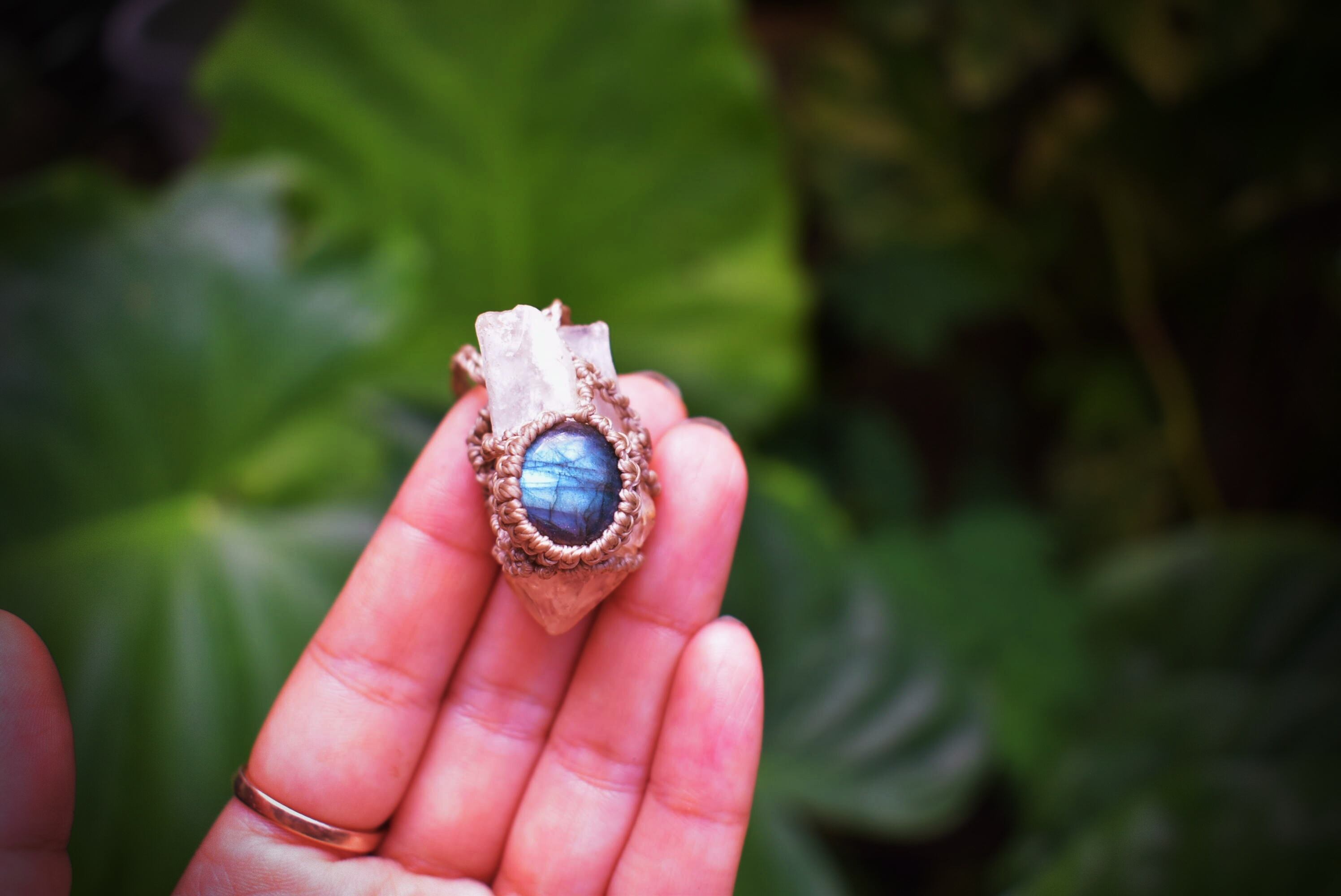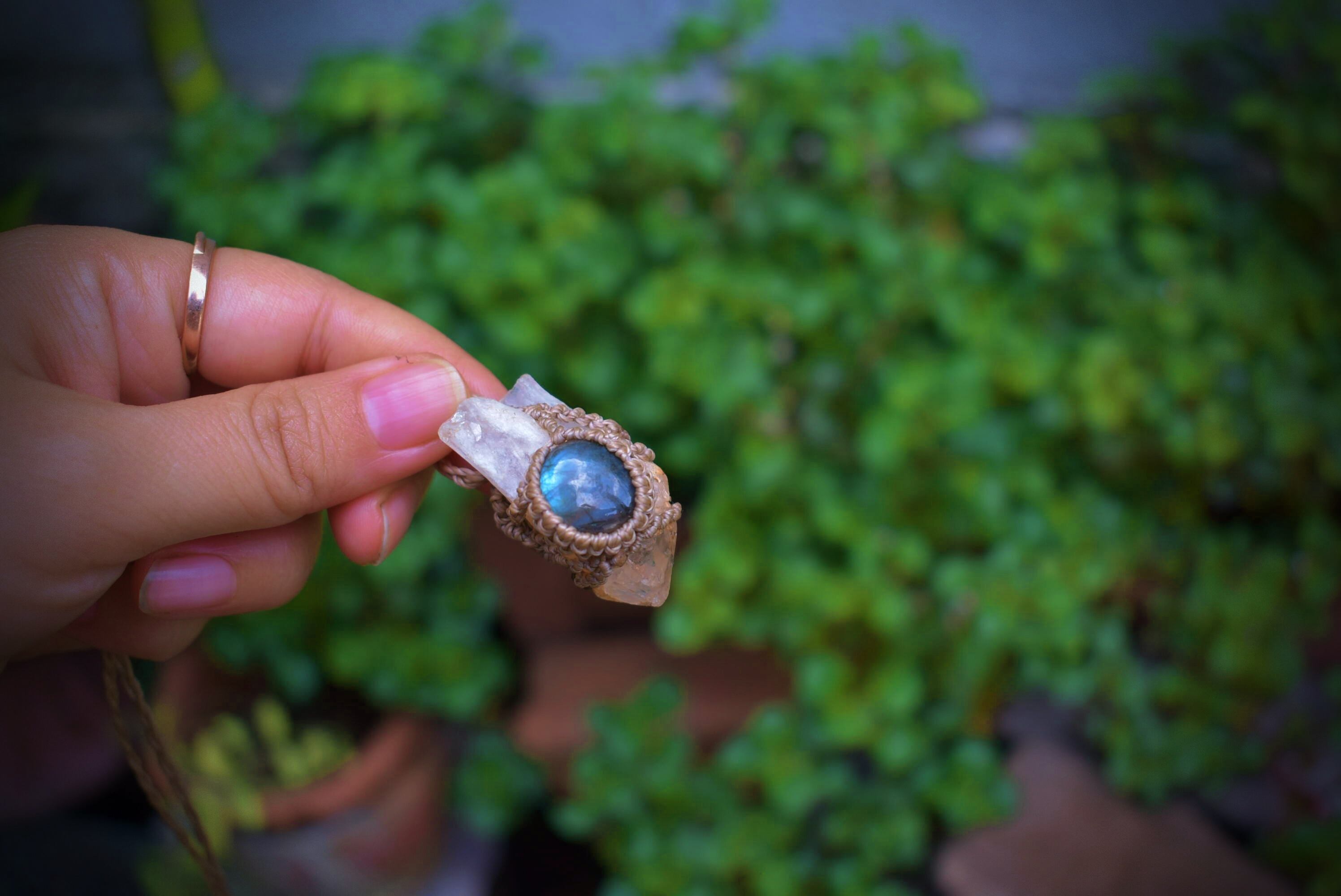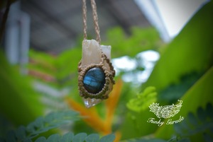 クリスタルポイントとラブラドライト シンプルマクラメペンダントcrm013