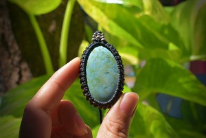 ブルーグリーンの色合いは青い空に新緑が芽吹いているイメージを思い起こさせてくれる色。この石は昔から欧米人には人気の色味で心に安らぎを与えてくれるとされています。まだ、お持ち出ない方は是非手にしてみてくださいね。