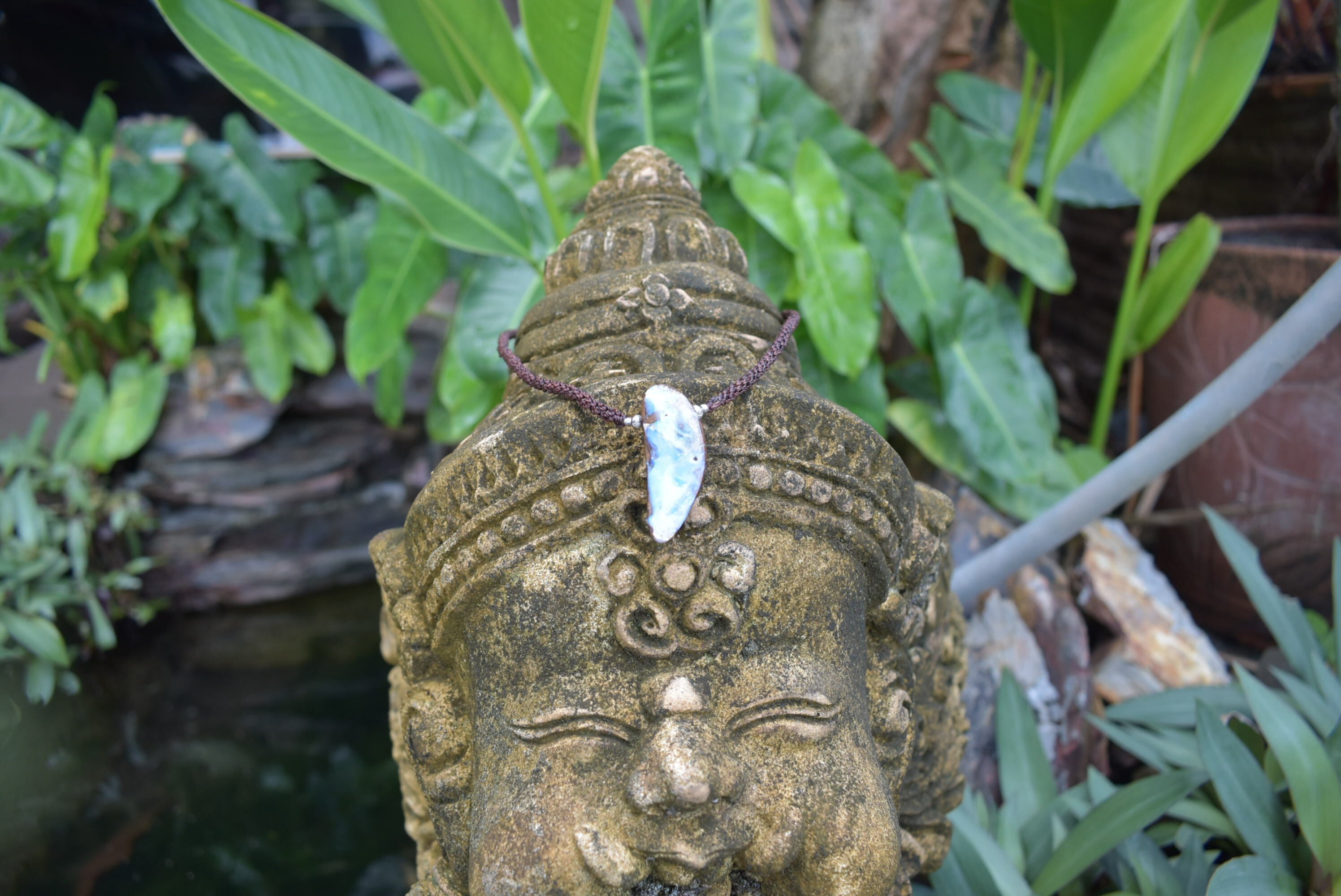 最初は、サイズ感あったので巻き込んでマクラメ編み装飾をしようかと考えたのですが、シンプルが一番!ということで果てしなくシンプルに首回りをお好きな長さで楽しめるペンダントネックレスに仕上げました。