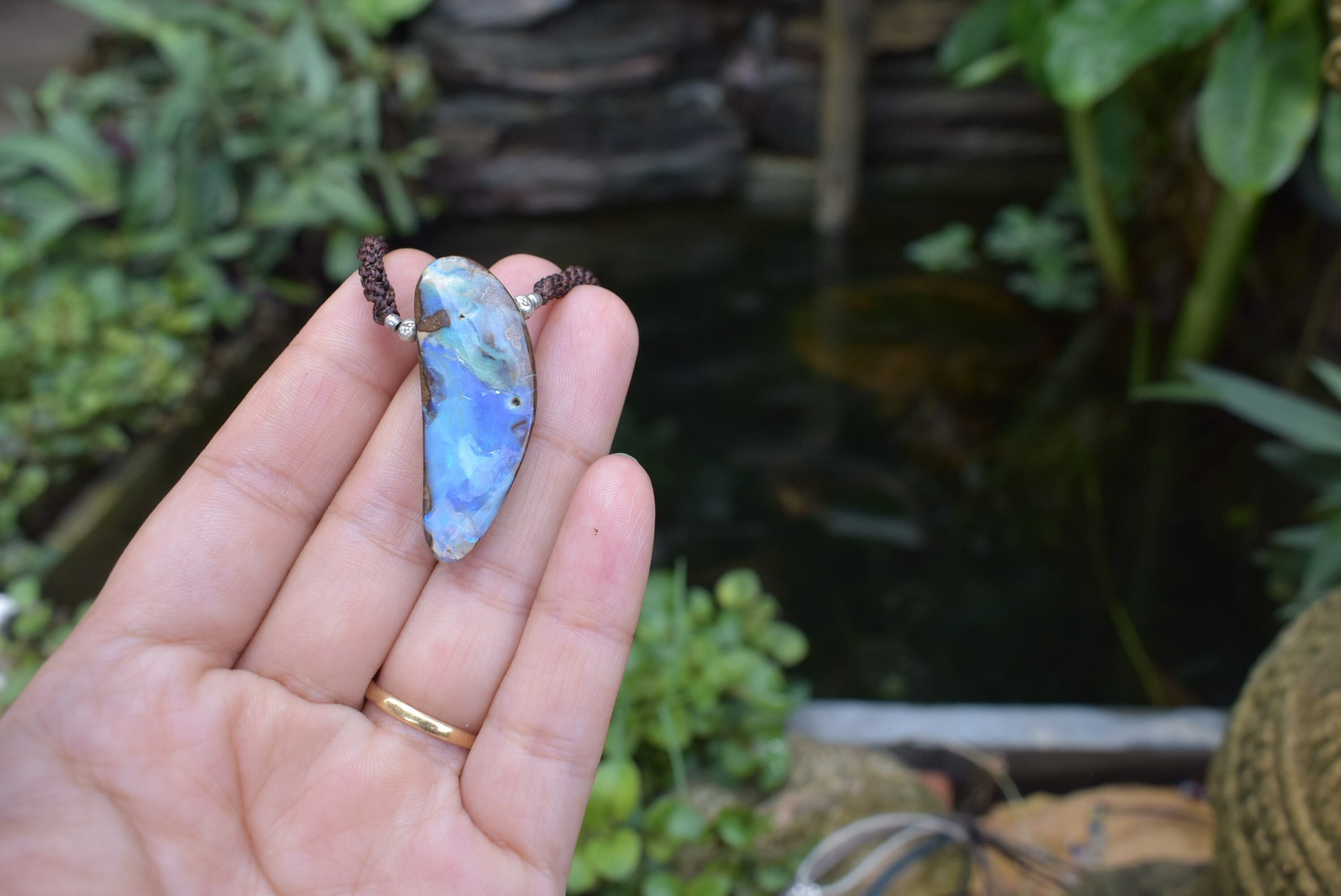 35ct大粒★深海の世界★オーストラリア産ボルダーオパール シンプルネックレスopal003